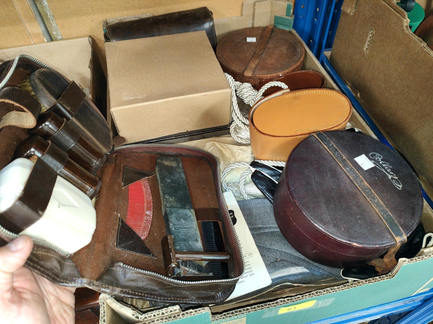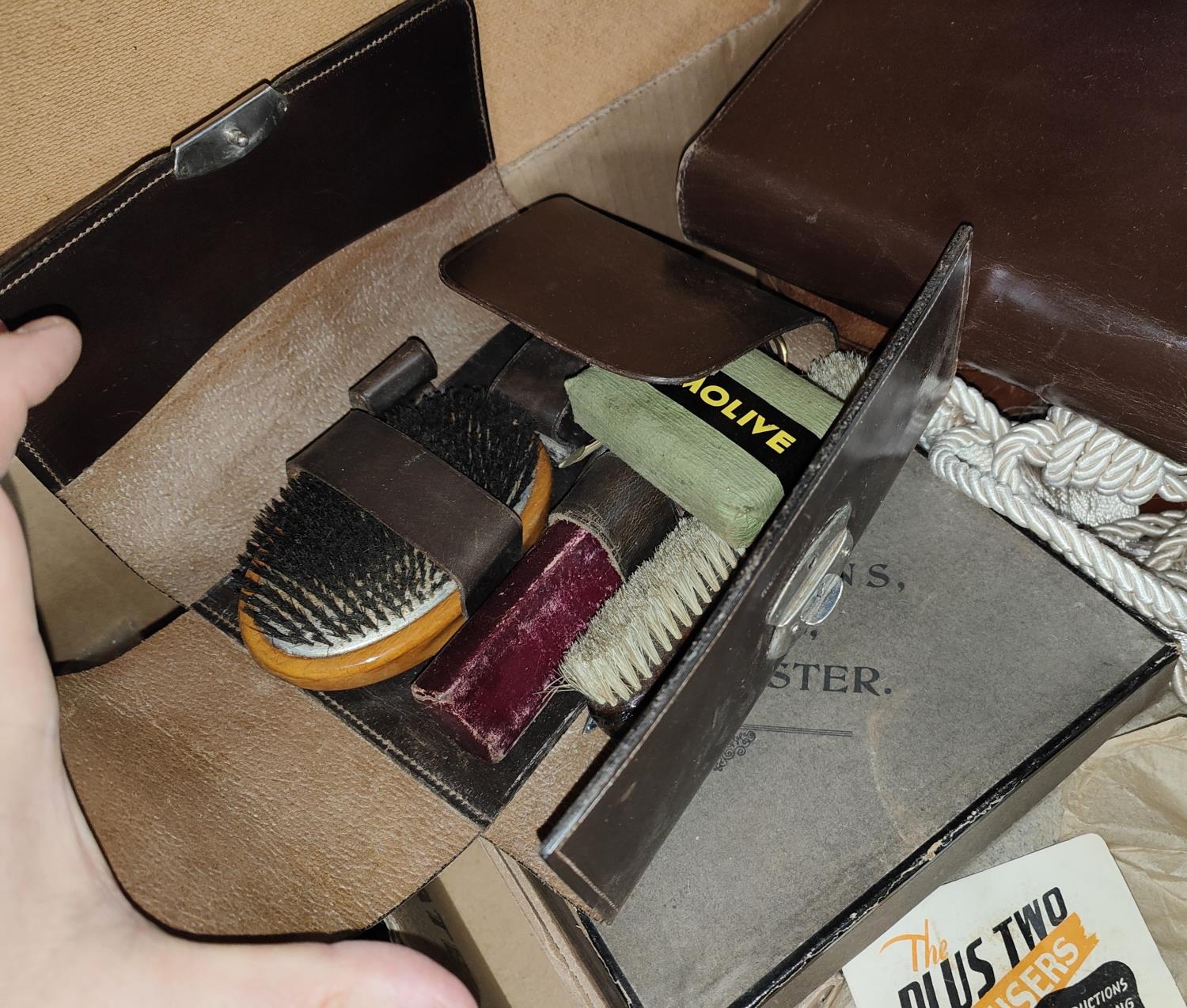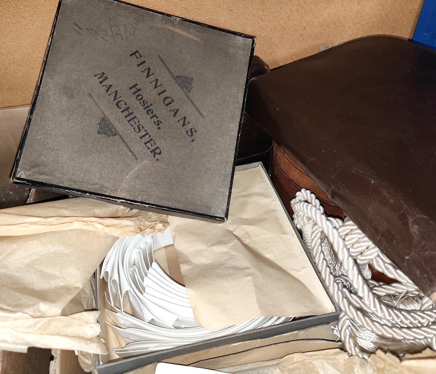 A Utility period pair of 'Plus Two Trousers' with original receipt; boxes of collars; etc.