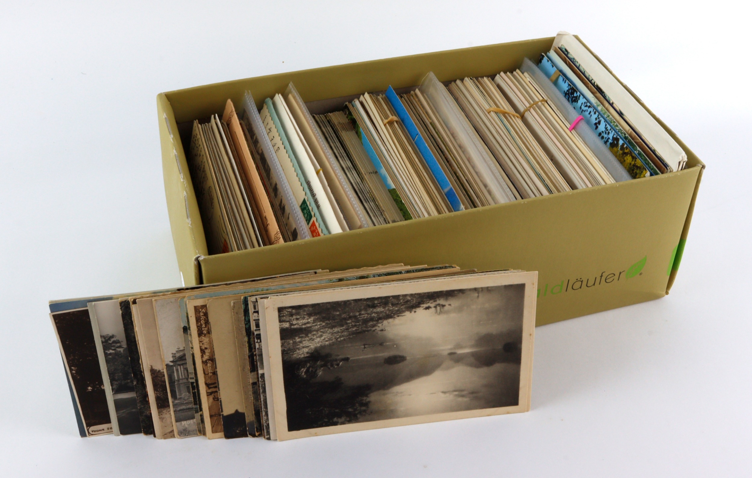 Box: Shoebox filled with older cards. Wide variety of topo and subject cards.