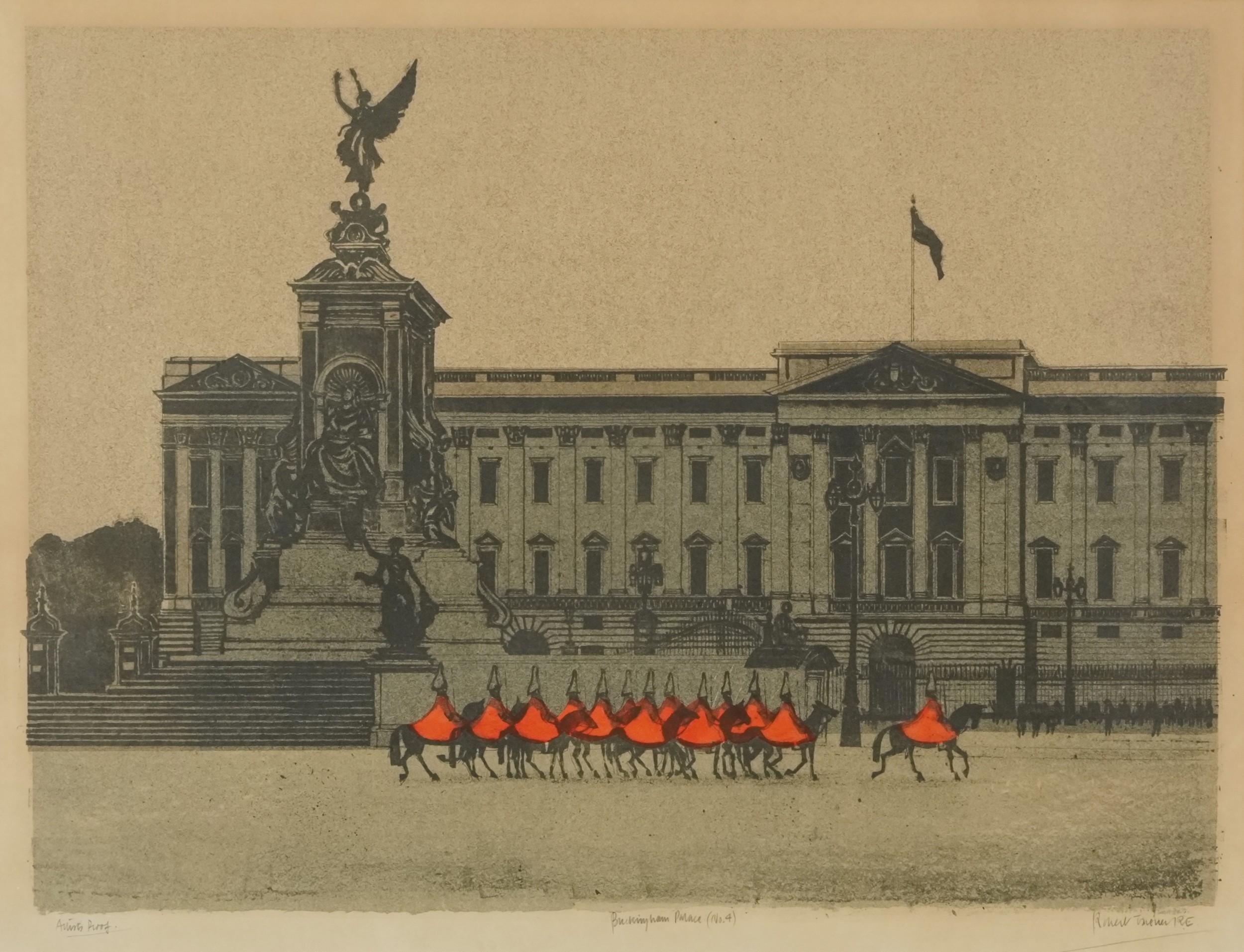 Robert Tavener - Buckingham Palace no. 4, 20th century artist's proof print, framed and glazed, 43cm x 55cm.