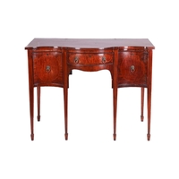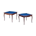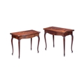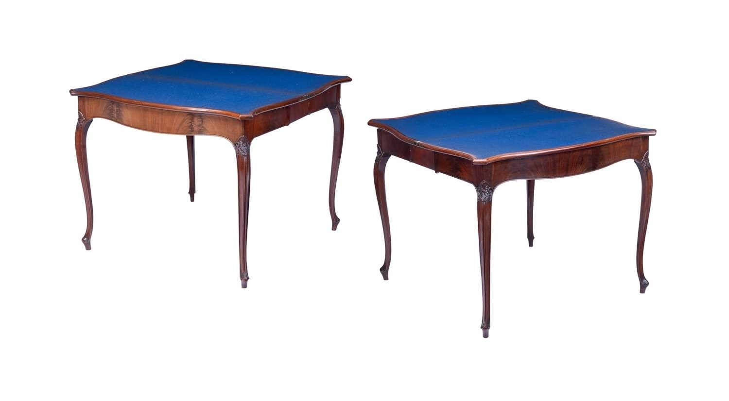 A good pair of George III mahogany Hepplewhite concertina serpentine card tables, circa 1775, with satinwood banded tops and carved scrolling legs, 73 cm high x 90 cm wide. Qty: (2)