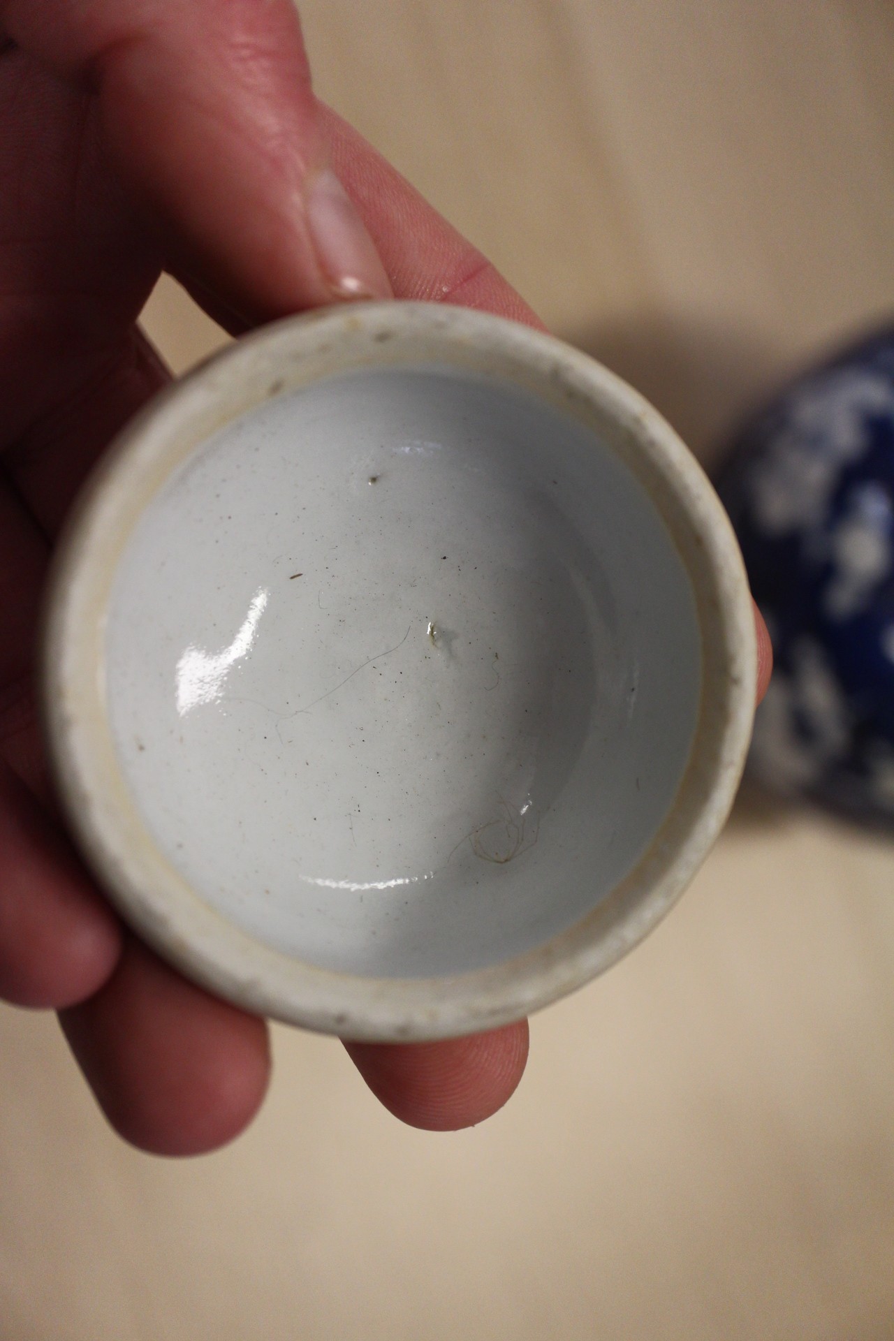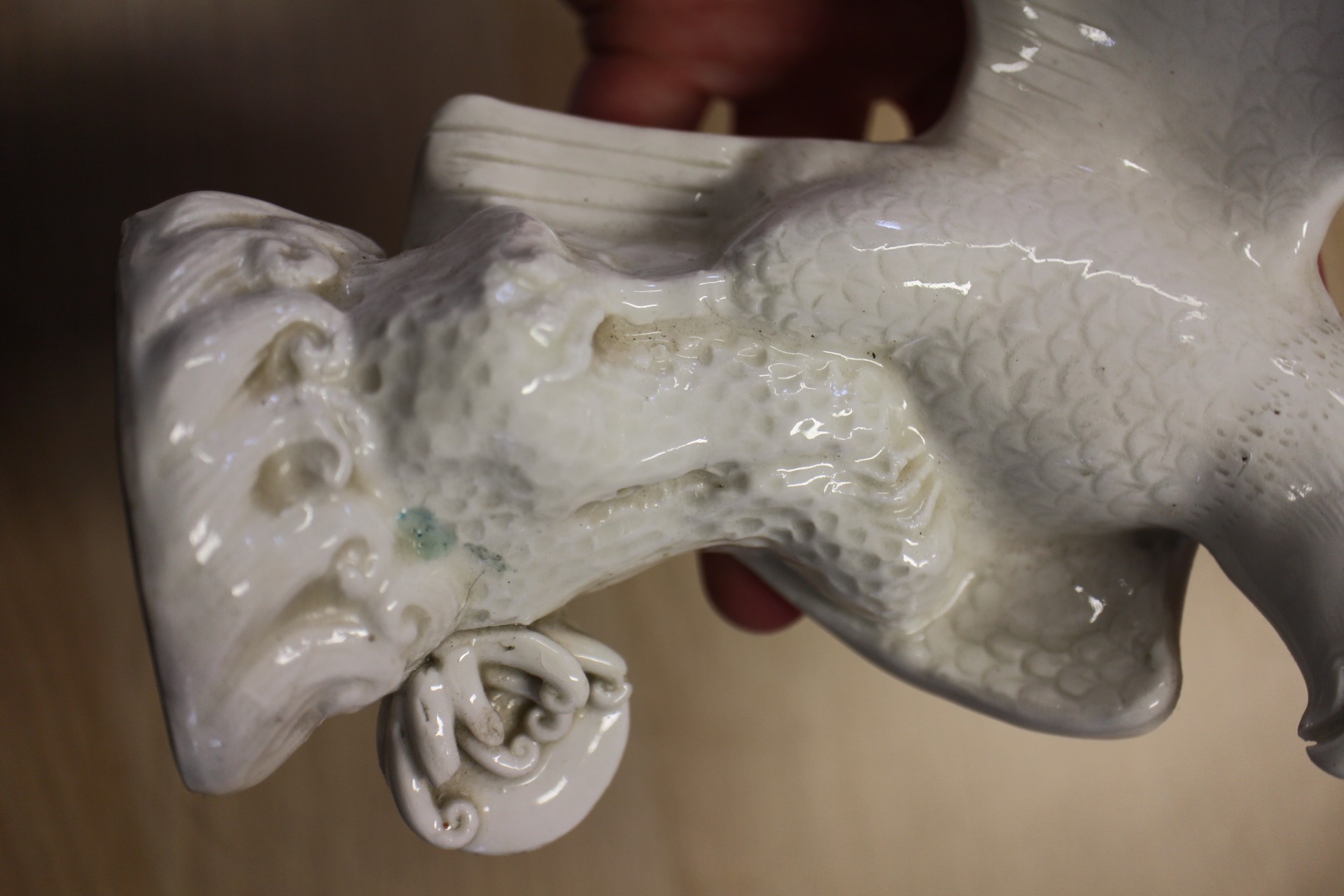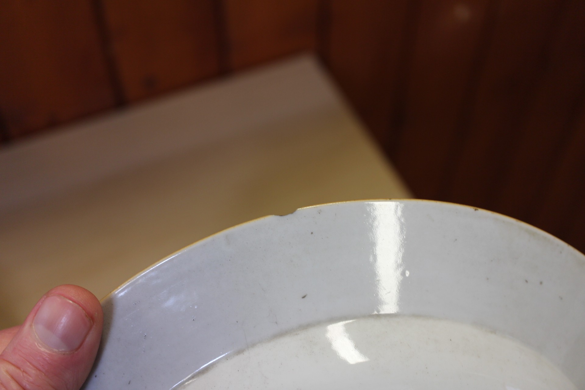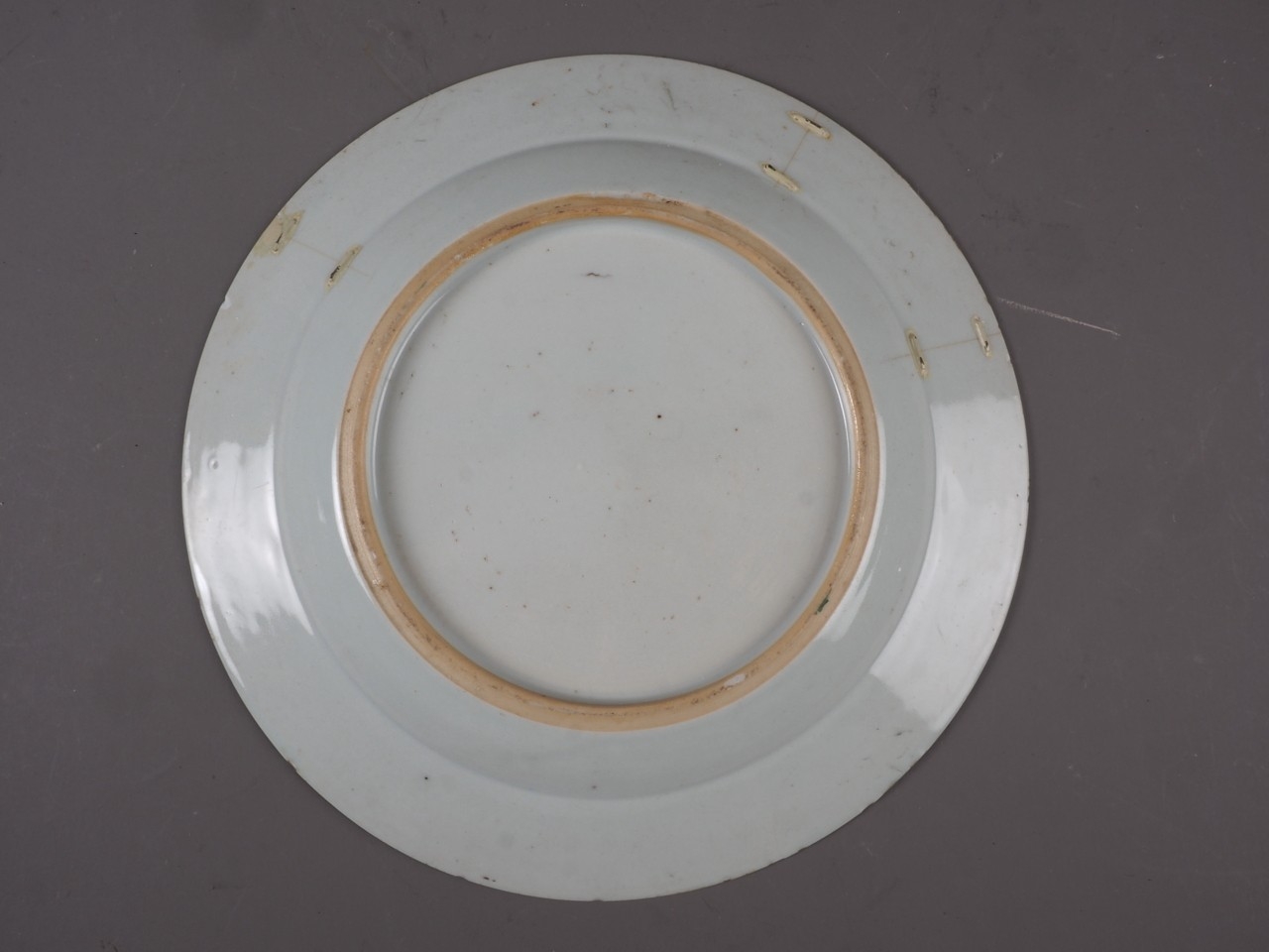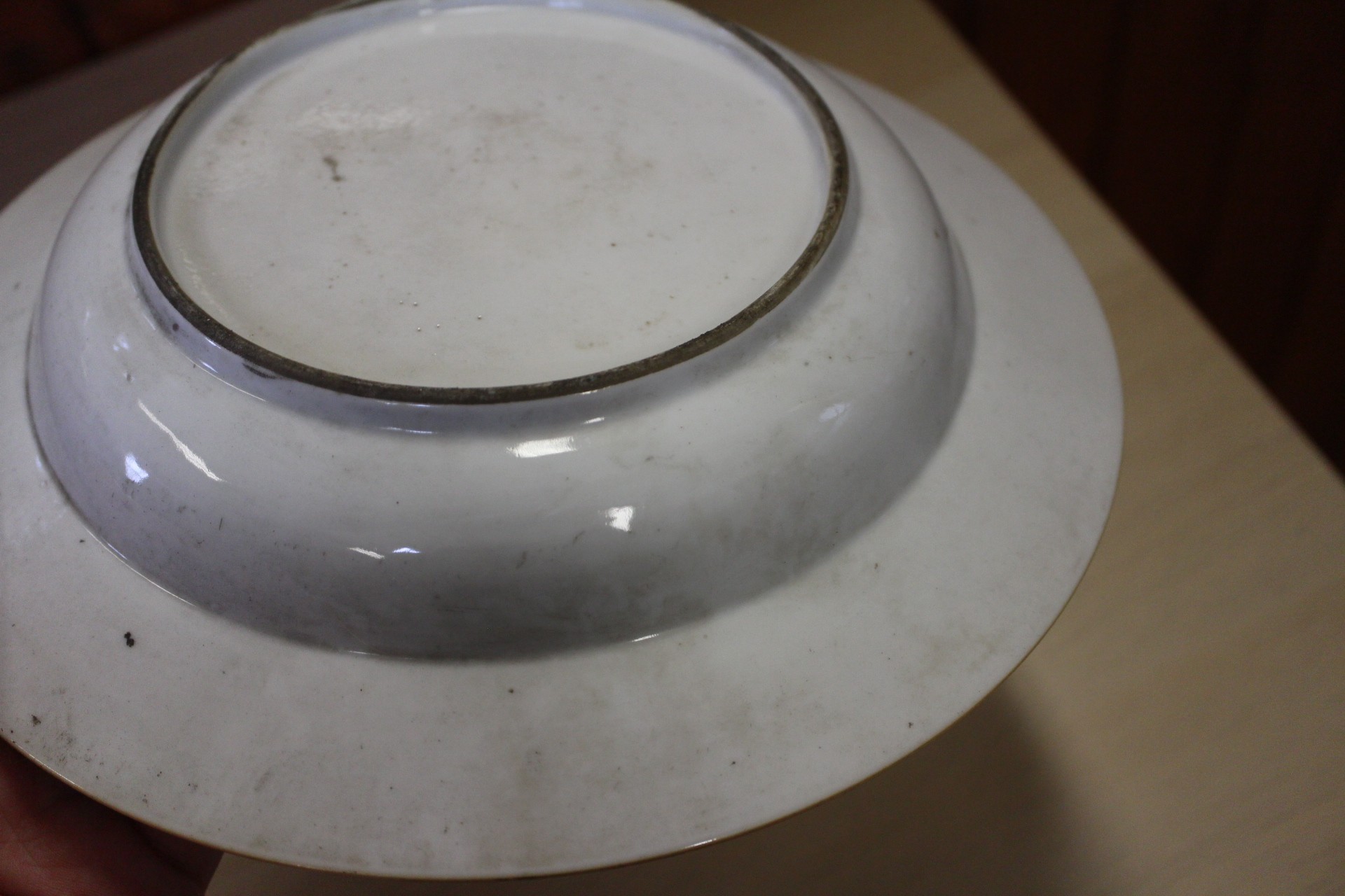 The dish with interior scene has a chip to the rim and some slight decoration losses.