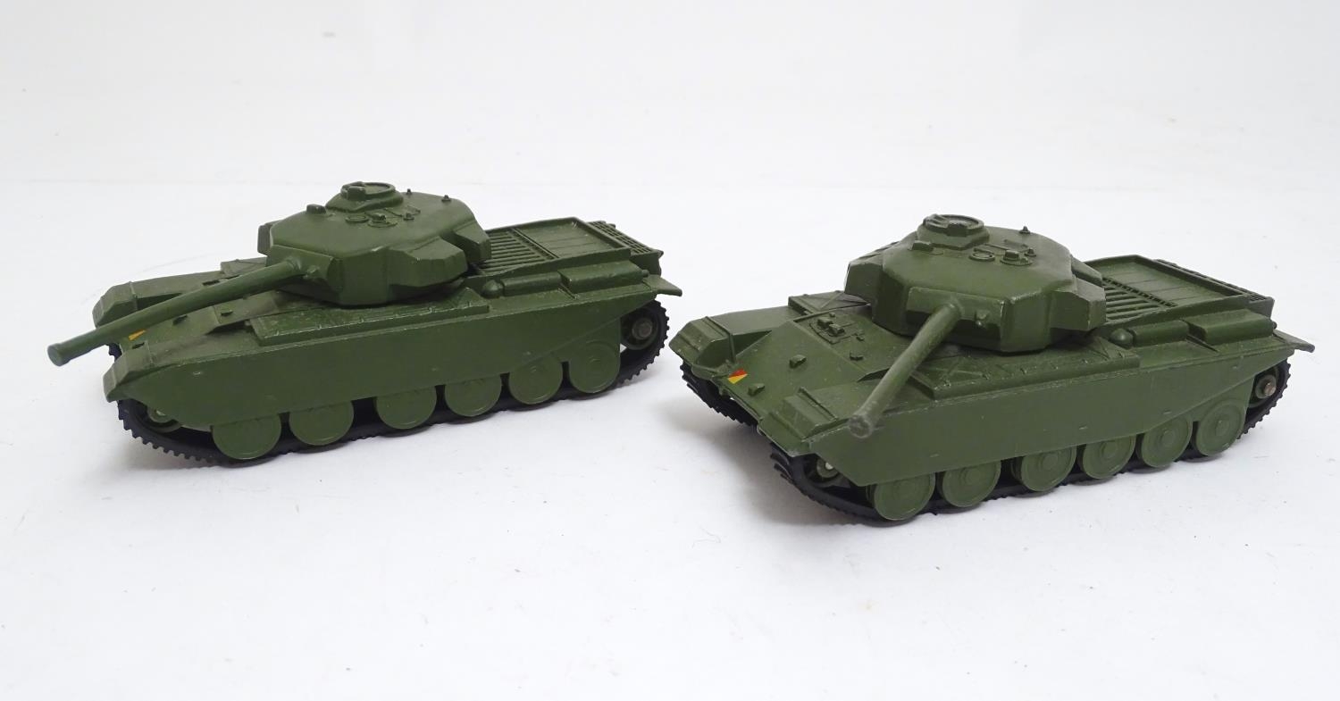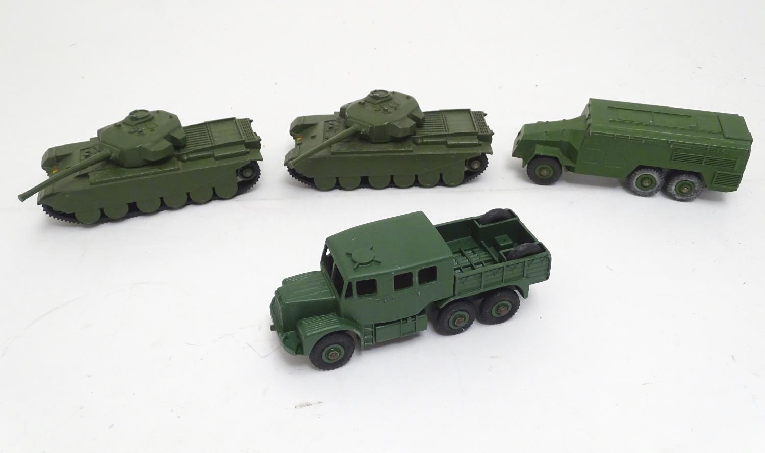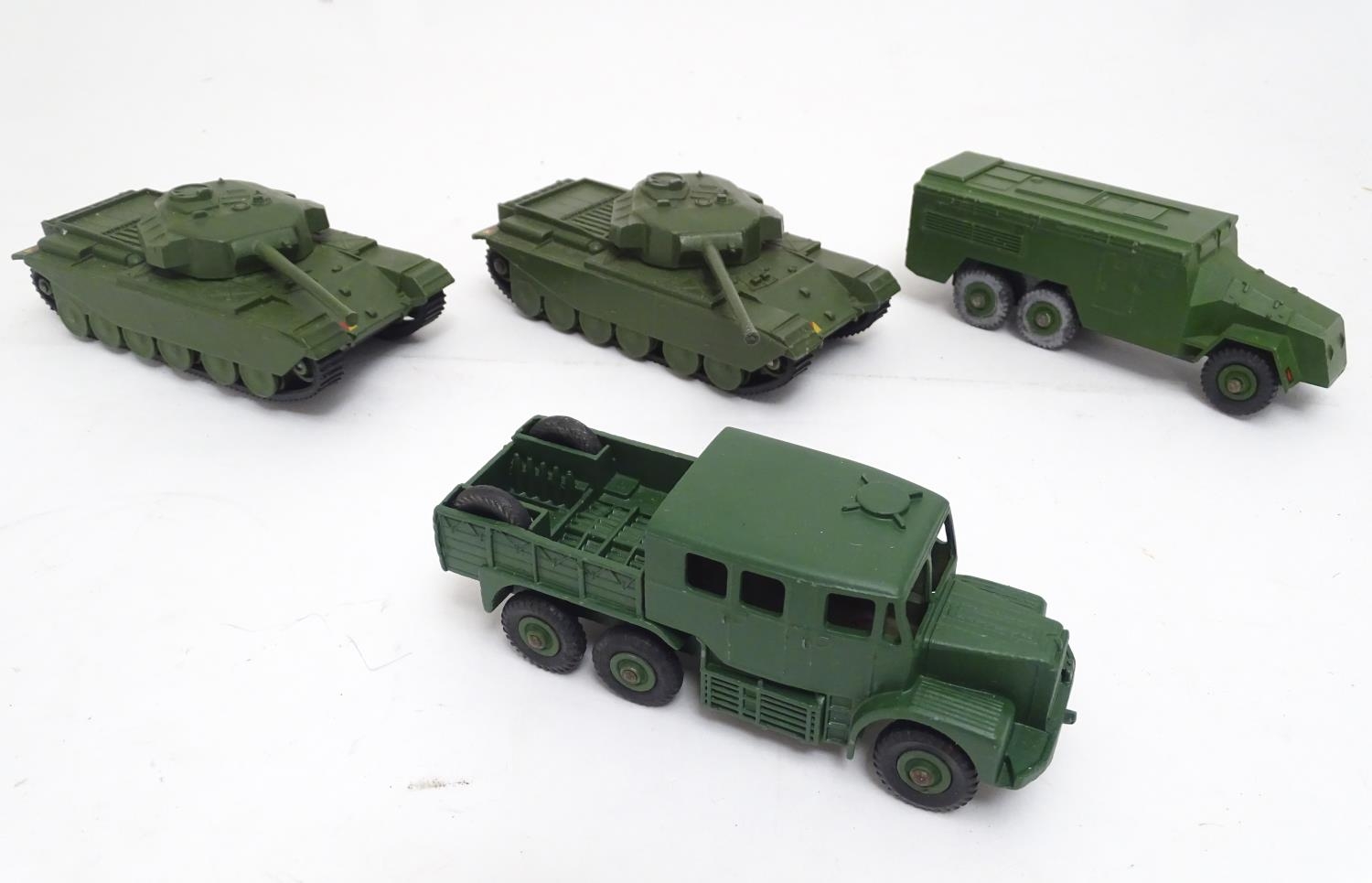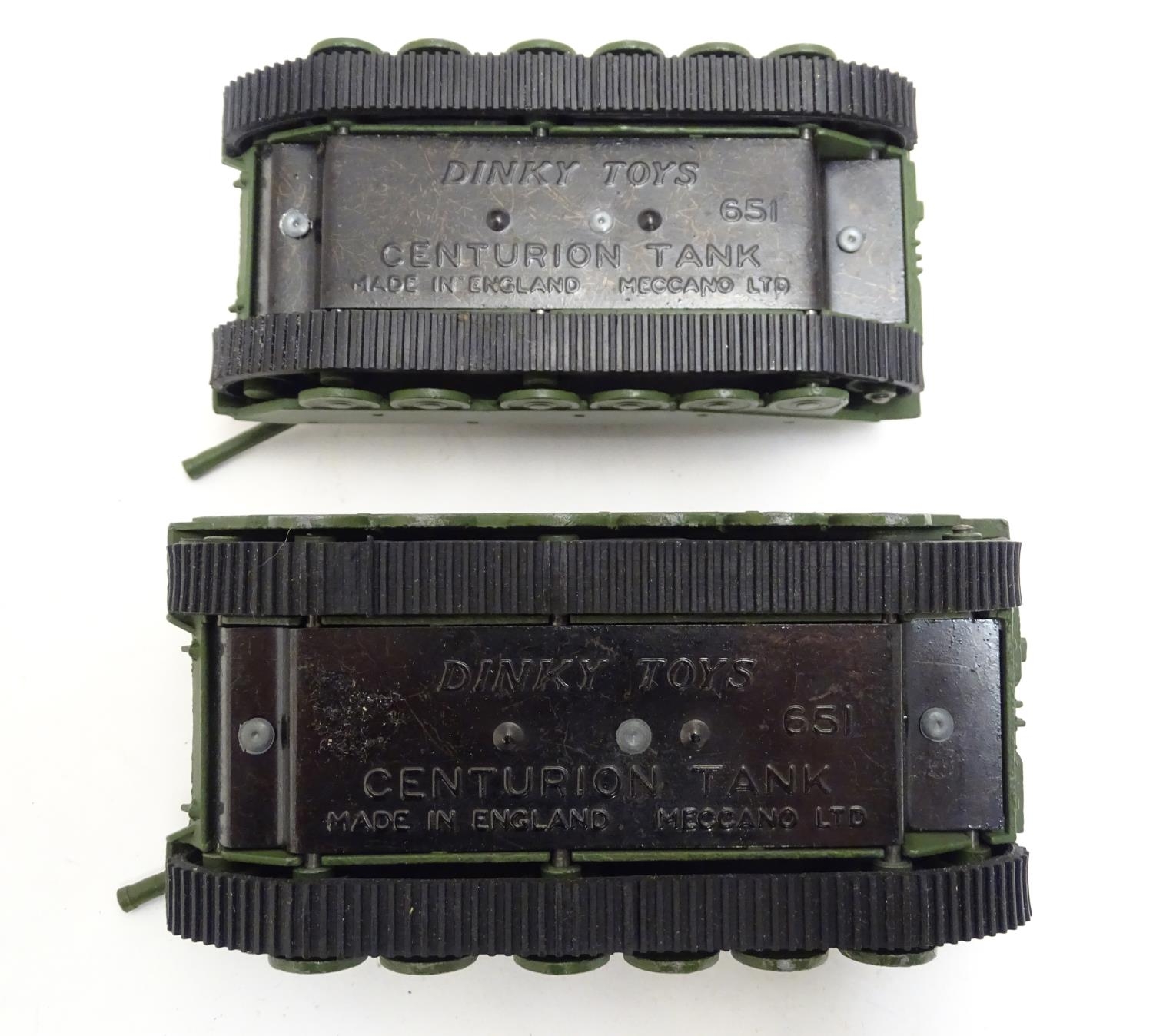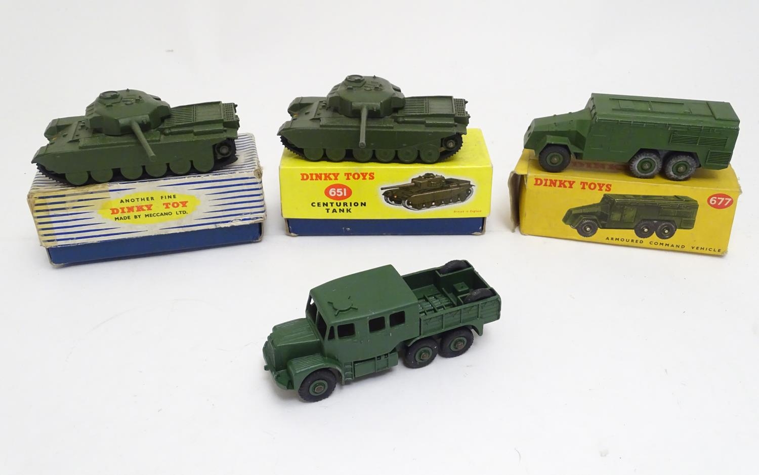 Toys: A collection of 20thC Dinky Toy military vehicles, comprising 651 Centurian Tank (x2, boxed), a 677 Armoured Command Vehicle (boxed), and a 689 Medium Artillery Tractor (4)
