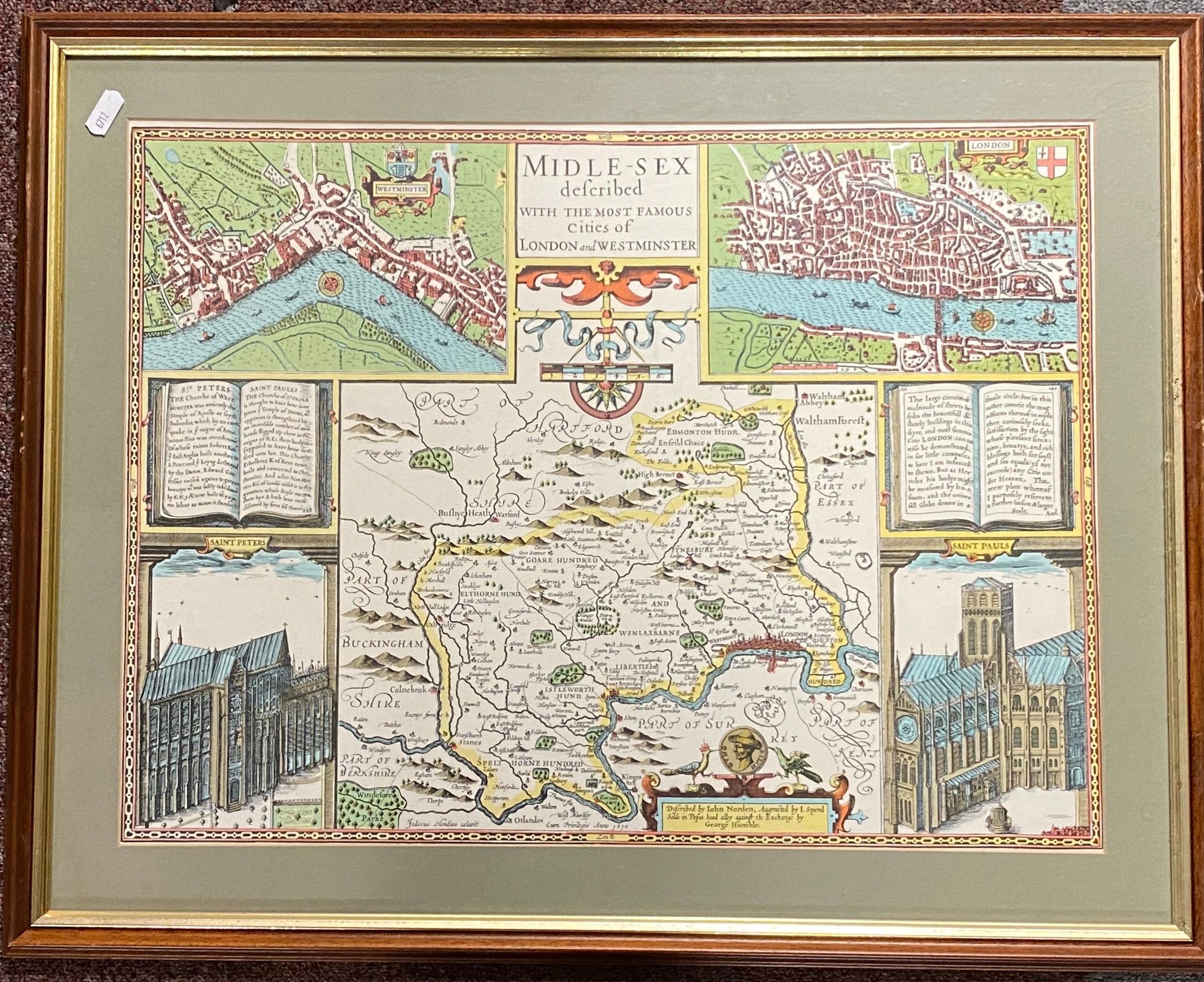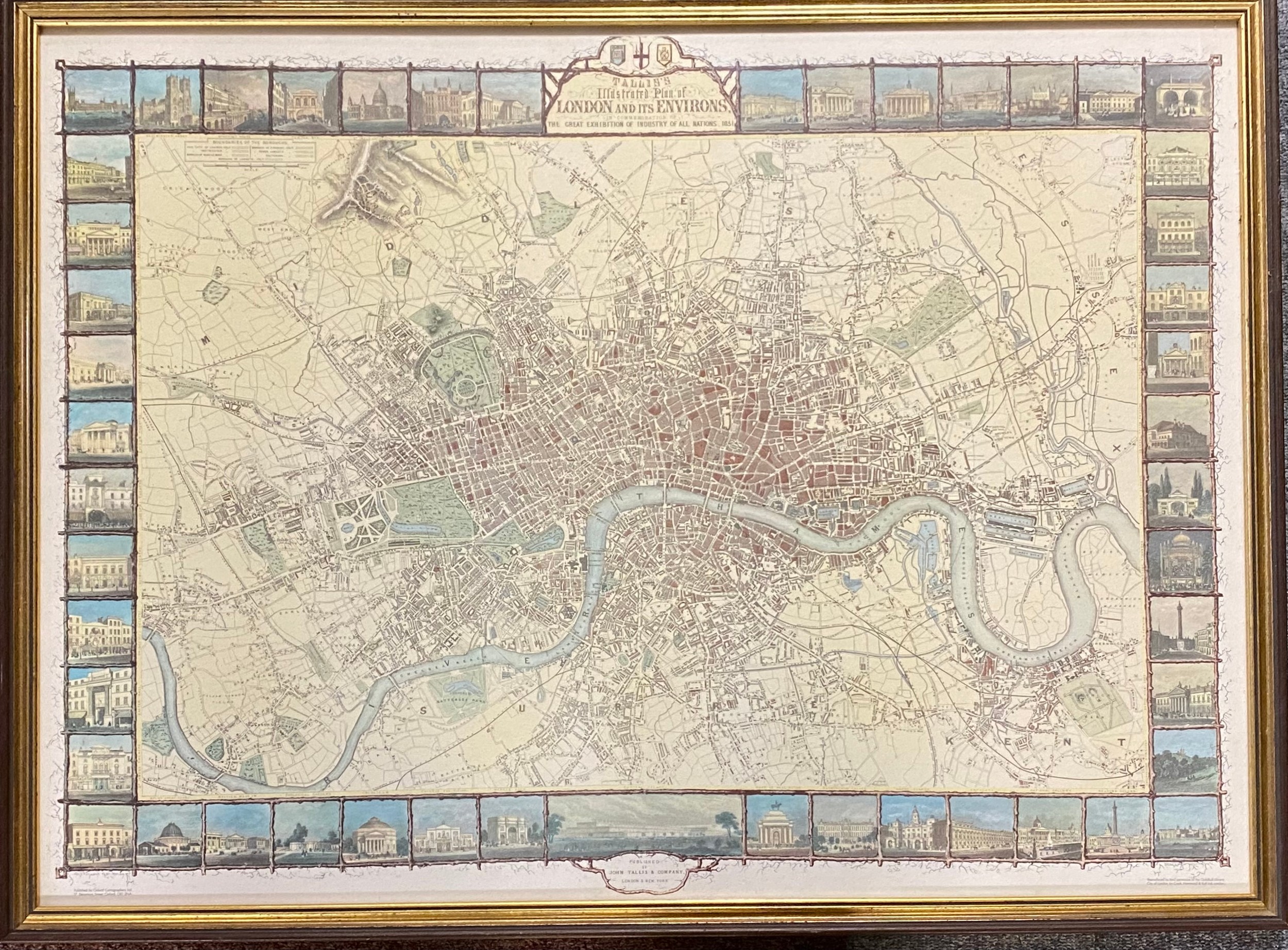 A framed a glazed Tallis's illustrated Plan of London and its environs, a map of Middlesex and a small print of Croydon Palace -