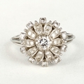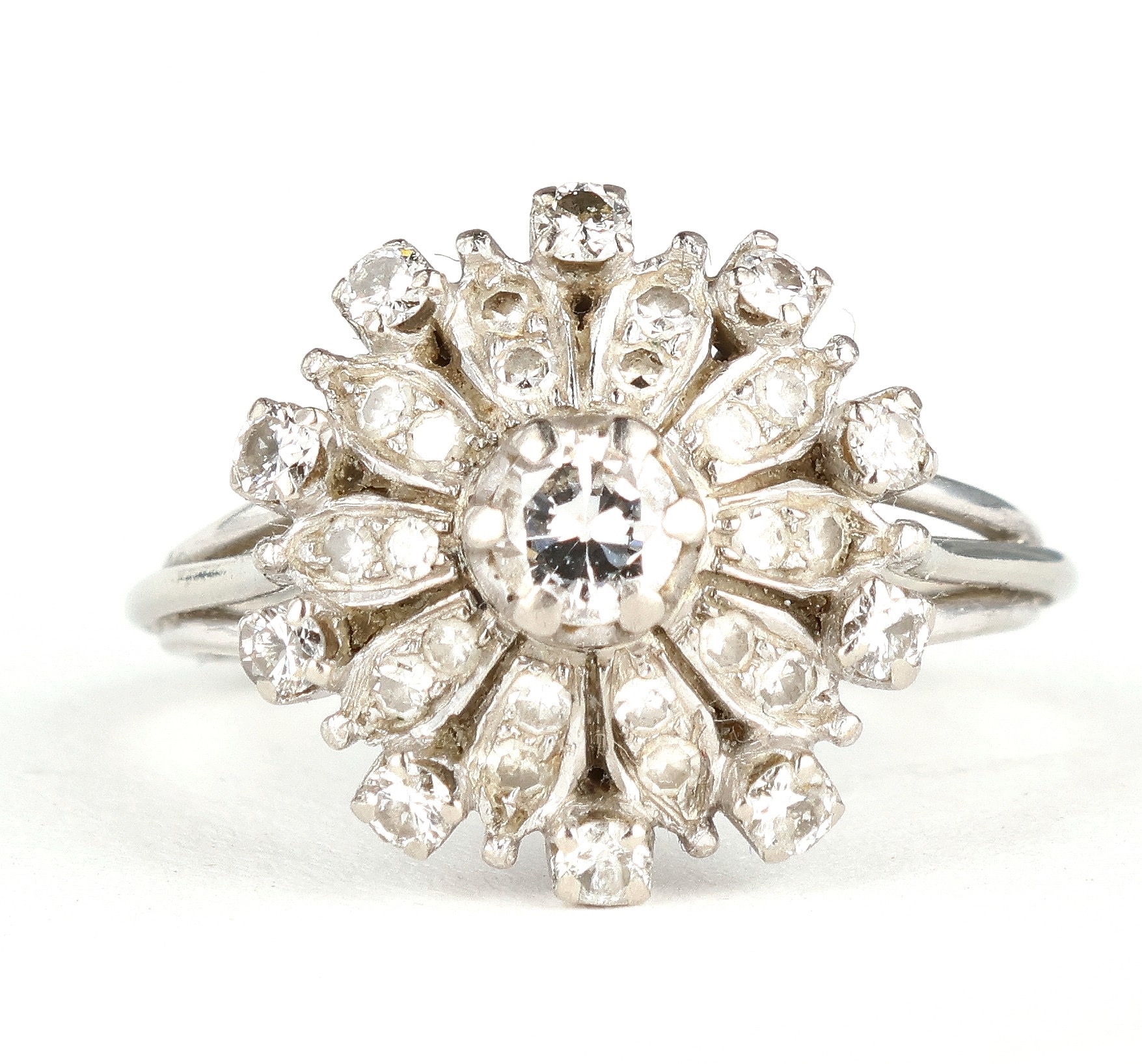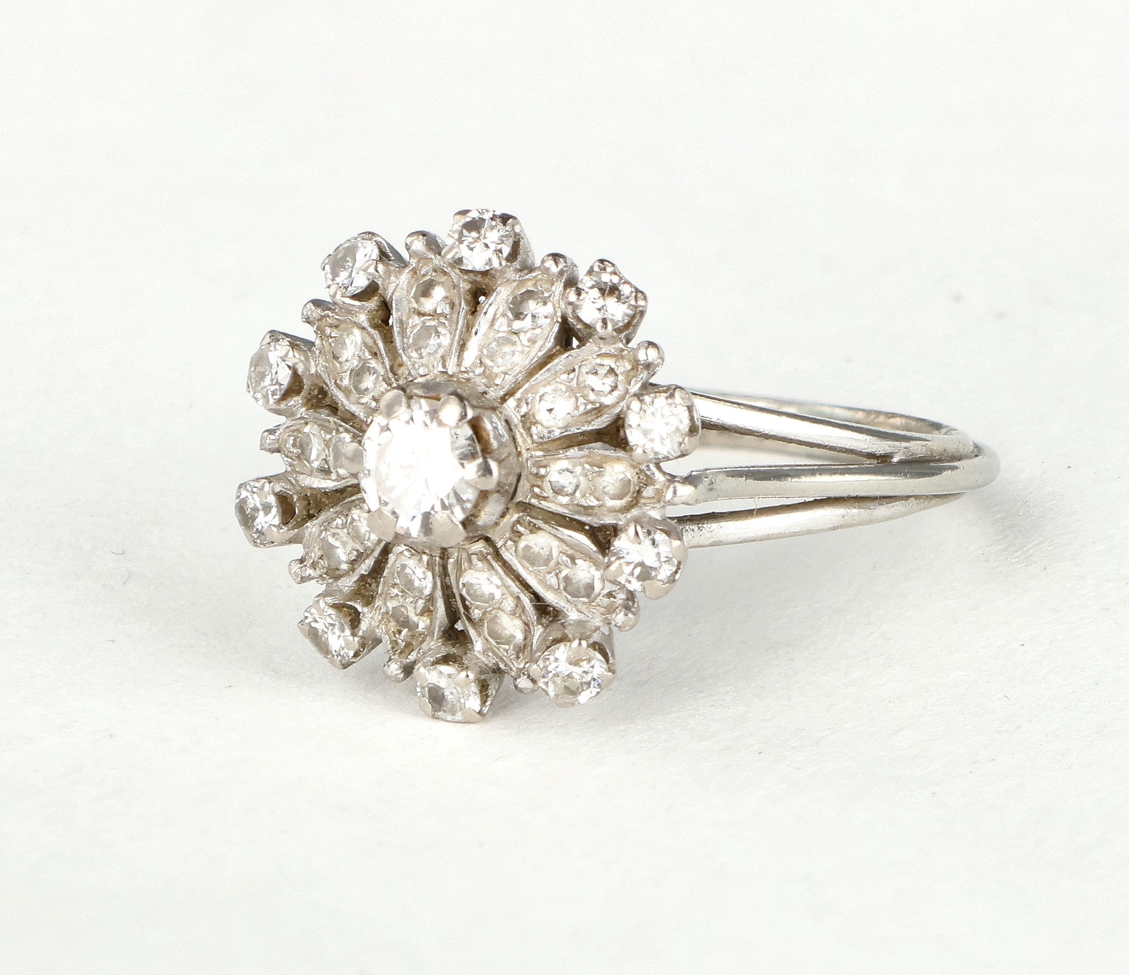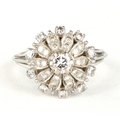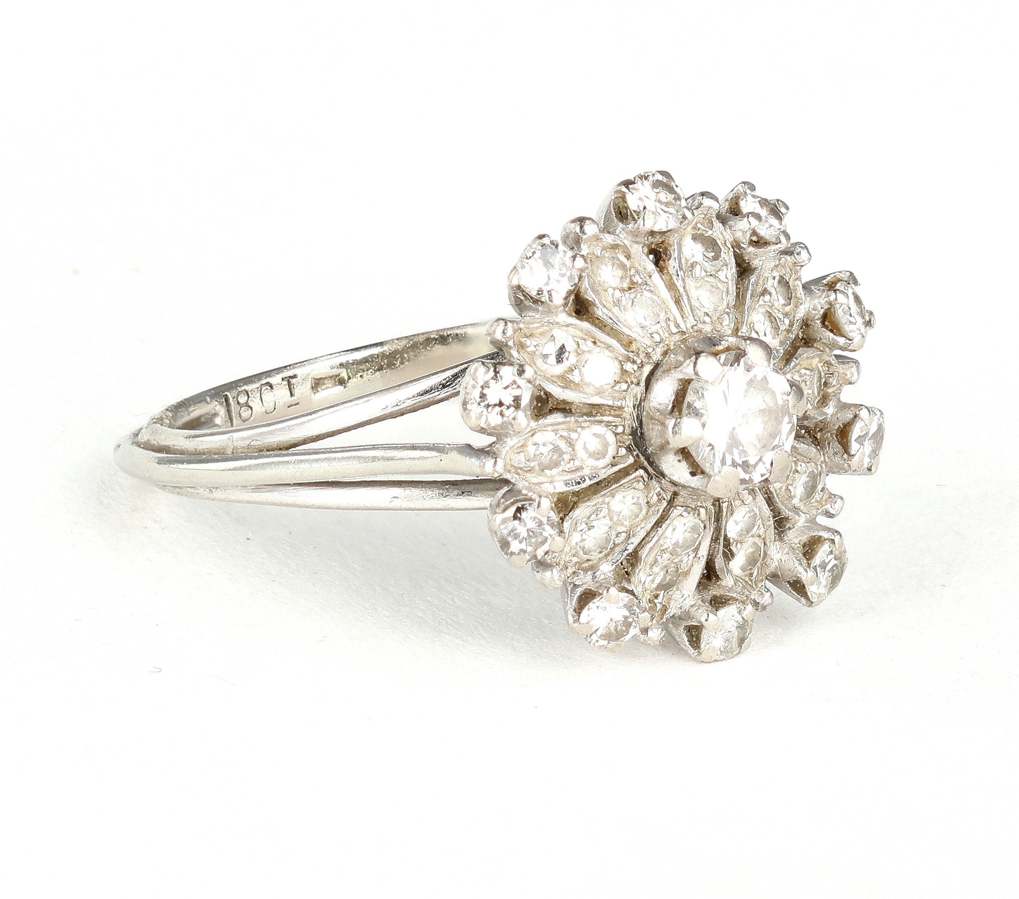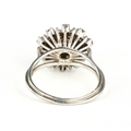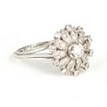 AN 18 CARAT WHITE GOLD DIAMOND CLUSTER RING