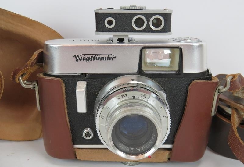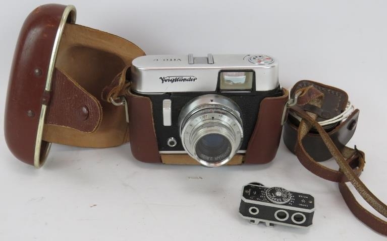 A Voigtlander Vito C vintage camera with leather case and additional combi-meter.
