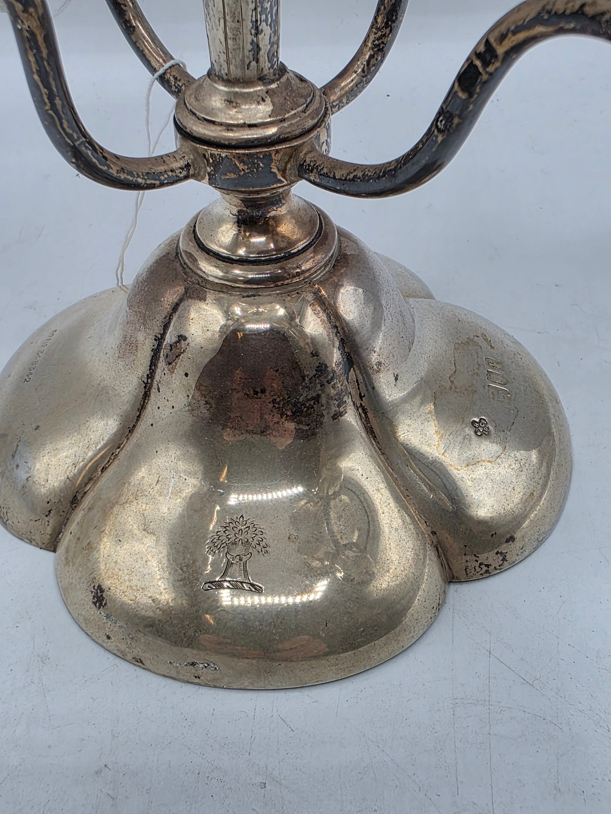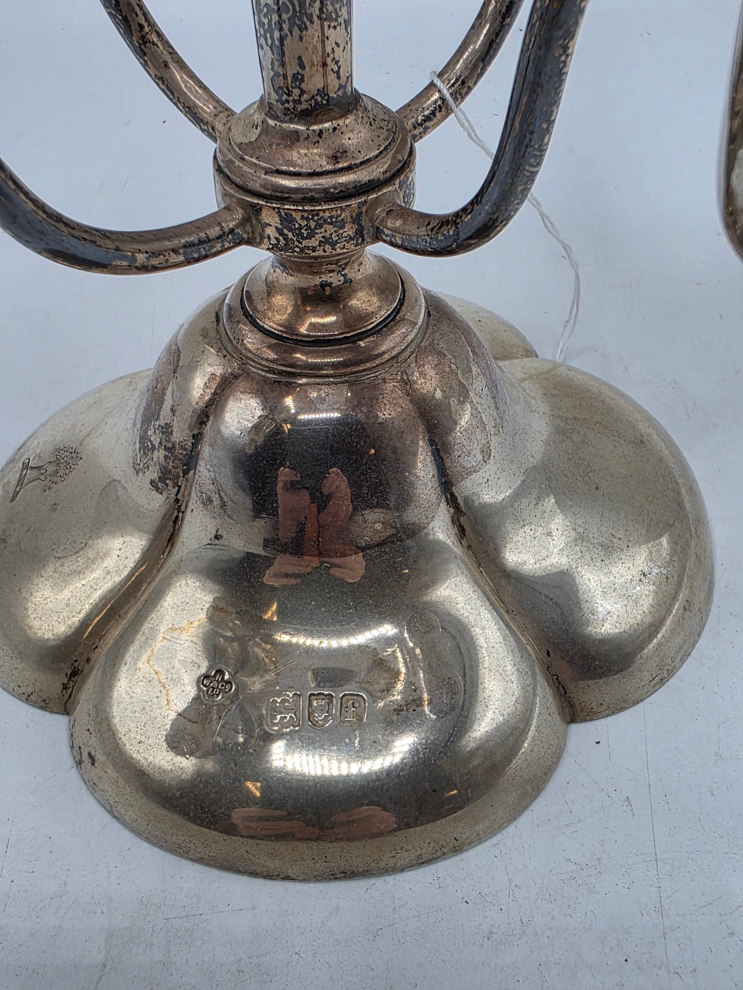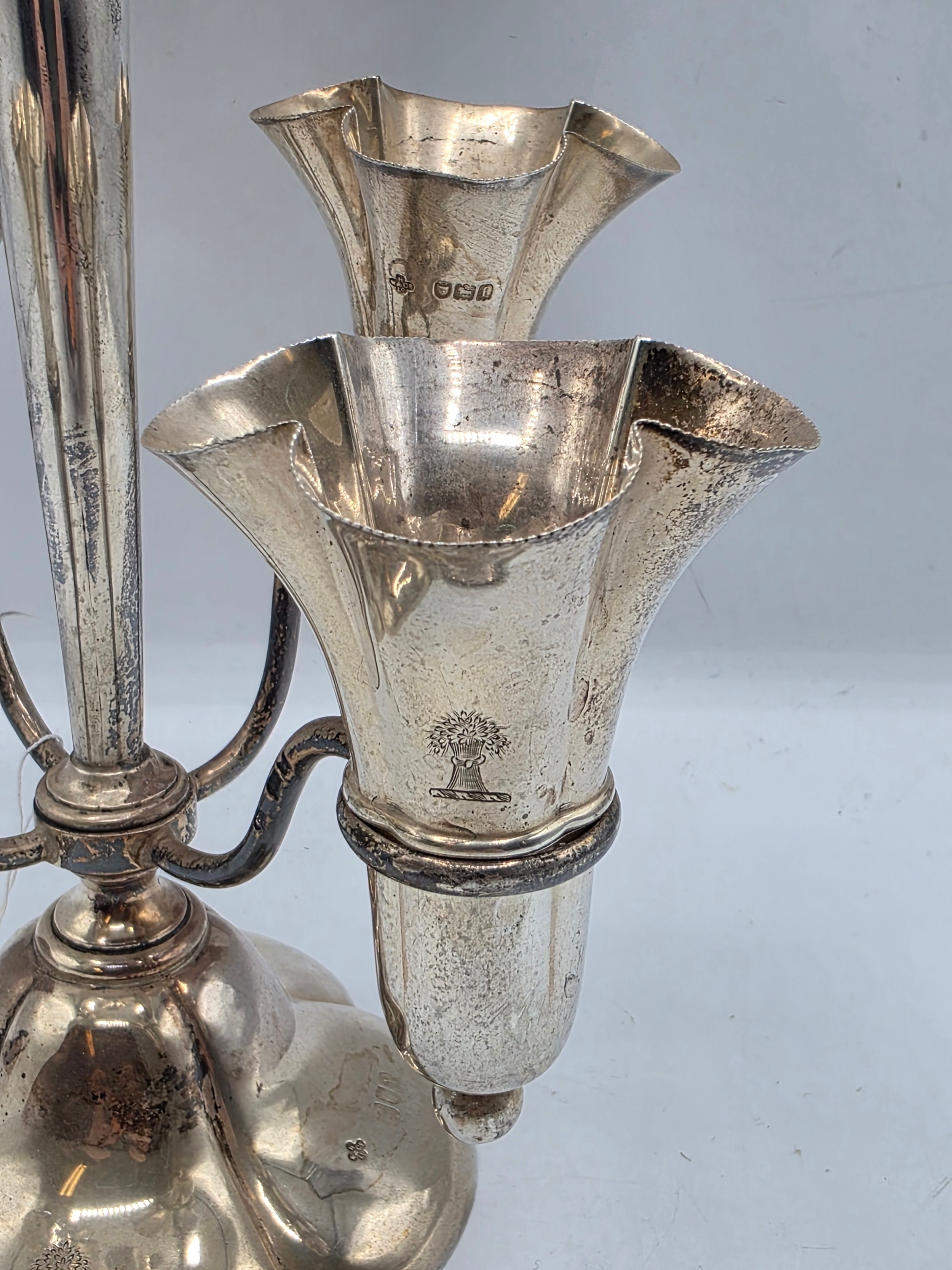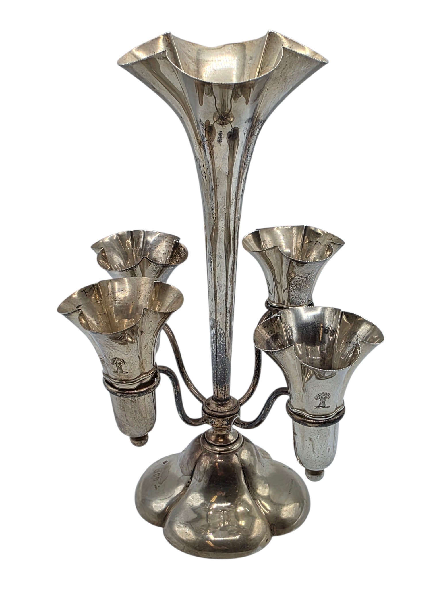 A sterling silver table centre epergne with weighted quatrefoil base 25 cm H, gross weight 662 g