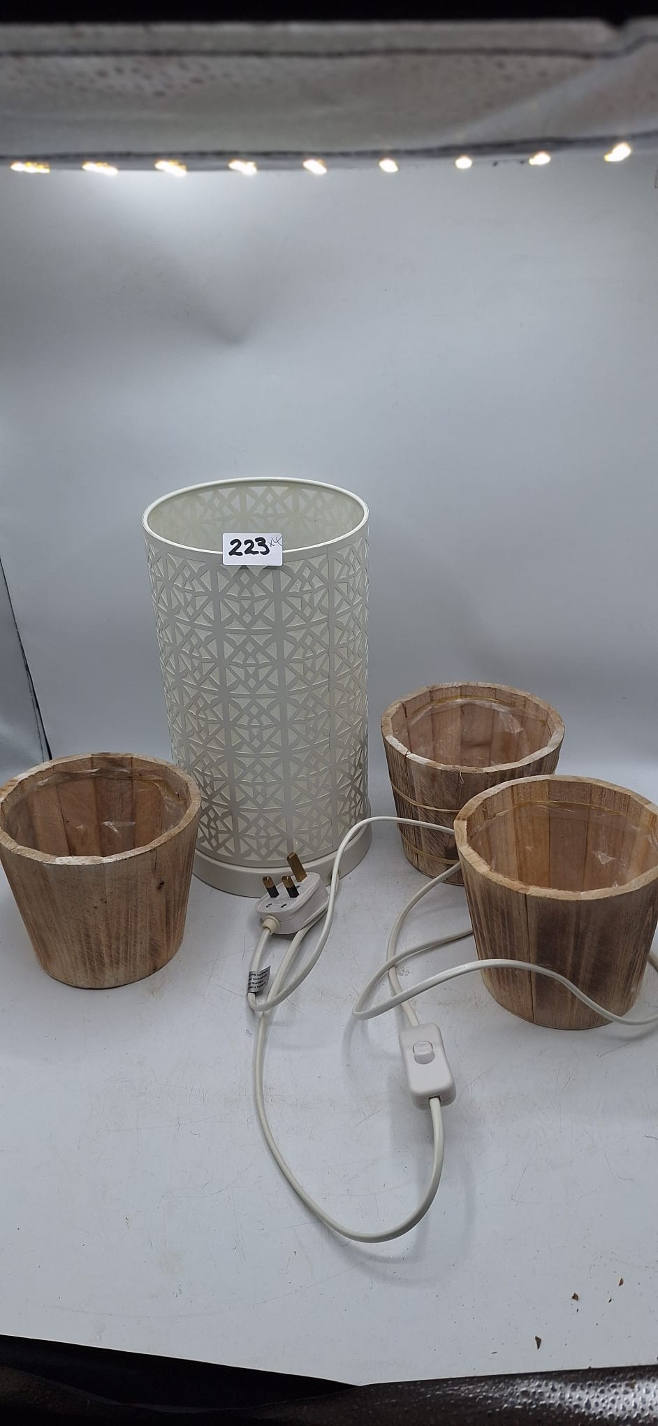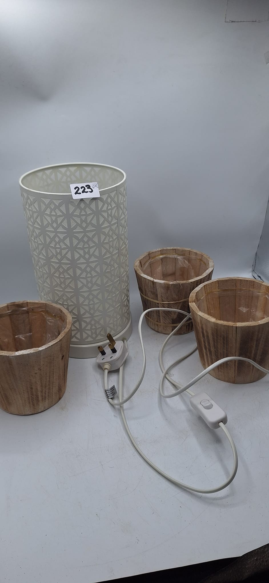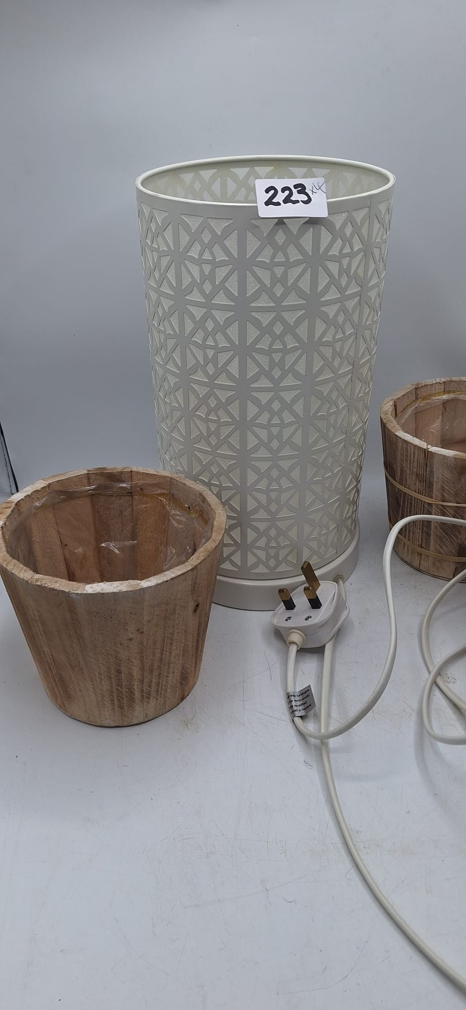 Modern Cut Metal Lamp and 3 Wooden Planters