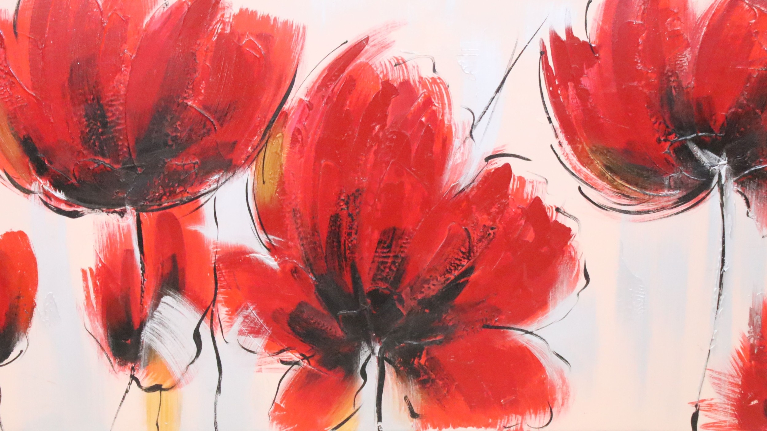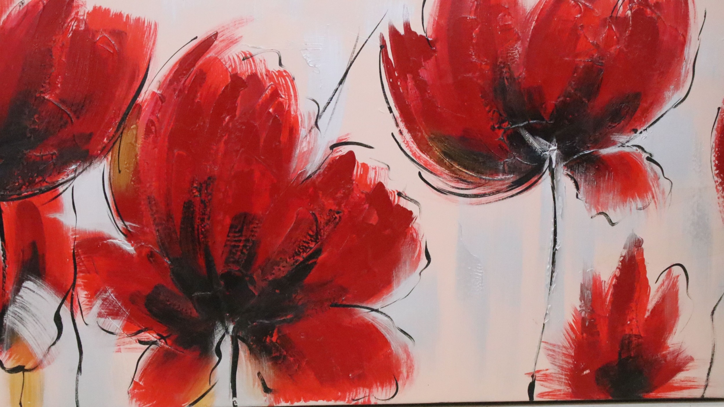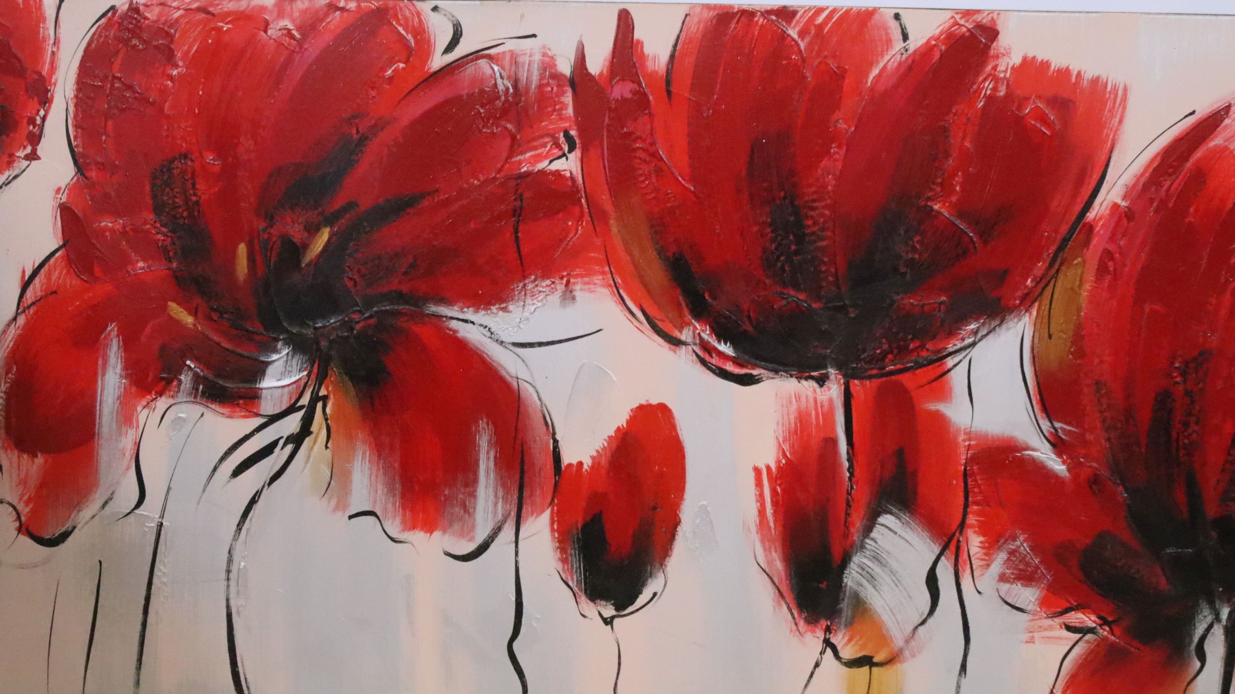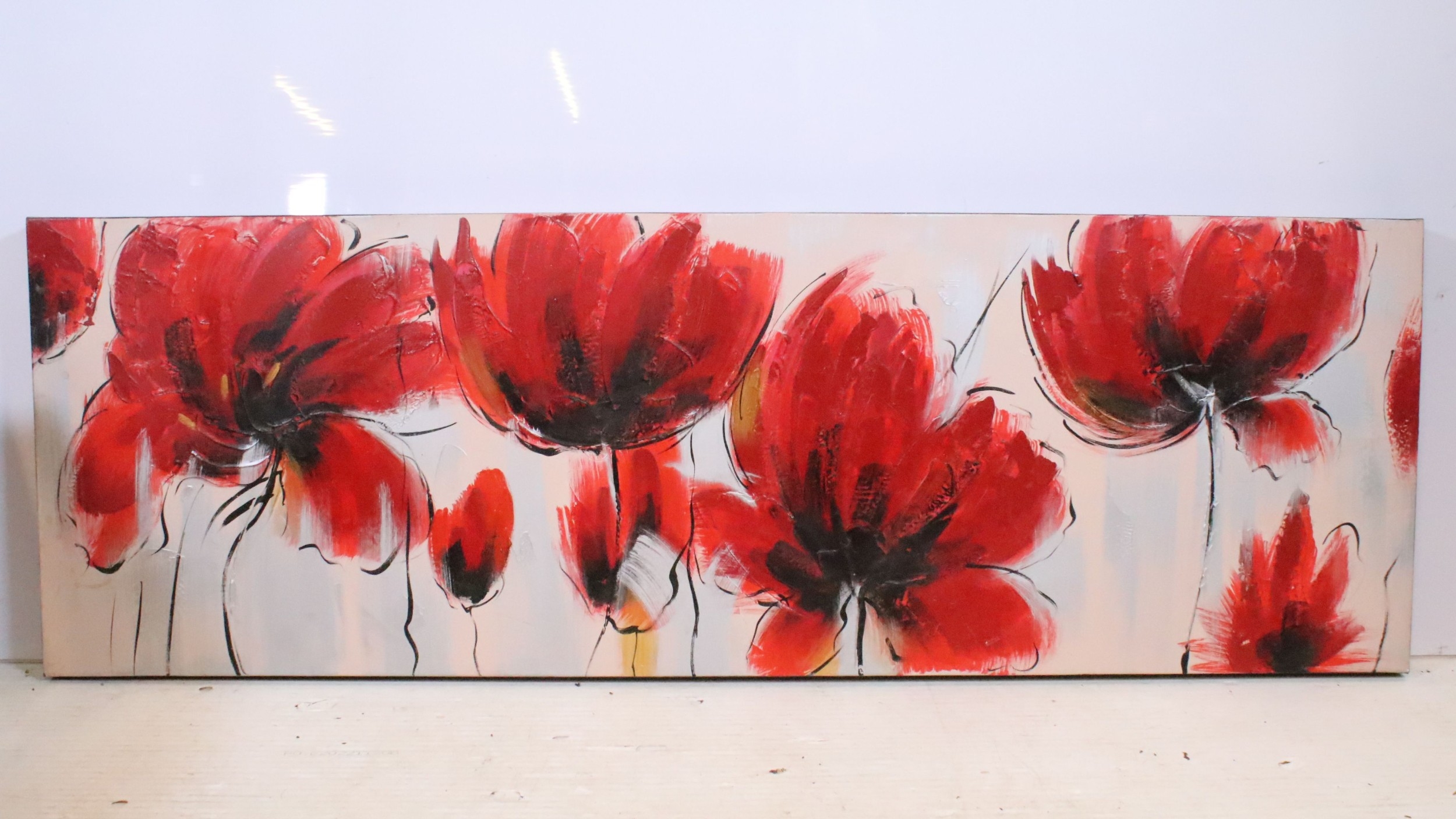 20th century study of poppies, impasto oil on canvas, 49.5 x 150cm