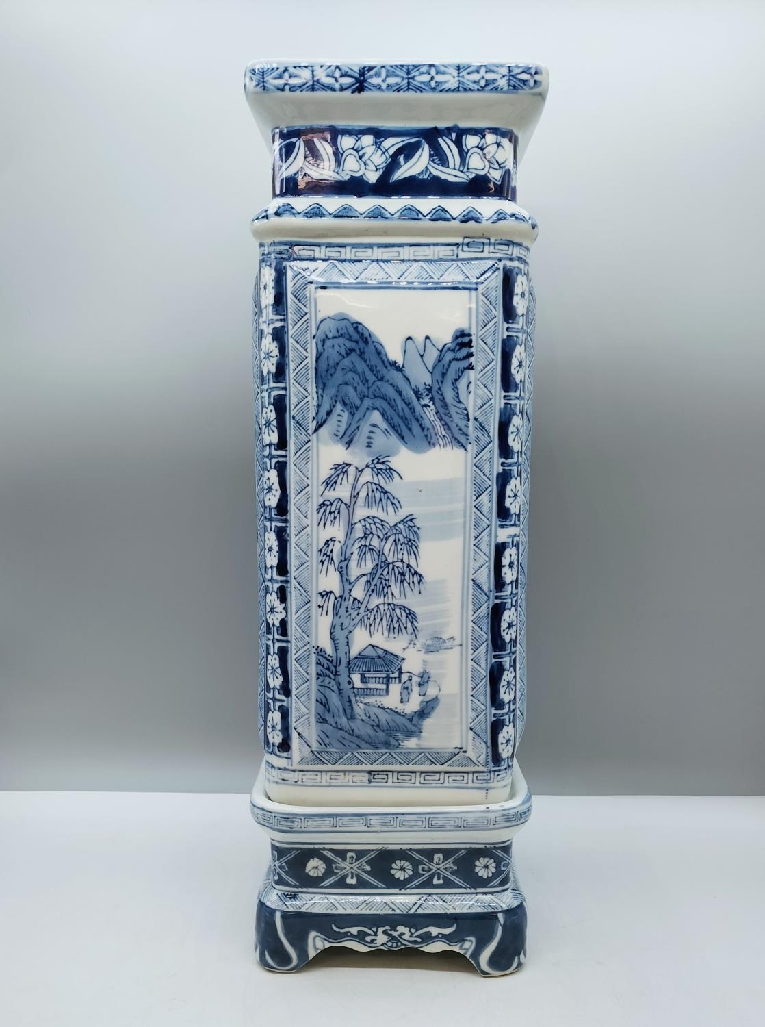 Early/Mid 20th Century Chinese Blue and White Vase on Stand with Character Mark to Base. Total Height 42.5cm.
