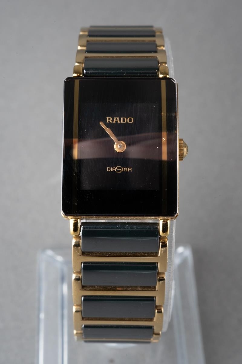 A ladies RADO 'DiaStar' wristwatch. The dial signed 'Rado DiaStar', case back signed Rado and stamped bracelet links in high tech ceramic and numbered 153.0383.3, approx case diameter 22mm by 18mm, approx gross weight 38.3 grams, we can not guarantee the accuracy or working order of any watch sold.