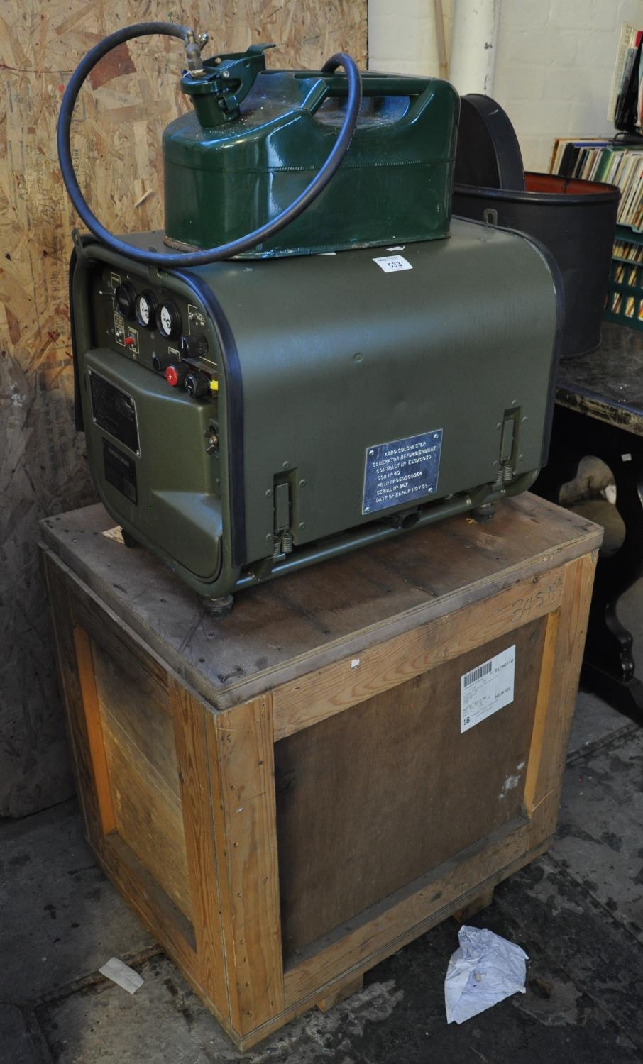 Vintage engine driven generator with a plaque marked 'Aero Colchester serial no. 287'.