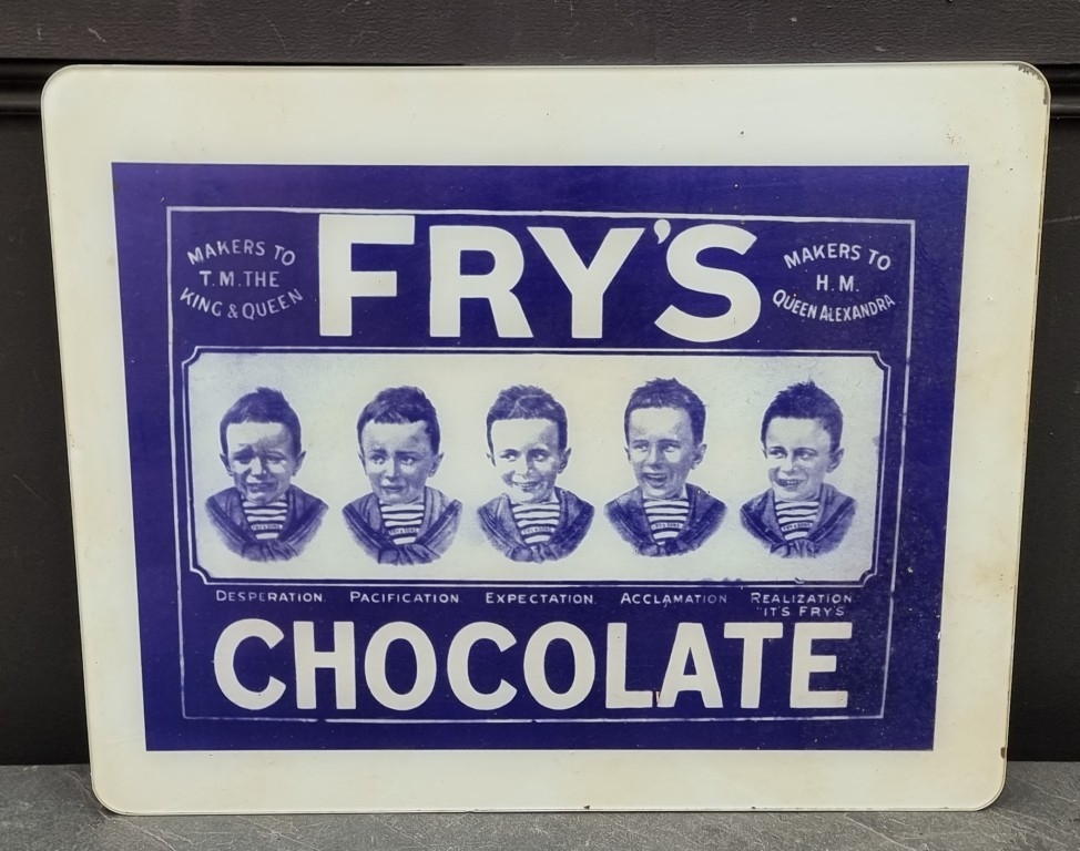 Advertising: a reproduction Fry's glass panel, 40.5 x 50.5cm.