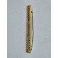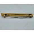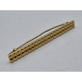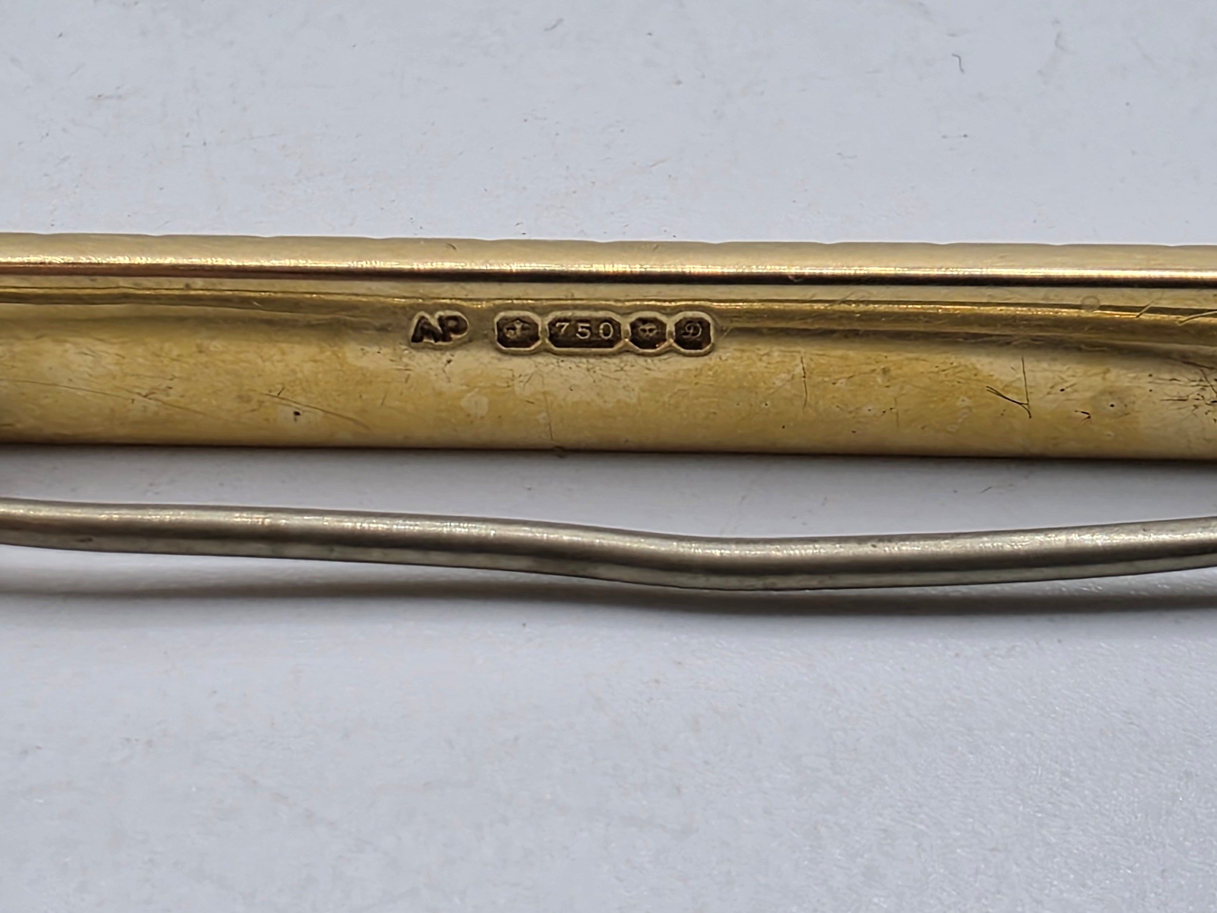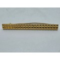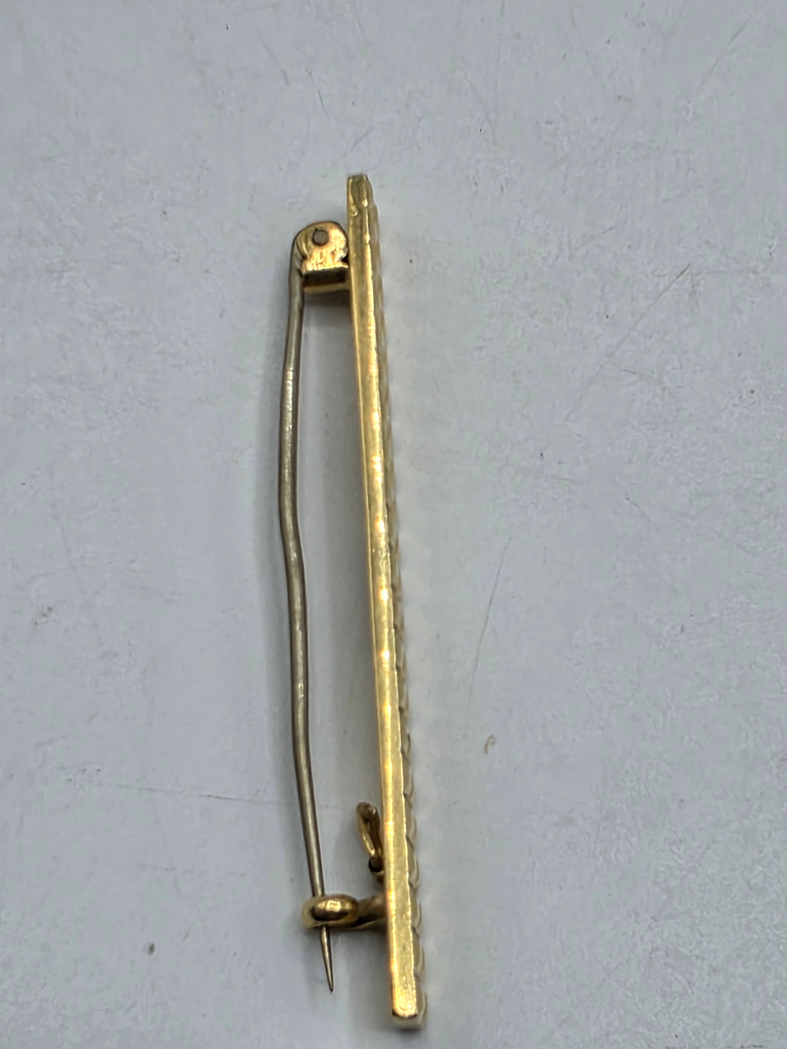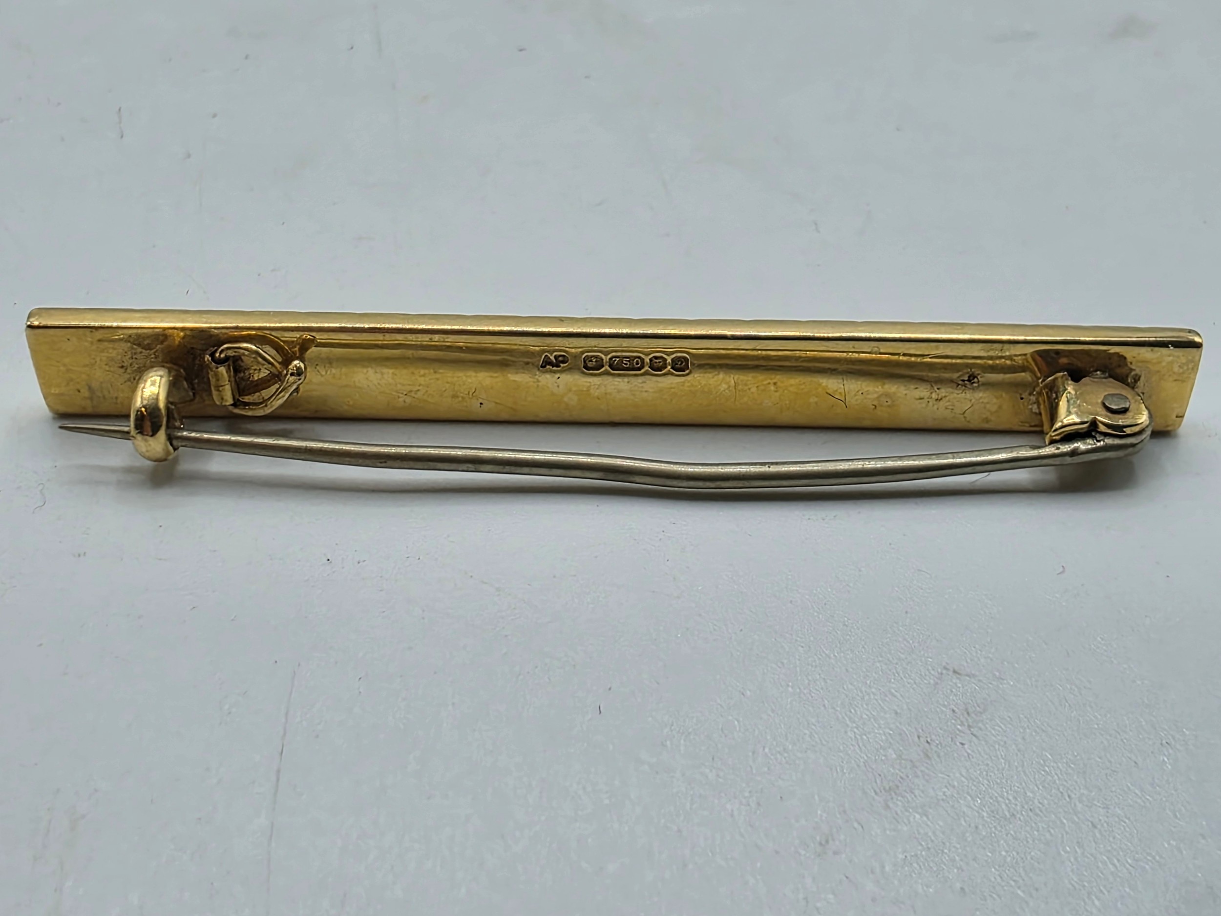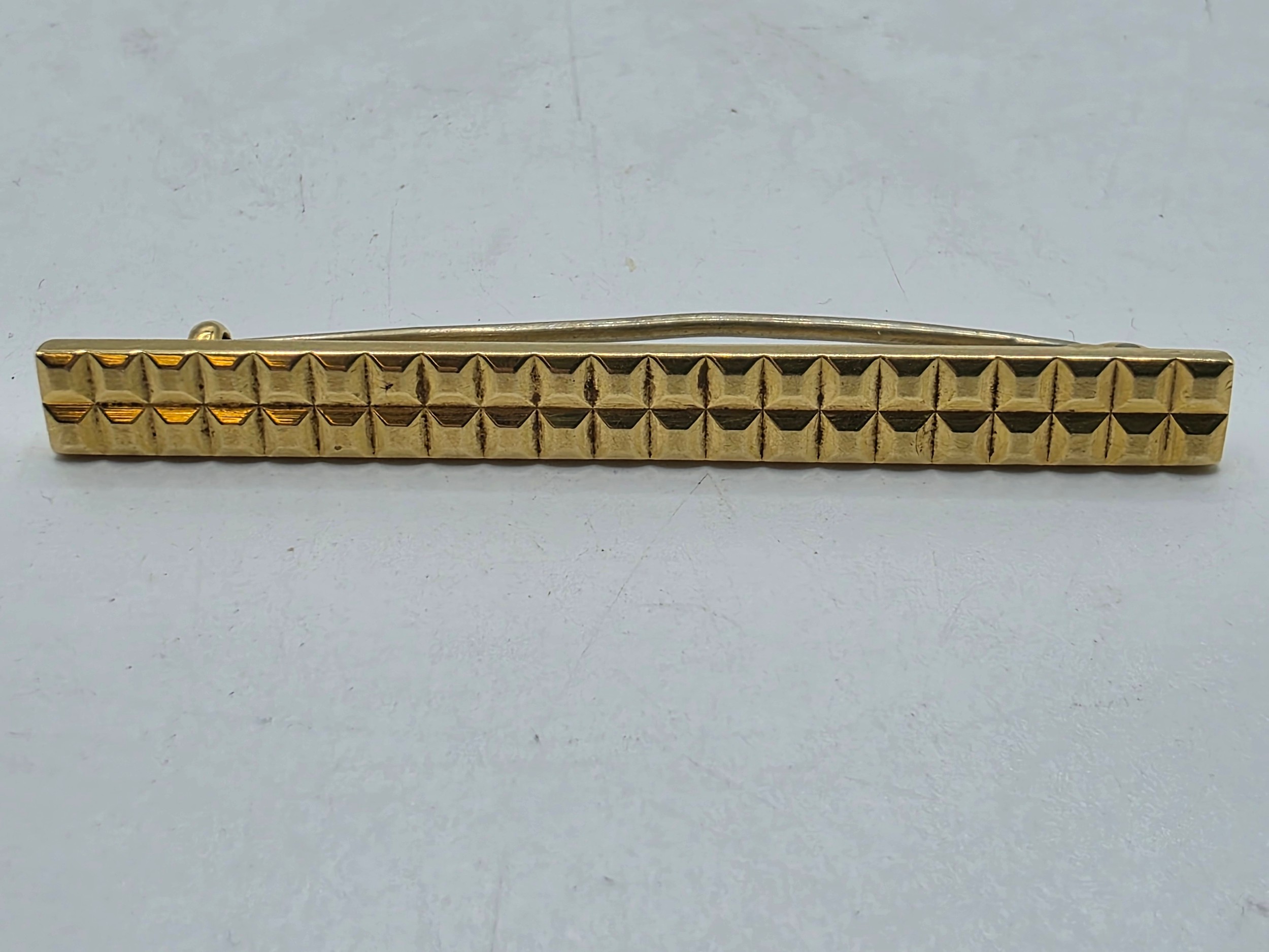 An 18ct gold bar brooch with geometric textured design. 9.9g.