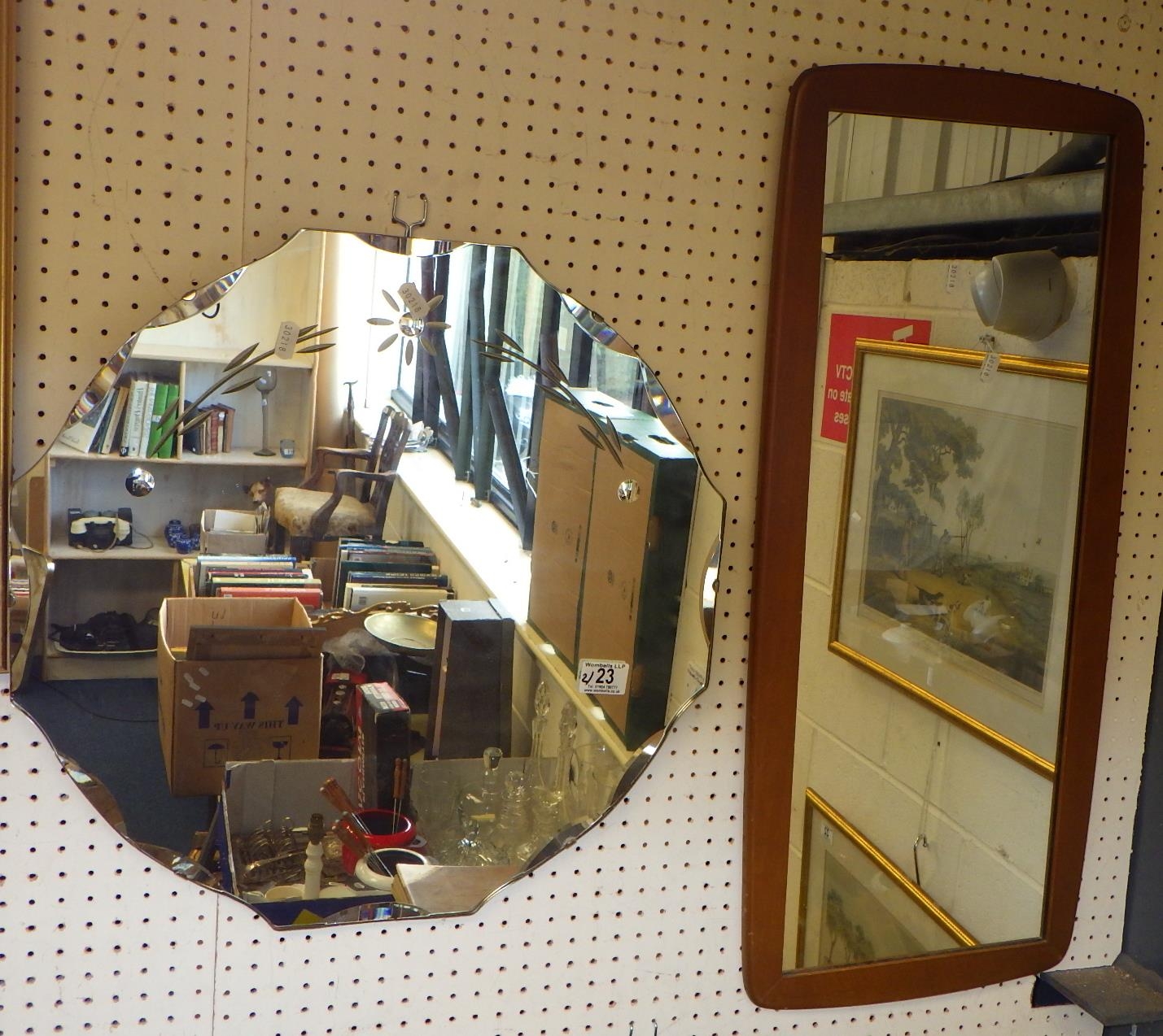 A mid century hall mirror together with a frameless mirror (2)