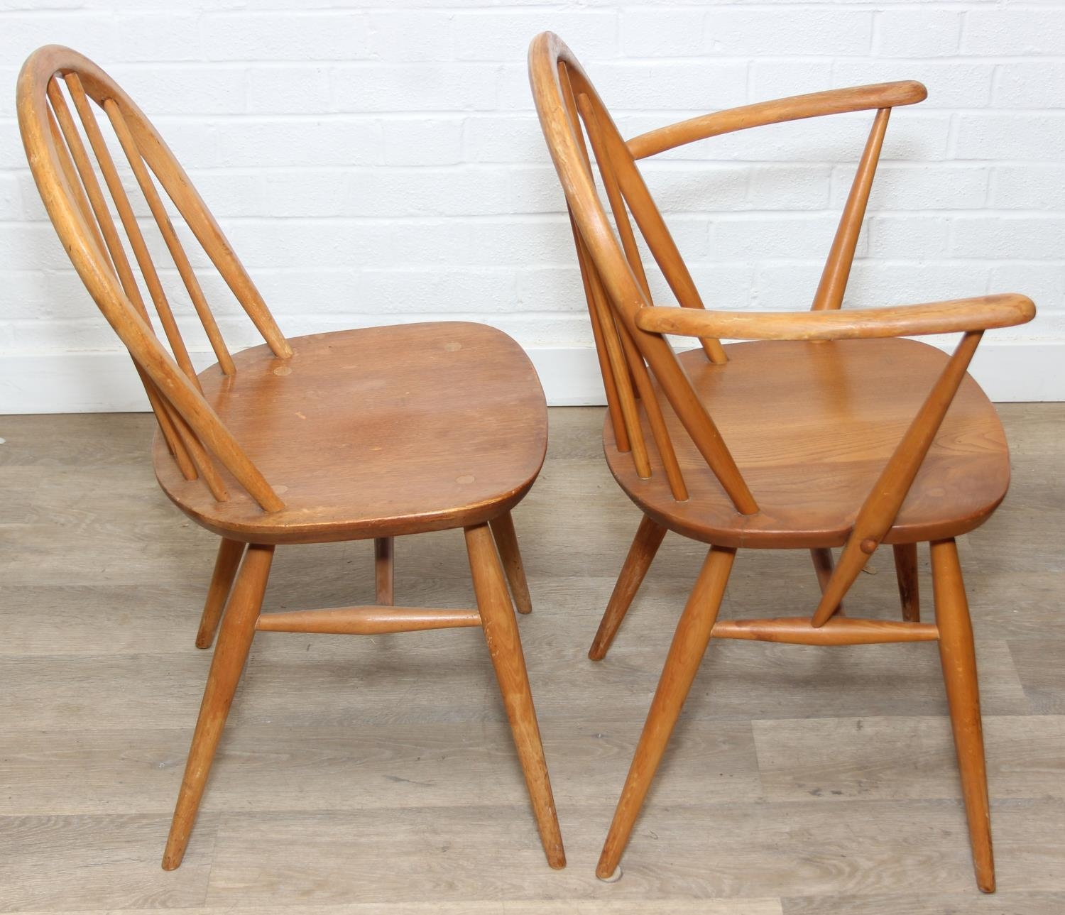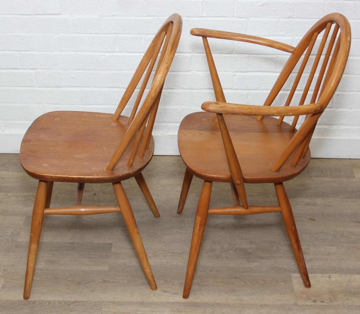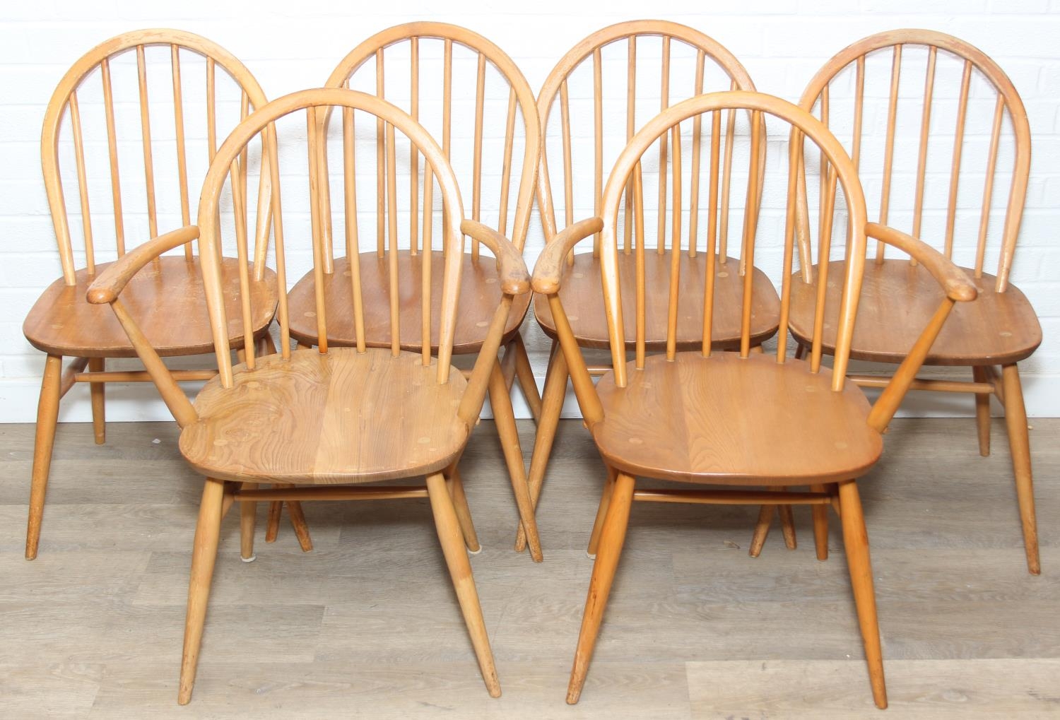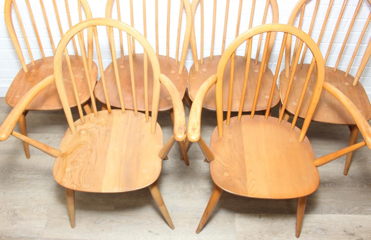 Set of six Ercol chairs hoop back dining chairs, two carvers and four dining chairs, blonde finish, 59cm x 84cm [6]