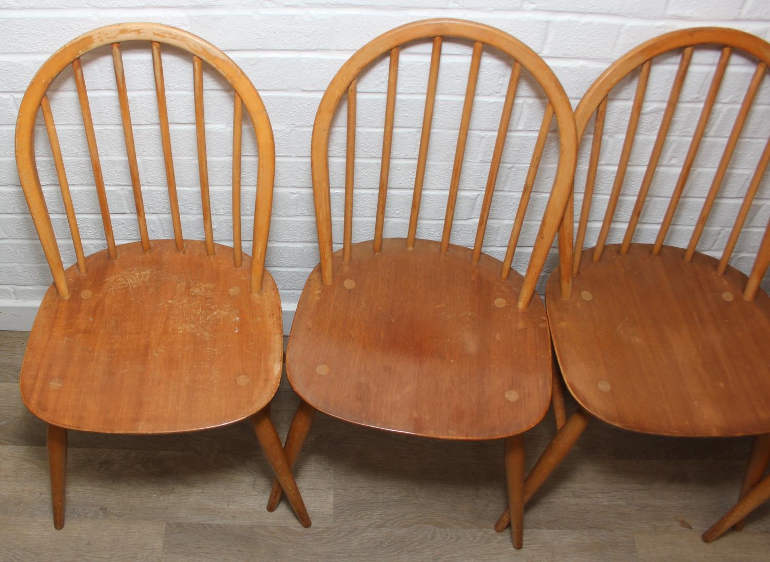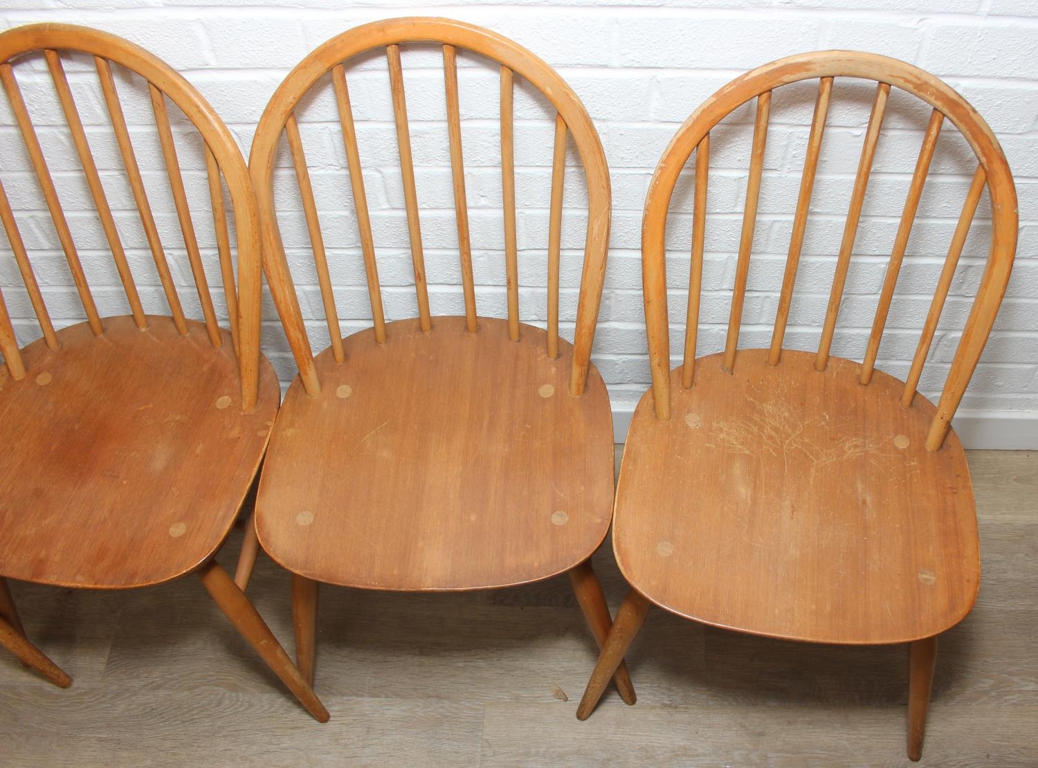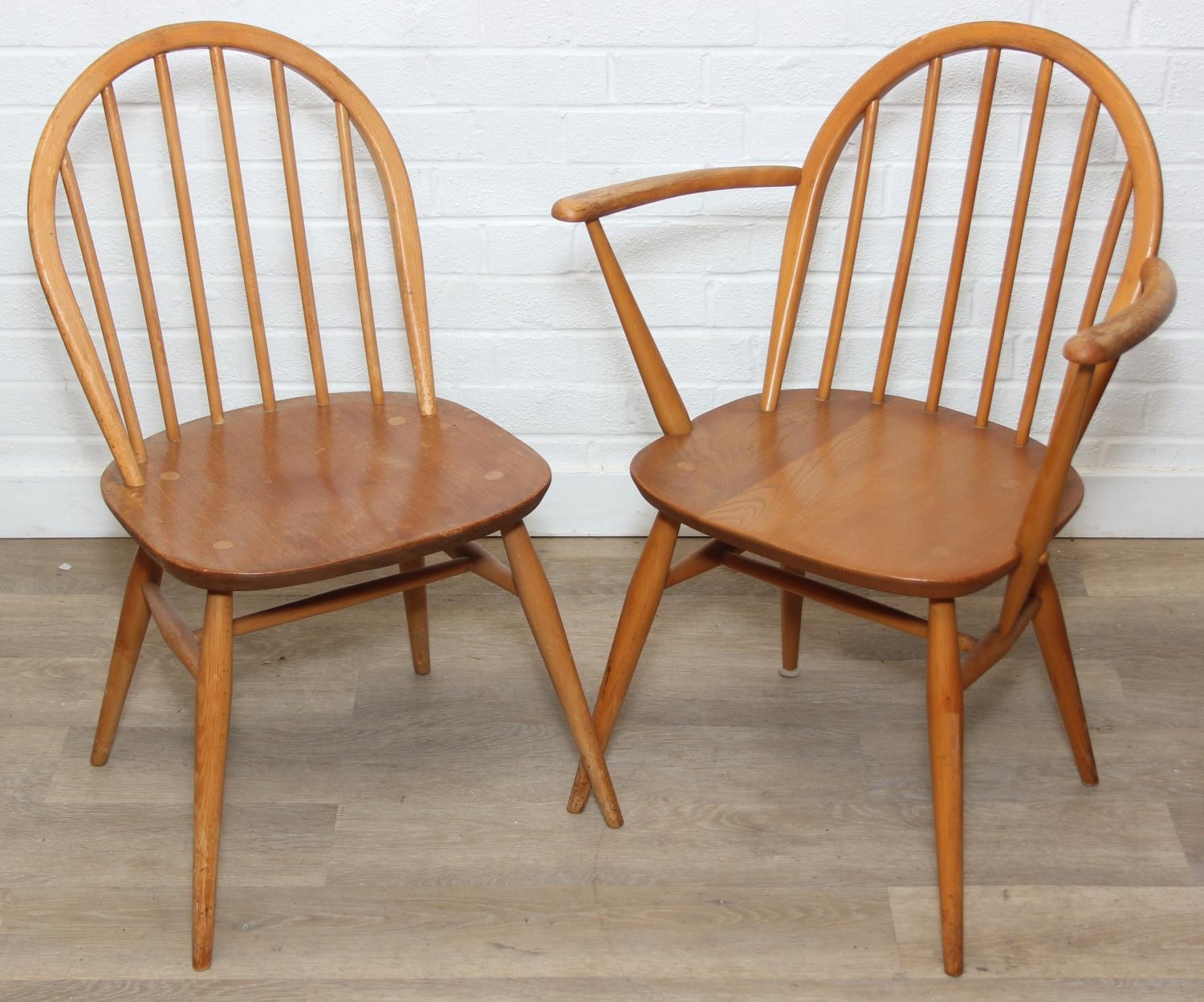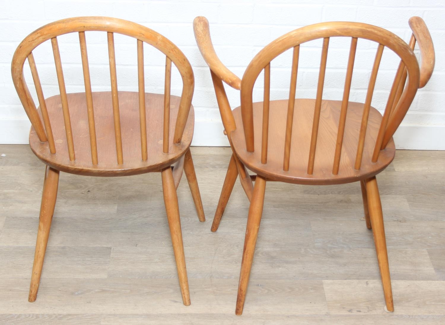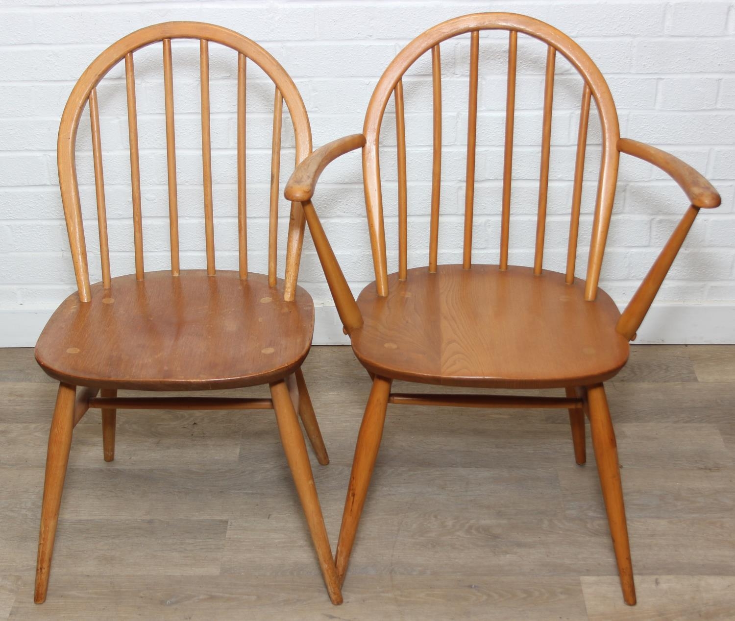 Set of six Ercol chairs hoop back dining chairs, two carvers and four dining chairs, blonde finish, 59cm x 84cm [6]