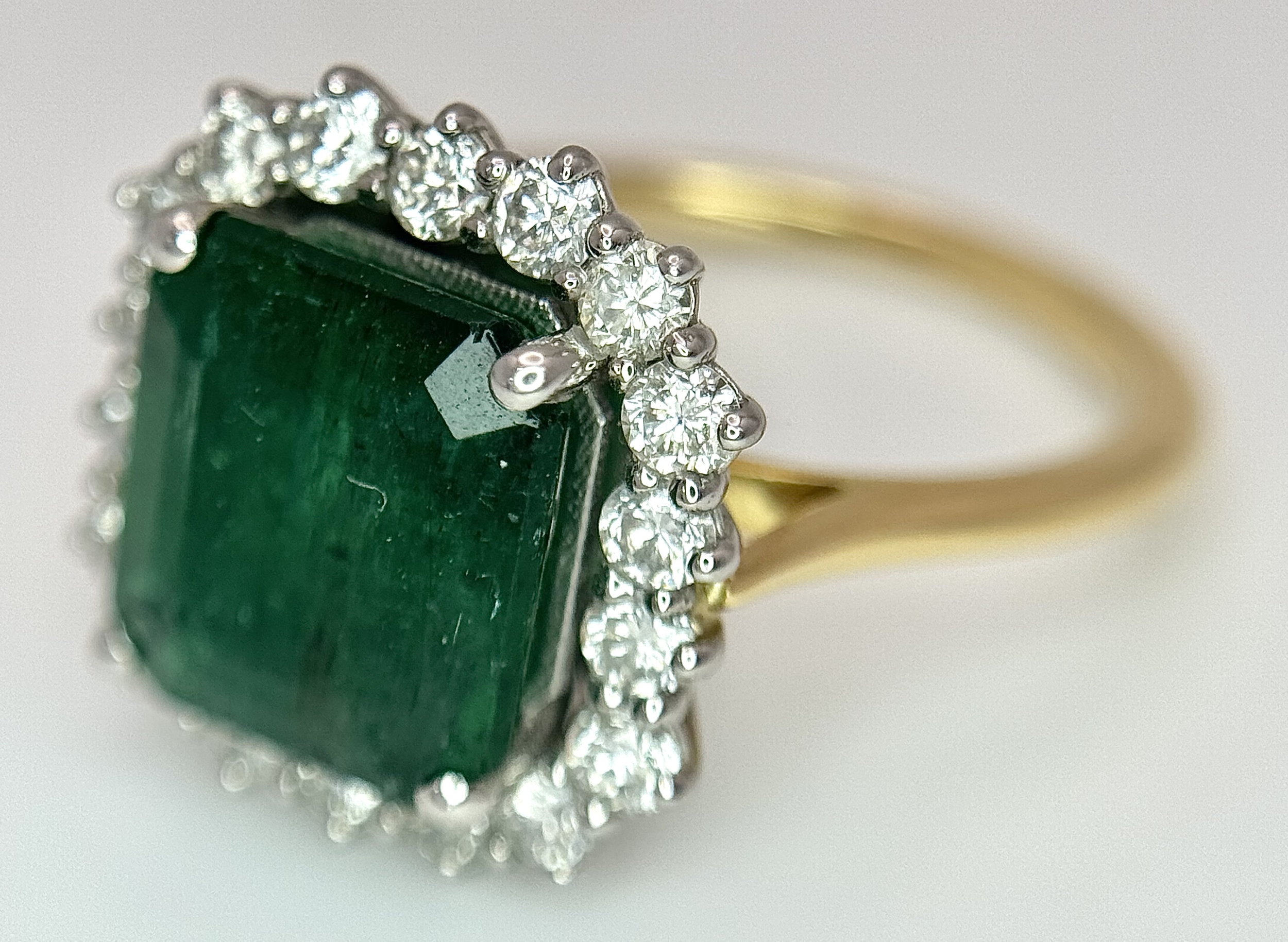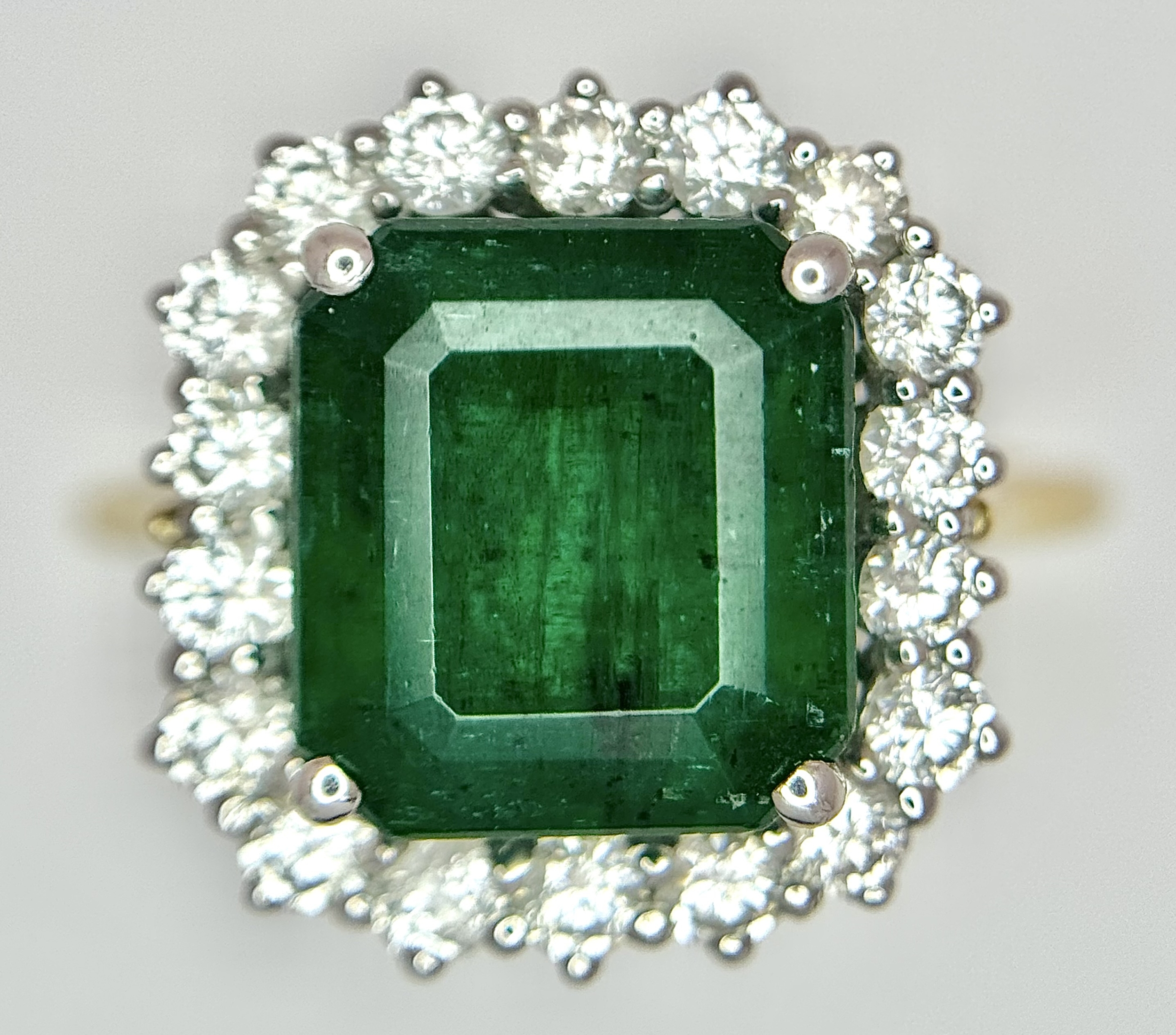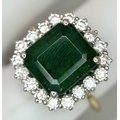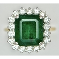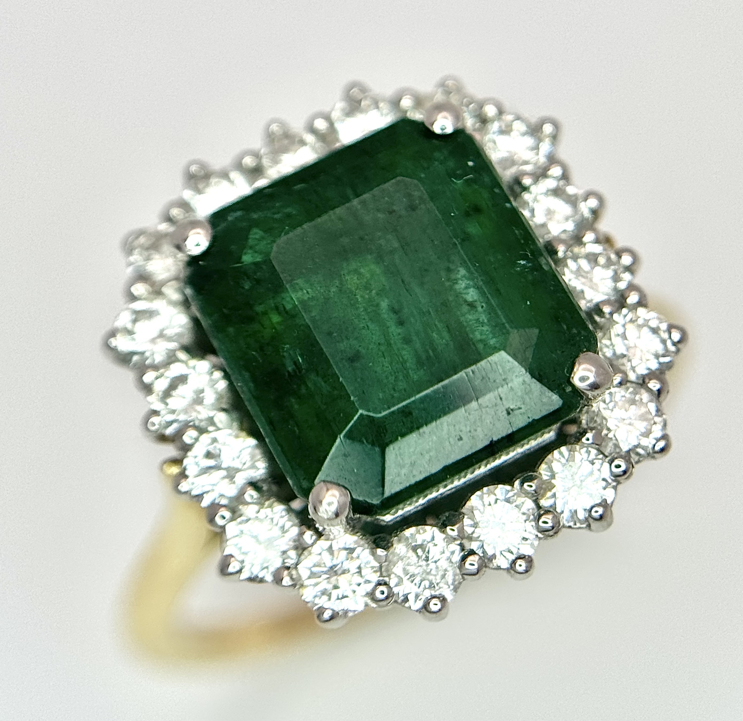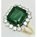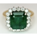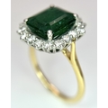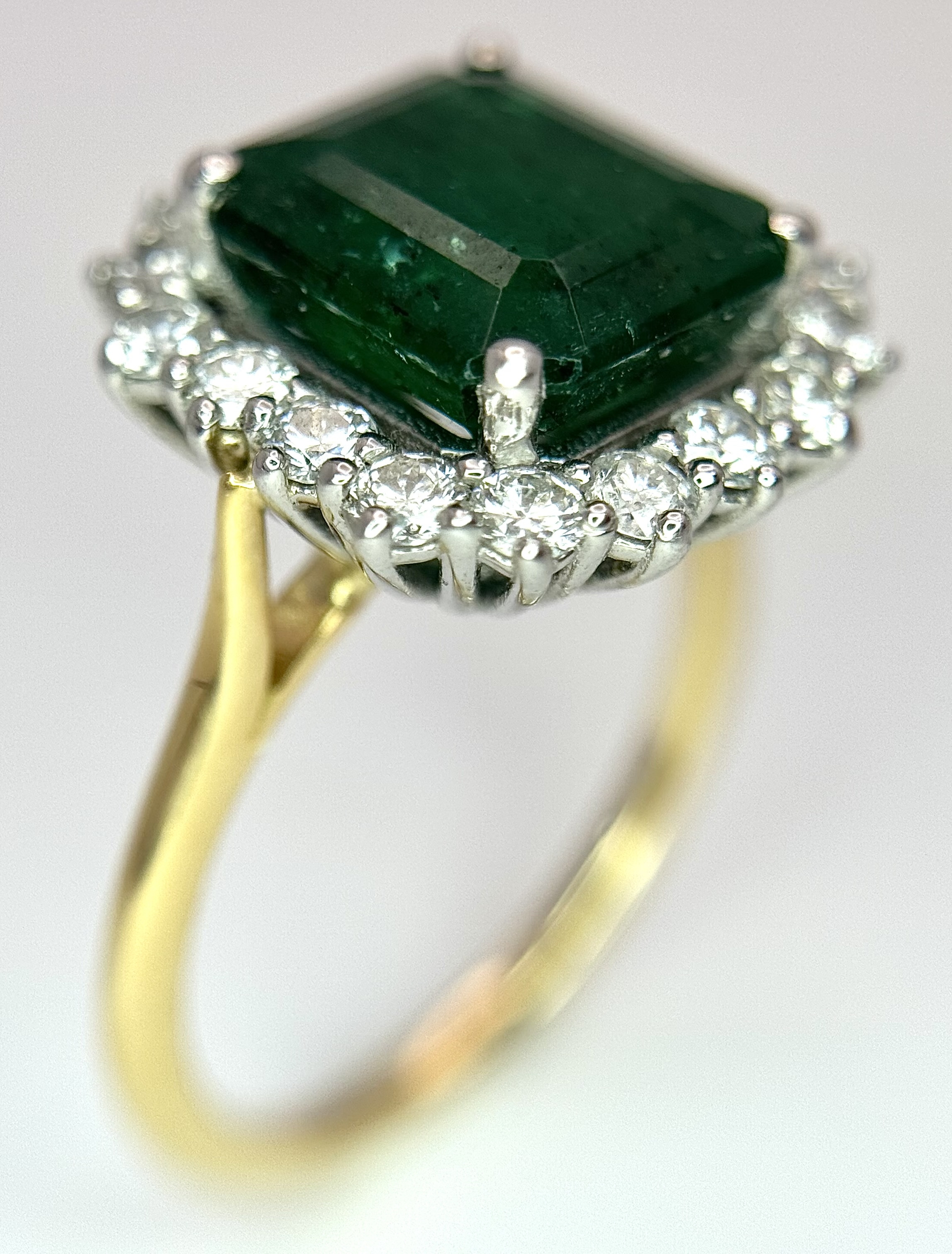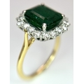 A W.G.I Certified 18K Yellow Gold, 950 Platinum, Emerald and Diamond Ring. An octagonal cut 4.05ct emerald with a 0.55ct diamond surround. Size N 1/2. 6.6g. r-213504.