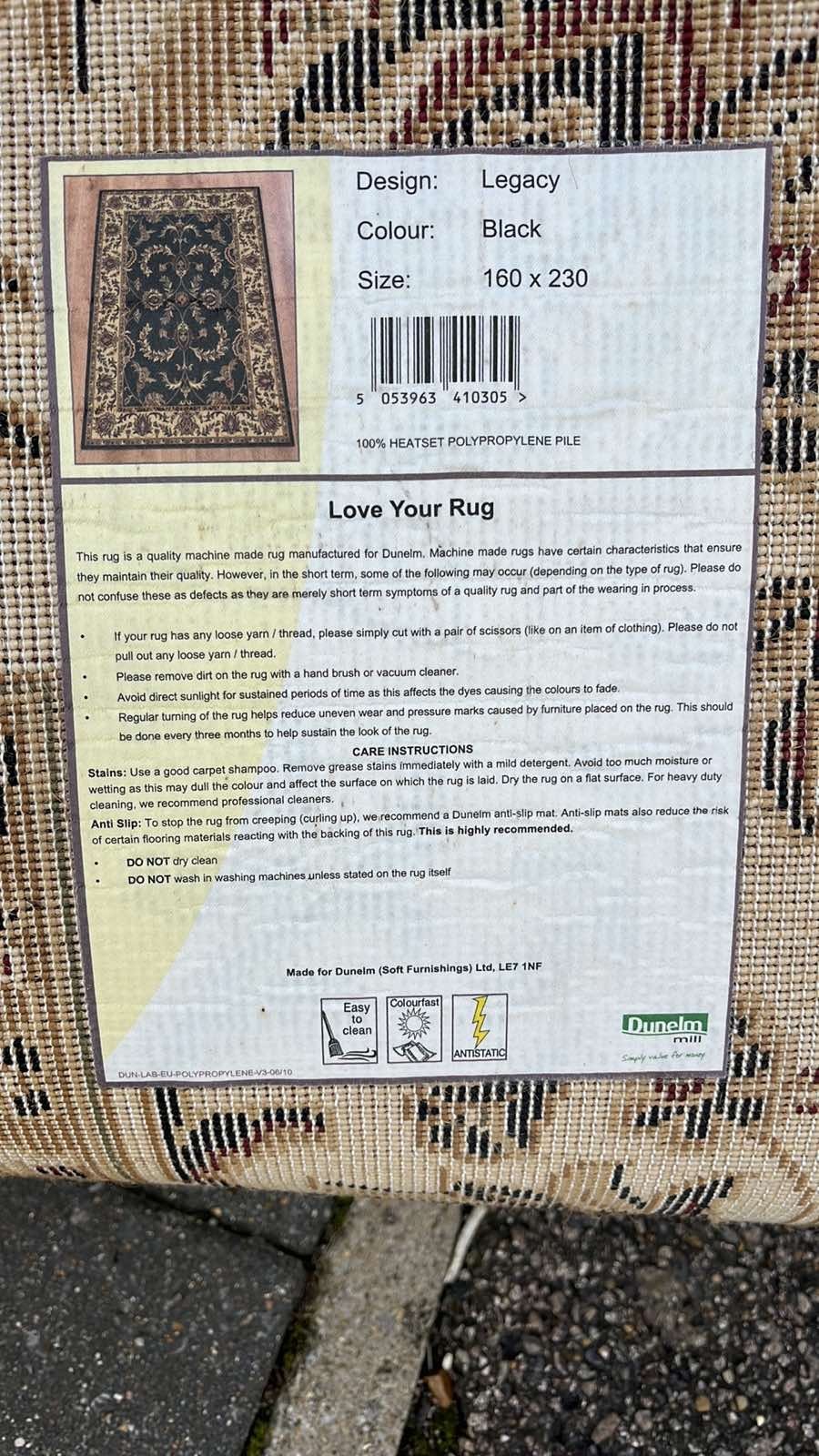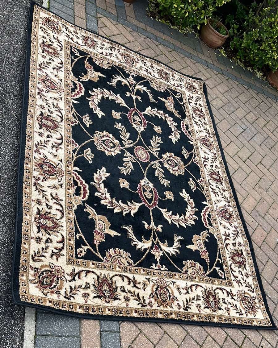 LARGE BLACK OVER FLOOR RUG 7 X 4 ft