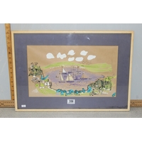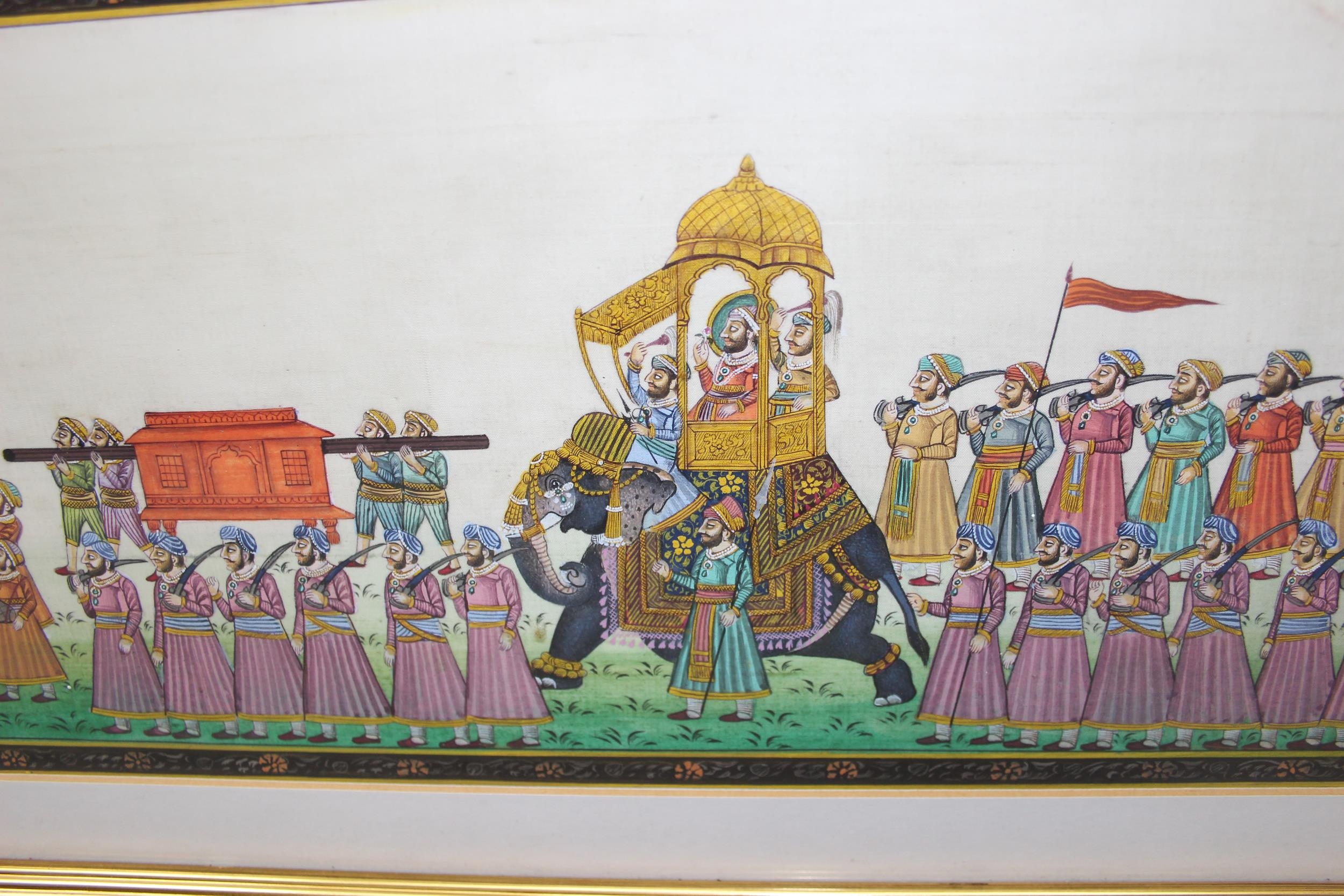 Indian Mughal style painting on fabric of a Howdah procession