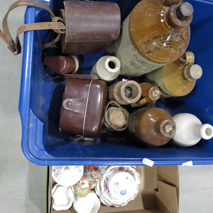 Eight stoneware jars, an Ilford Sportsman camera and a Bell & Howell cine camera. (10)