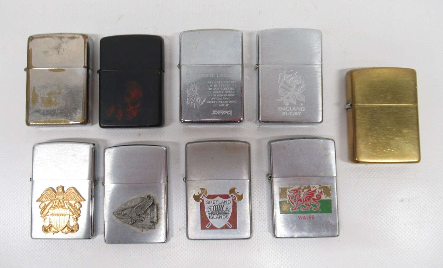 Zippo 'Statue of Liberty' lighter and eight other Zippo lighters