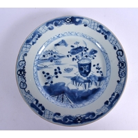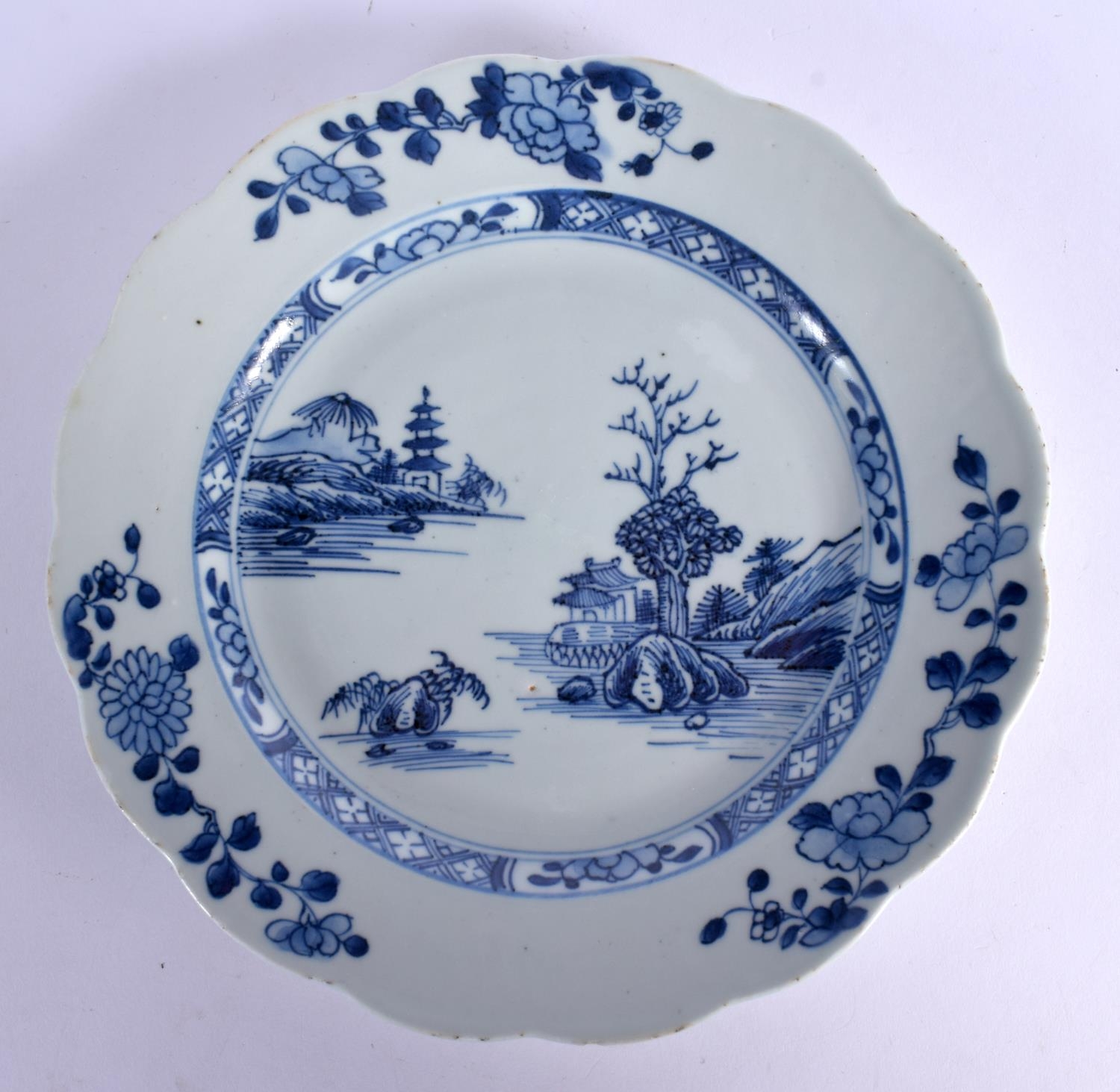 AN 18TH CENTURY CHINESE BLUE AND WHITE PORCELAIN PLATE Qianlong. 21.5 cm wide.