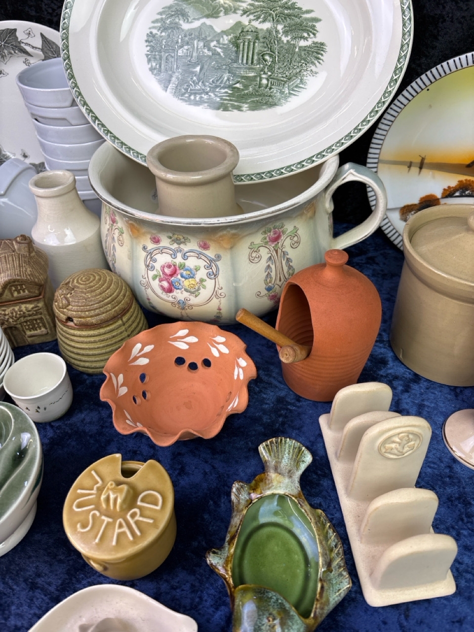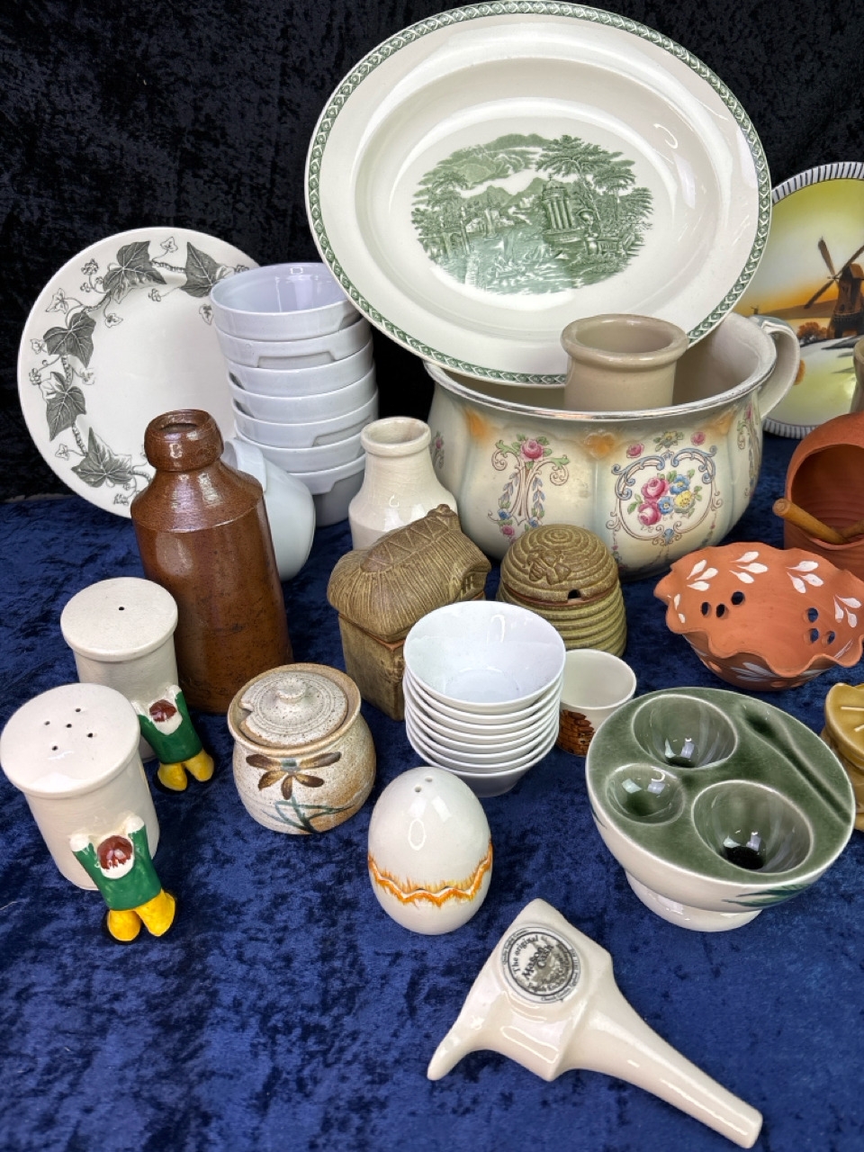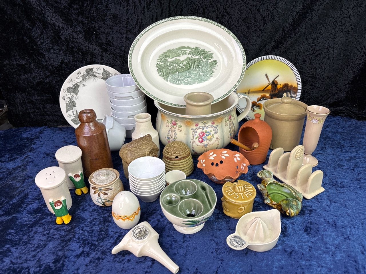 Large box mixed ceramics and earthenware inc Mason Cash pie funnel,
