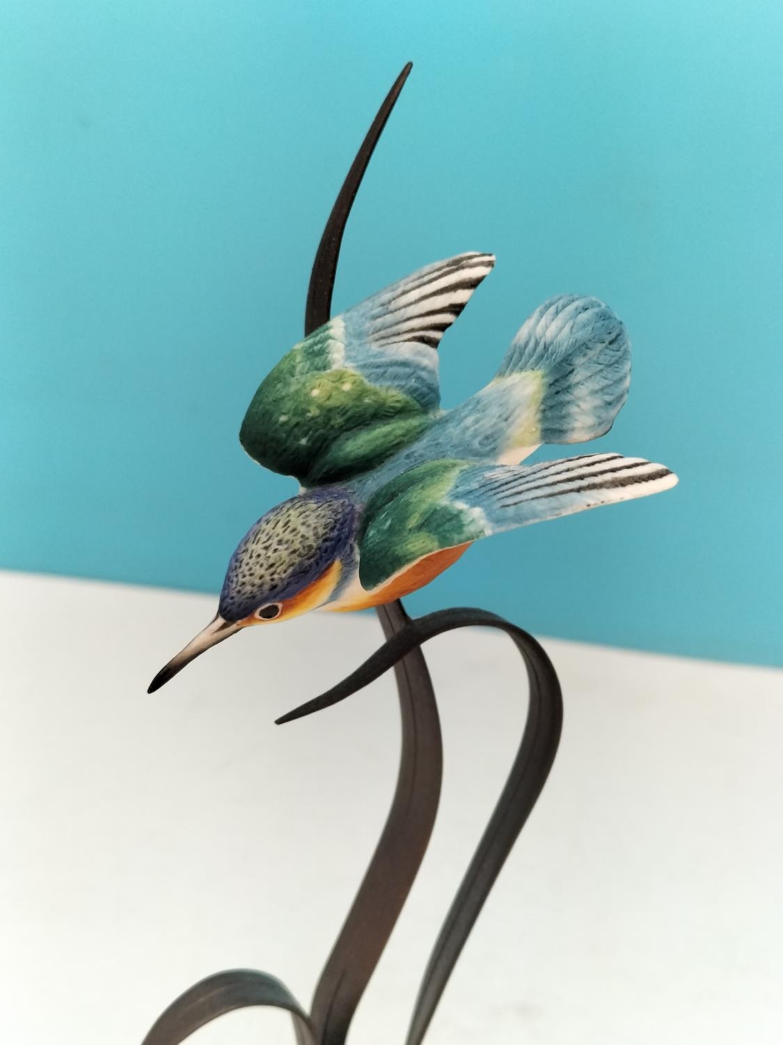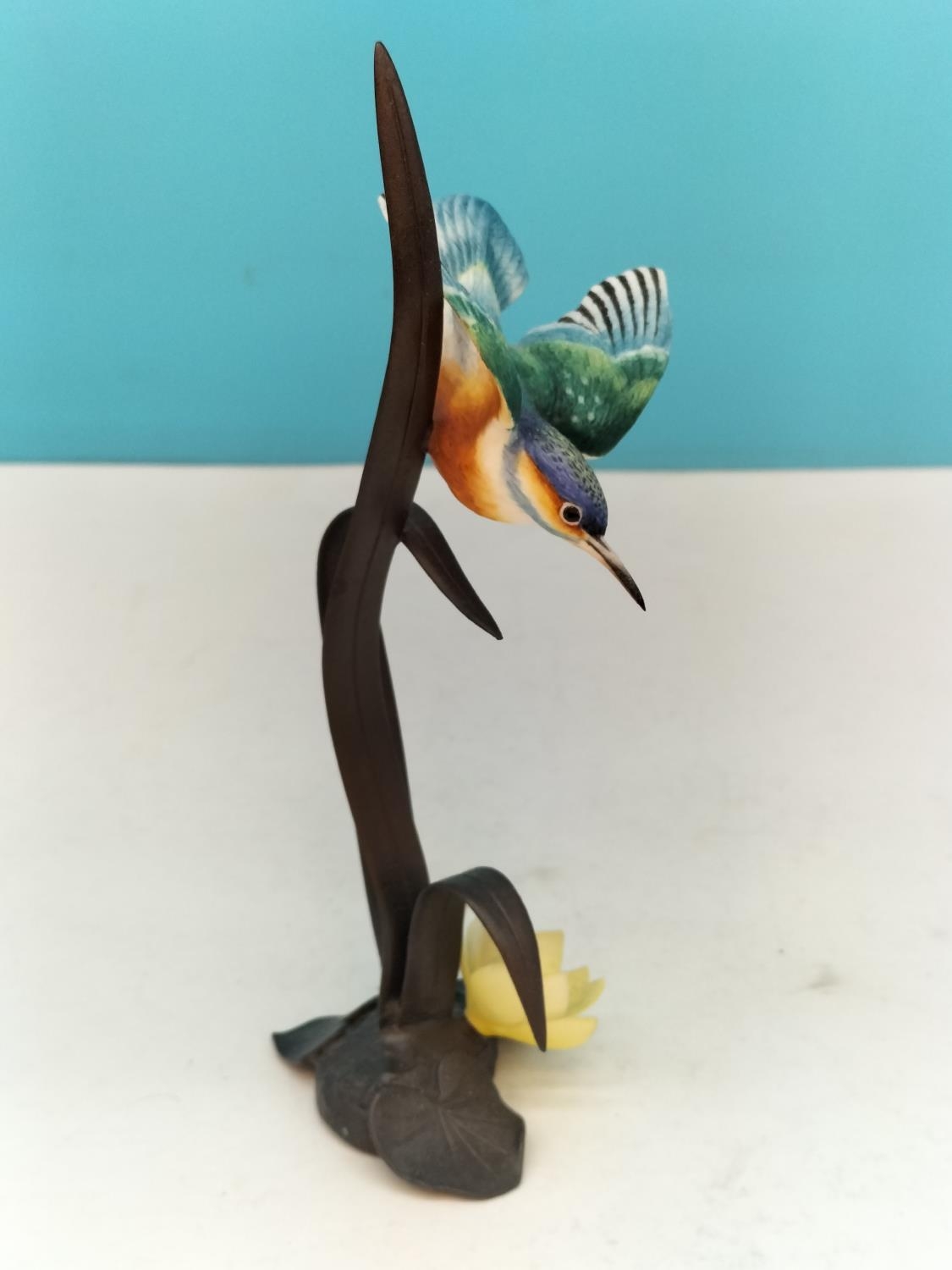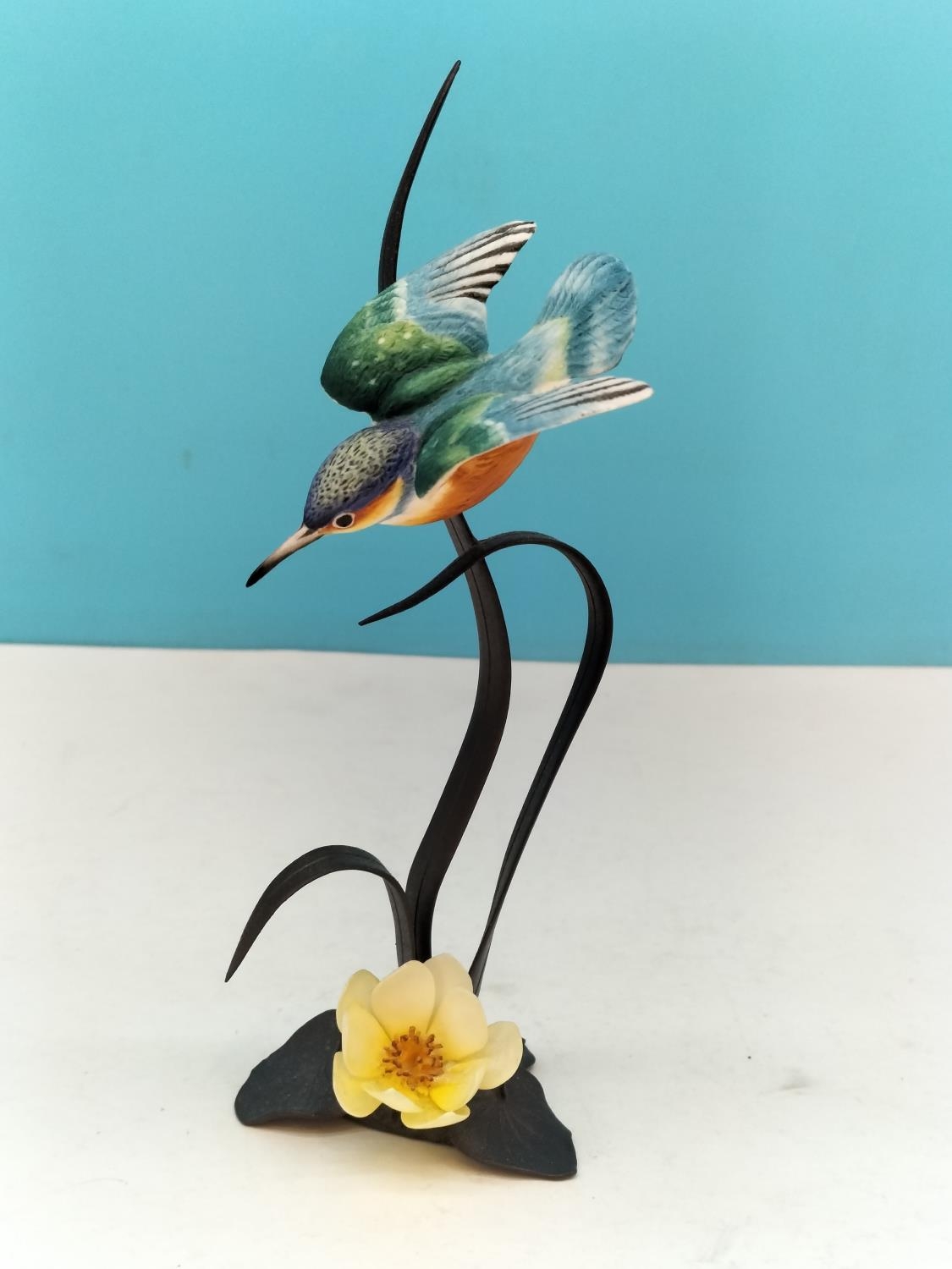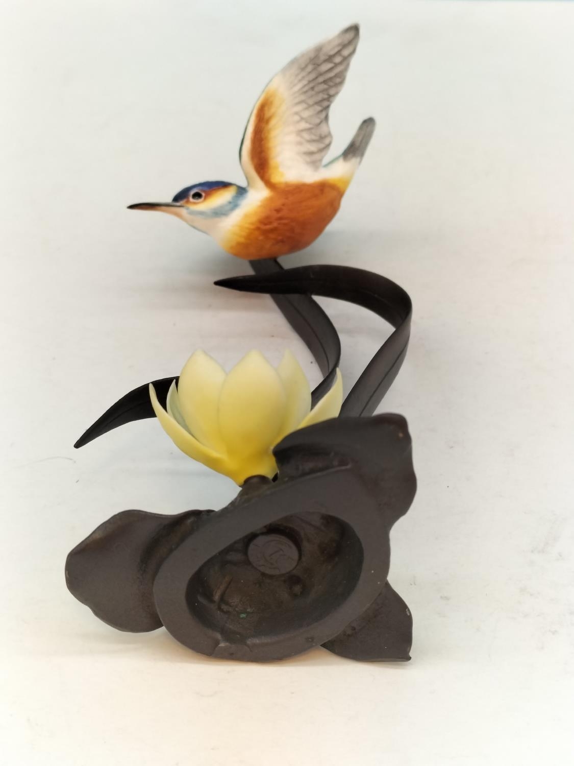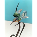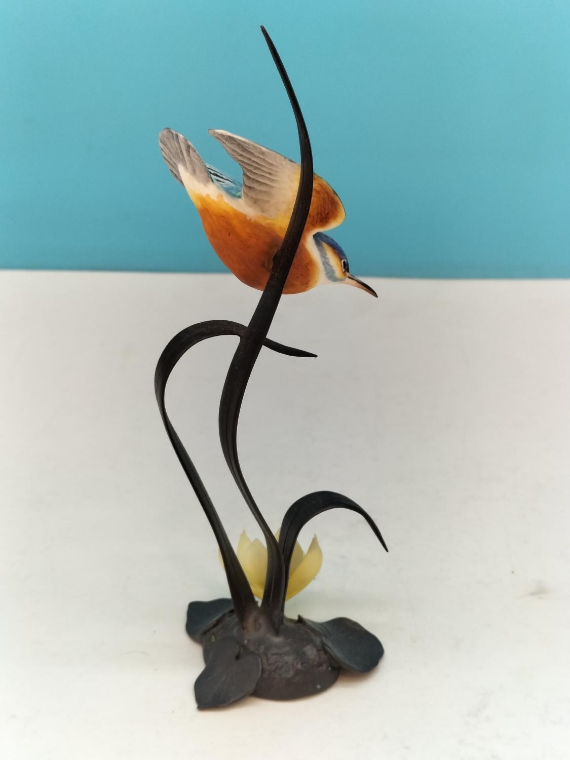 Royal Worcester China Figurine of a Kingfisher on Cast Metal Floral Stand. 17cm High.