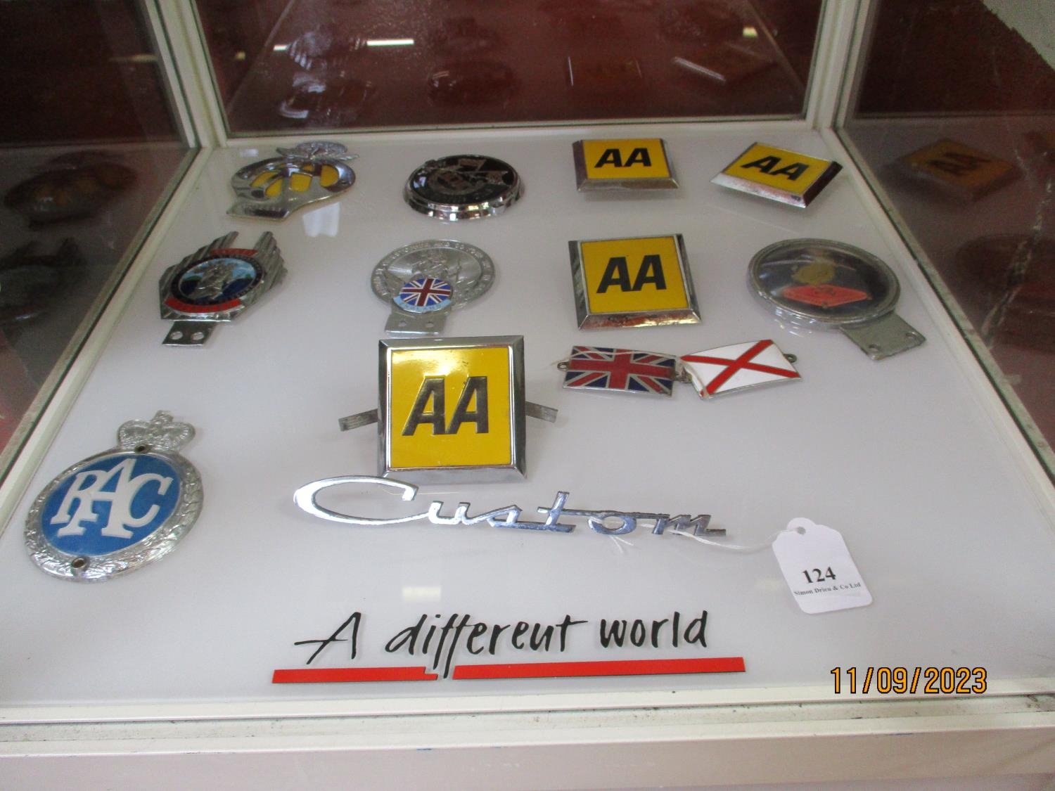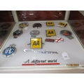 A collection of vintage AA, RAC and other car grille badges