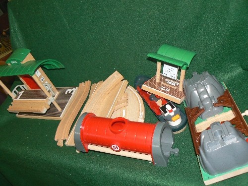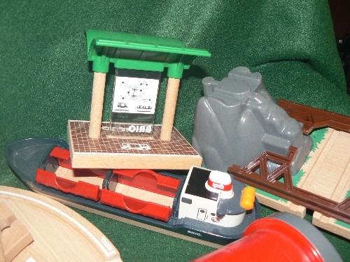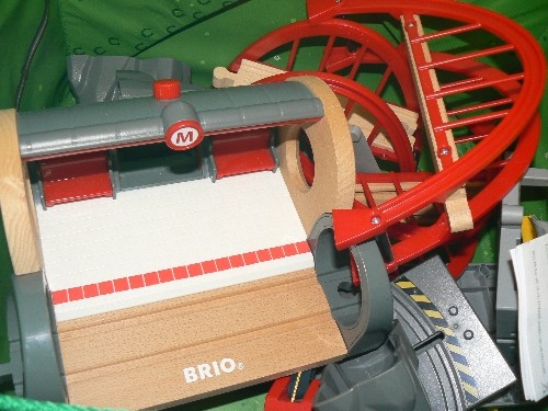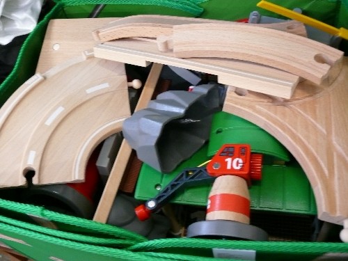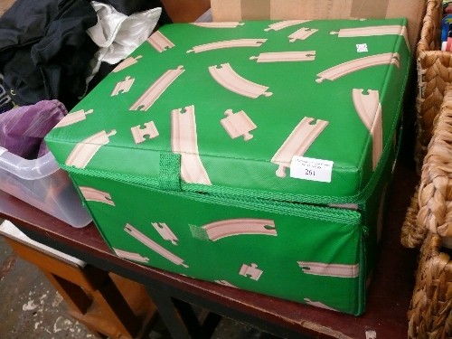 LARGE STORAGE BOX WITH CONTENTS OF BRIO TRAIN TRACK AND ACCESSORIES, STORAGE BOX FOLDS OUT INTO A PLAYMAT.