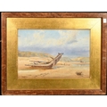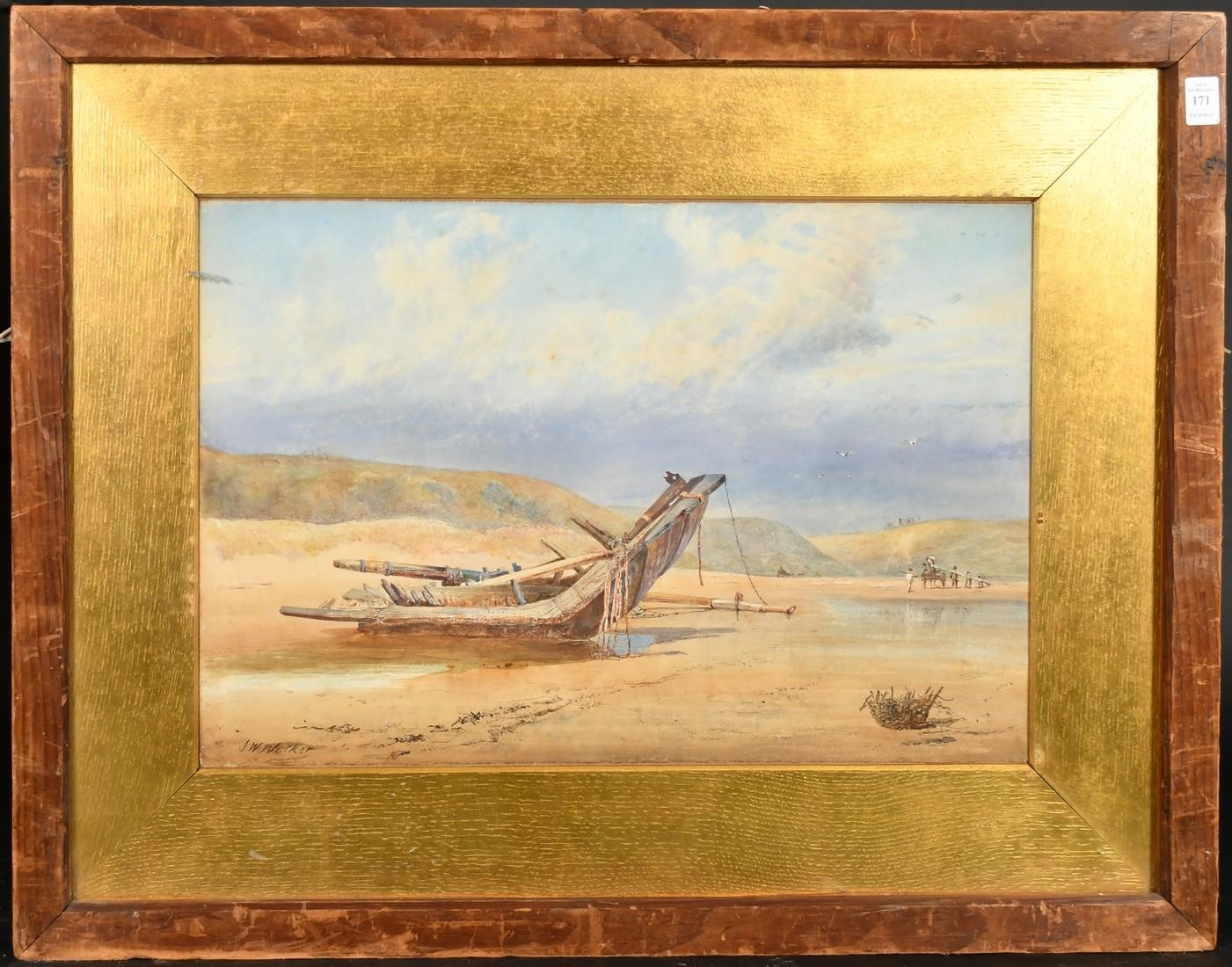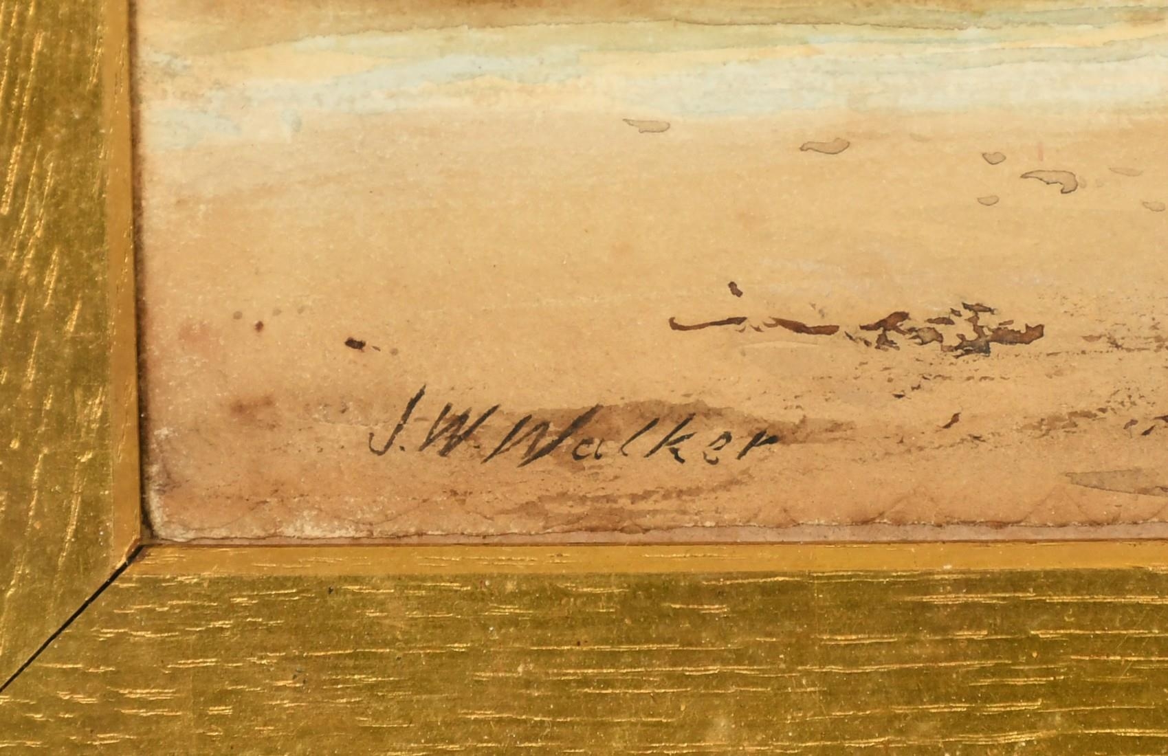 J.W. Walker, A piece of wreckage on the shore, figures with a horse and cart beyond, watercolour, signed, 14.5" x 21.5", (37x55cm).