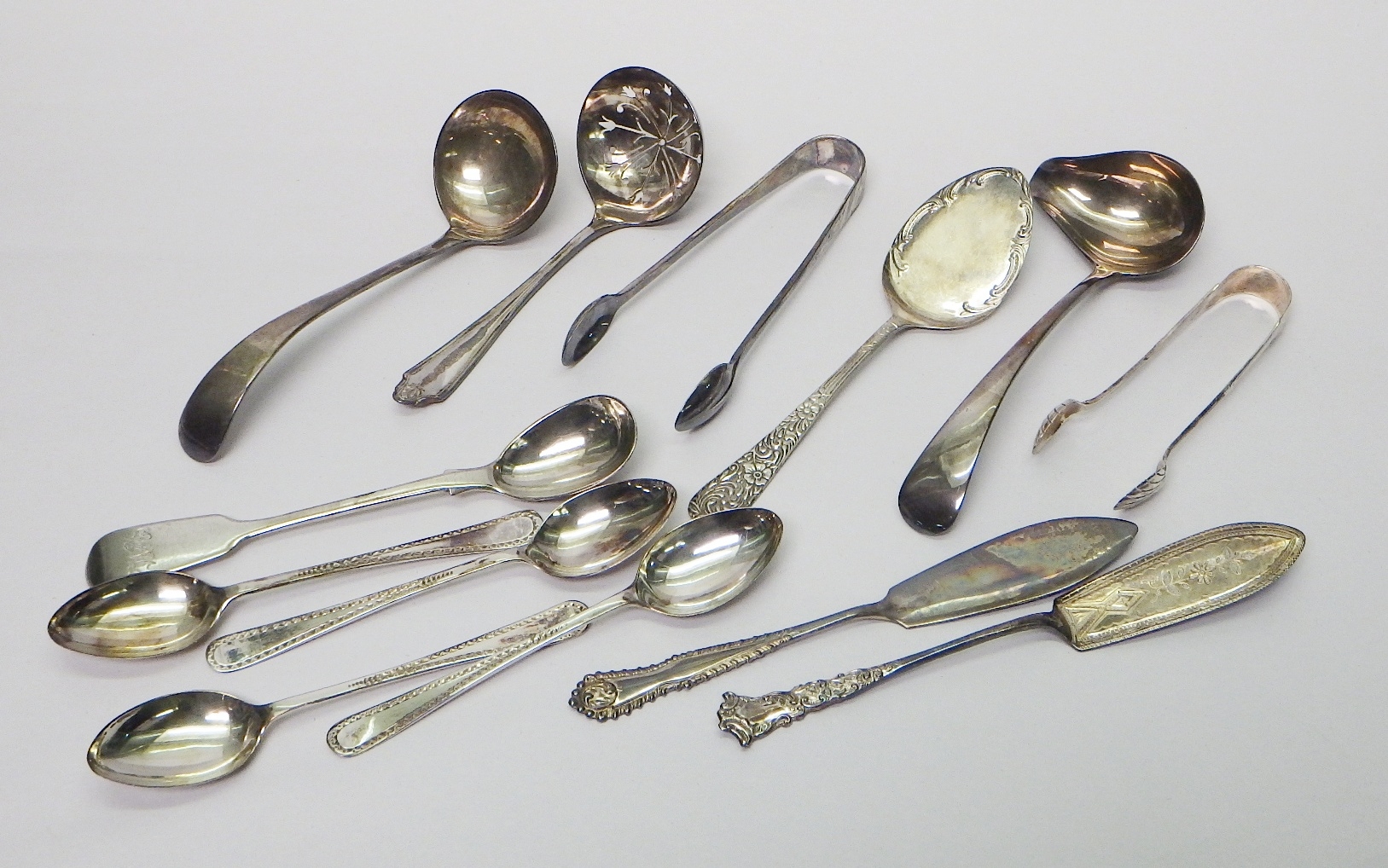 A qty of Edwardian and later silver flatwear incl ladles, sifter spoons and coffee spoons. 210g