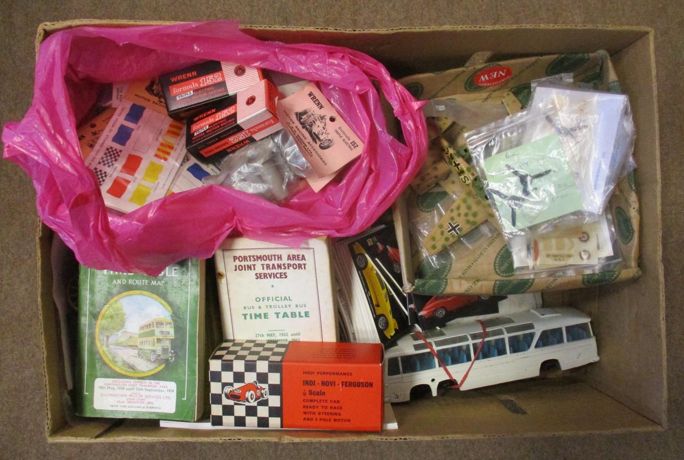 1960s onwards collection, generally excellent in good or better boxes (where present), with Scalex Boats Sea Sprite No. S515 and Lightning Runabout (without motorised propeller) No. S511, Mogul steel toys by Meccano Dump Truck No. 3201 and Army Truck (faded box and some corrosion) No. 3287, steel toys (4), The Dinky Collection (12), Matchbox Models of Yesteryear Nos. YS-38, YS-9 and YS-43, Wrenn Formula 152 spare parts and accessories, etc. Contents unchecked. Viewing recommended. Qty approx. 30+ (4B)