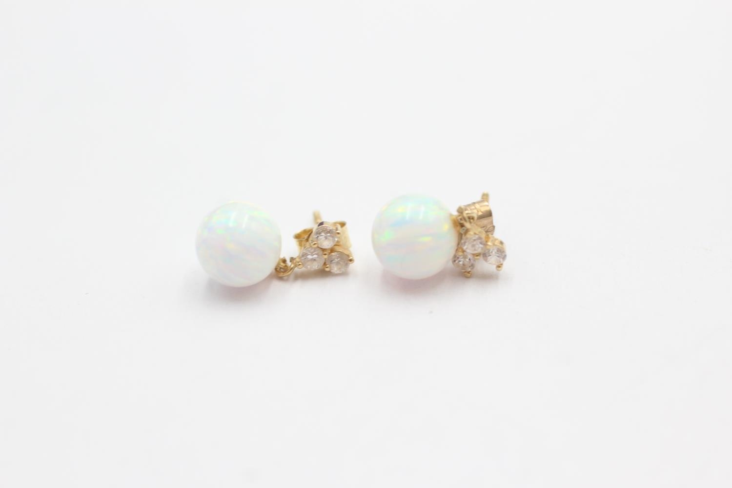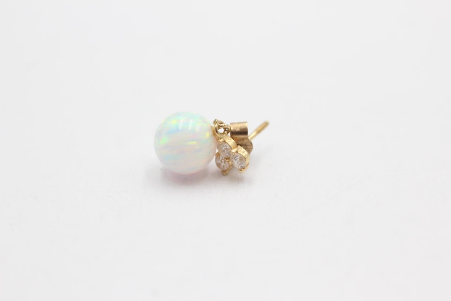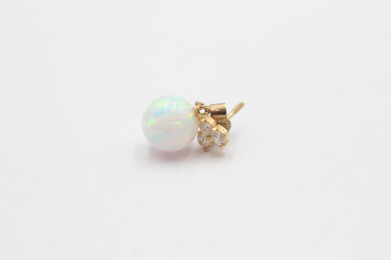 9ct gold synthethic opal & clear gemstone drop earrings (1.1g)