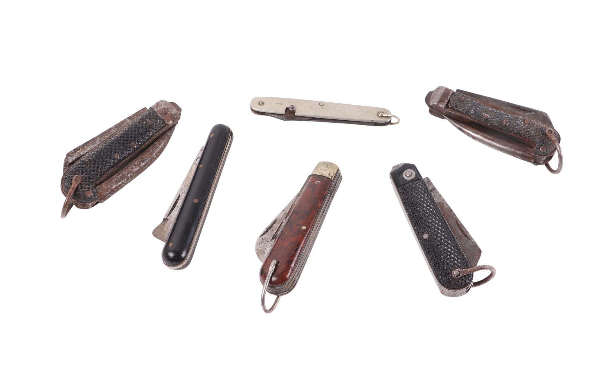 Three military jack knives, one dated 1942 and one 1940; together with three folding knives (6).