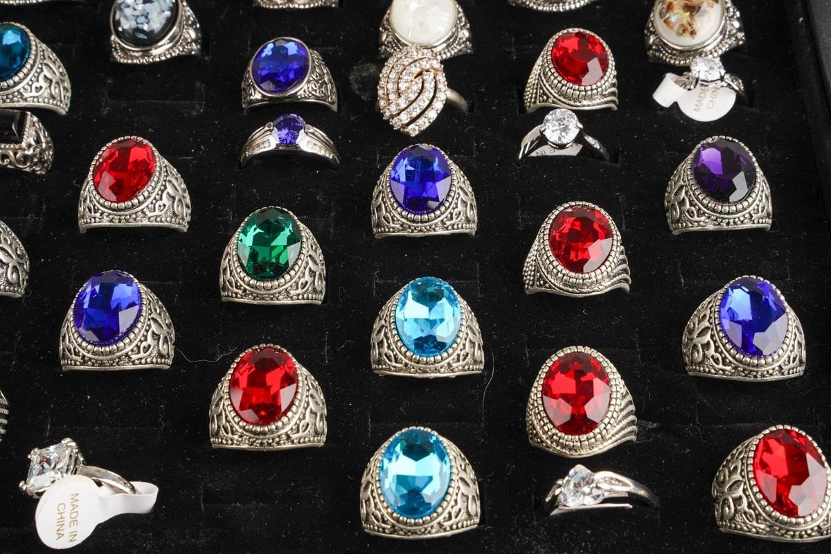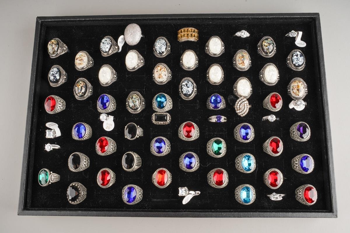 Large collection of dress rings, various sizes and metals - including stainless steel, set with CZ and glass, approx. 62 in total