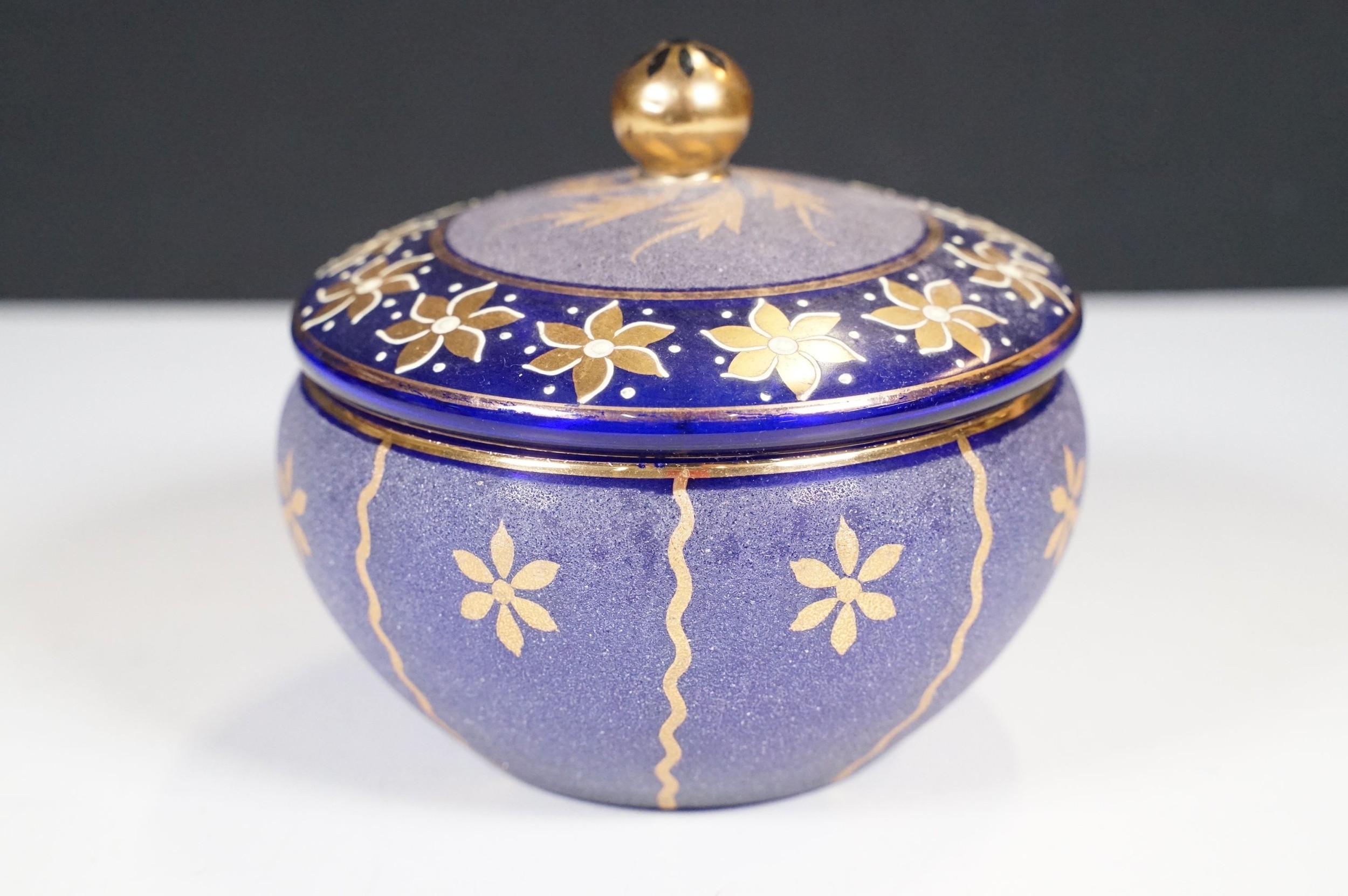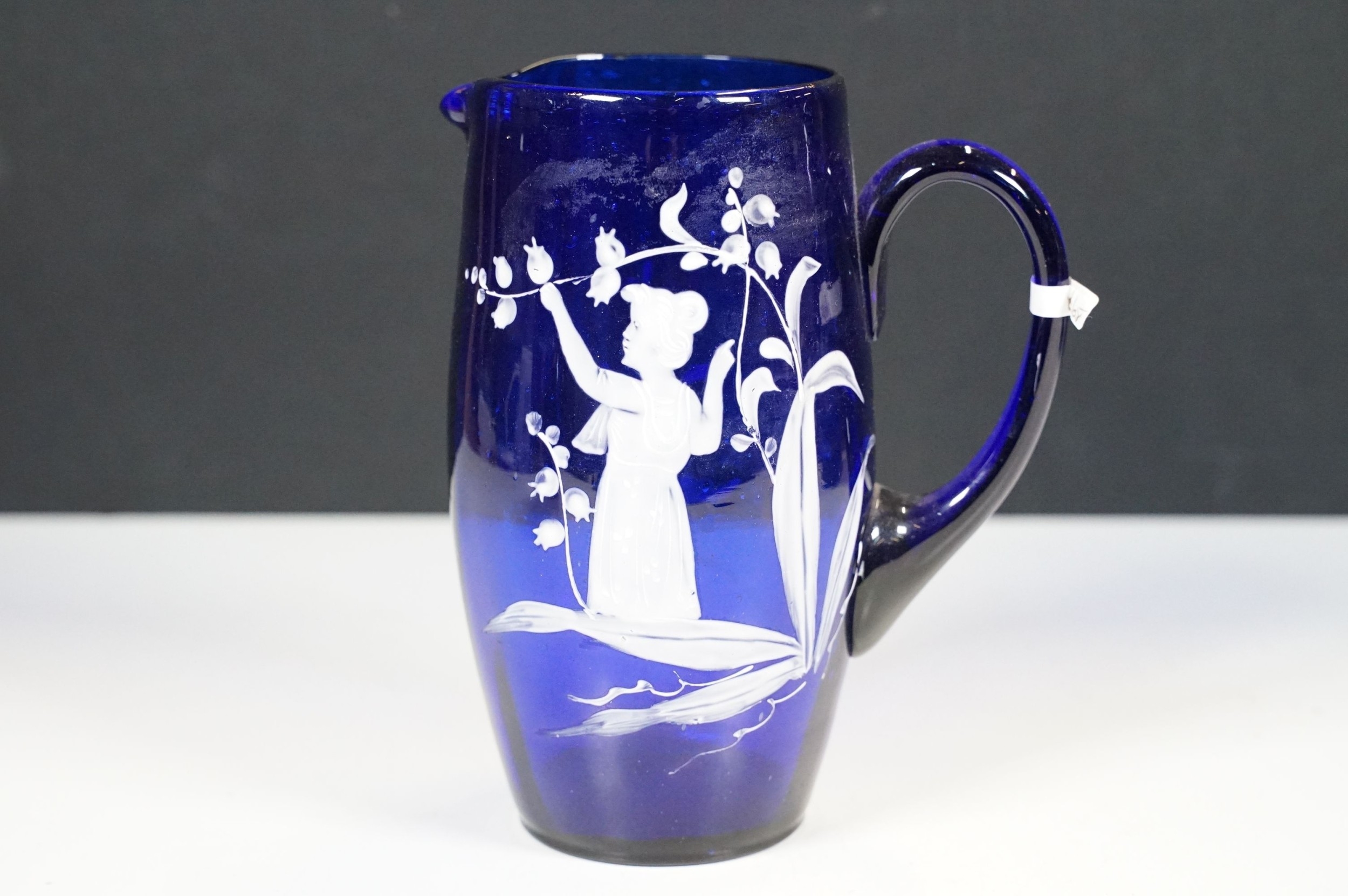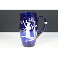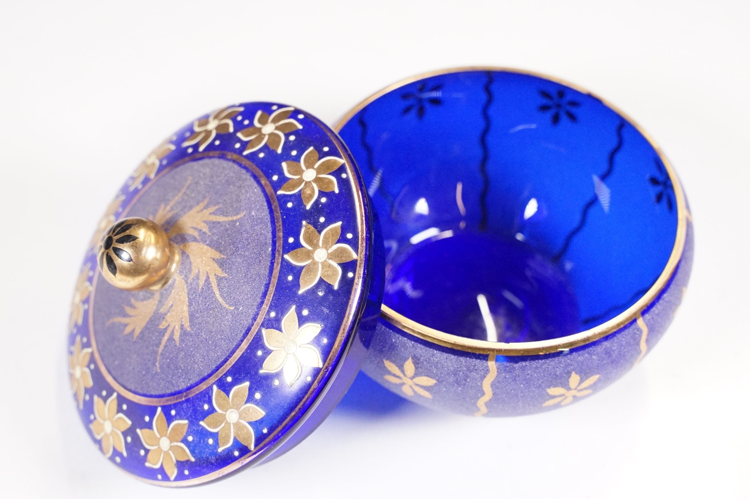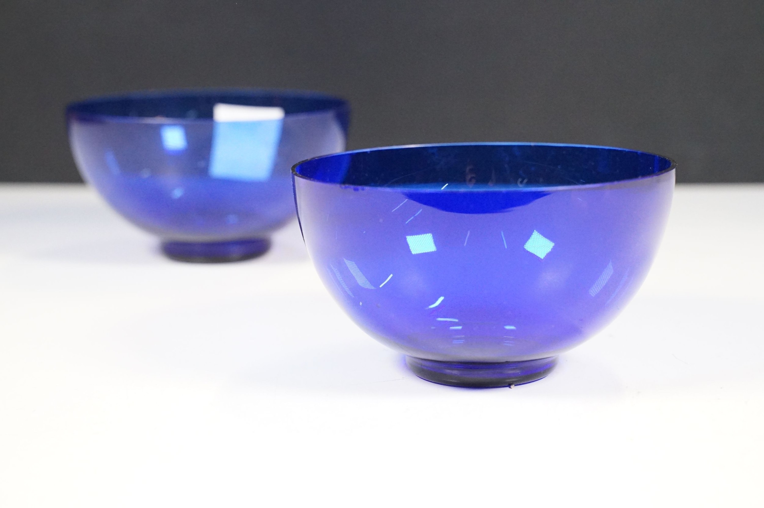 Selection of 19th Century and later Bristol blue glass to include wine glasses, jug, sugar bowl and gilt decorated frosted lidded jar, decanter and pair of vases, etc