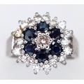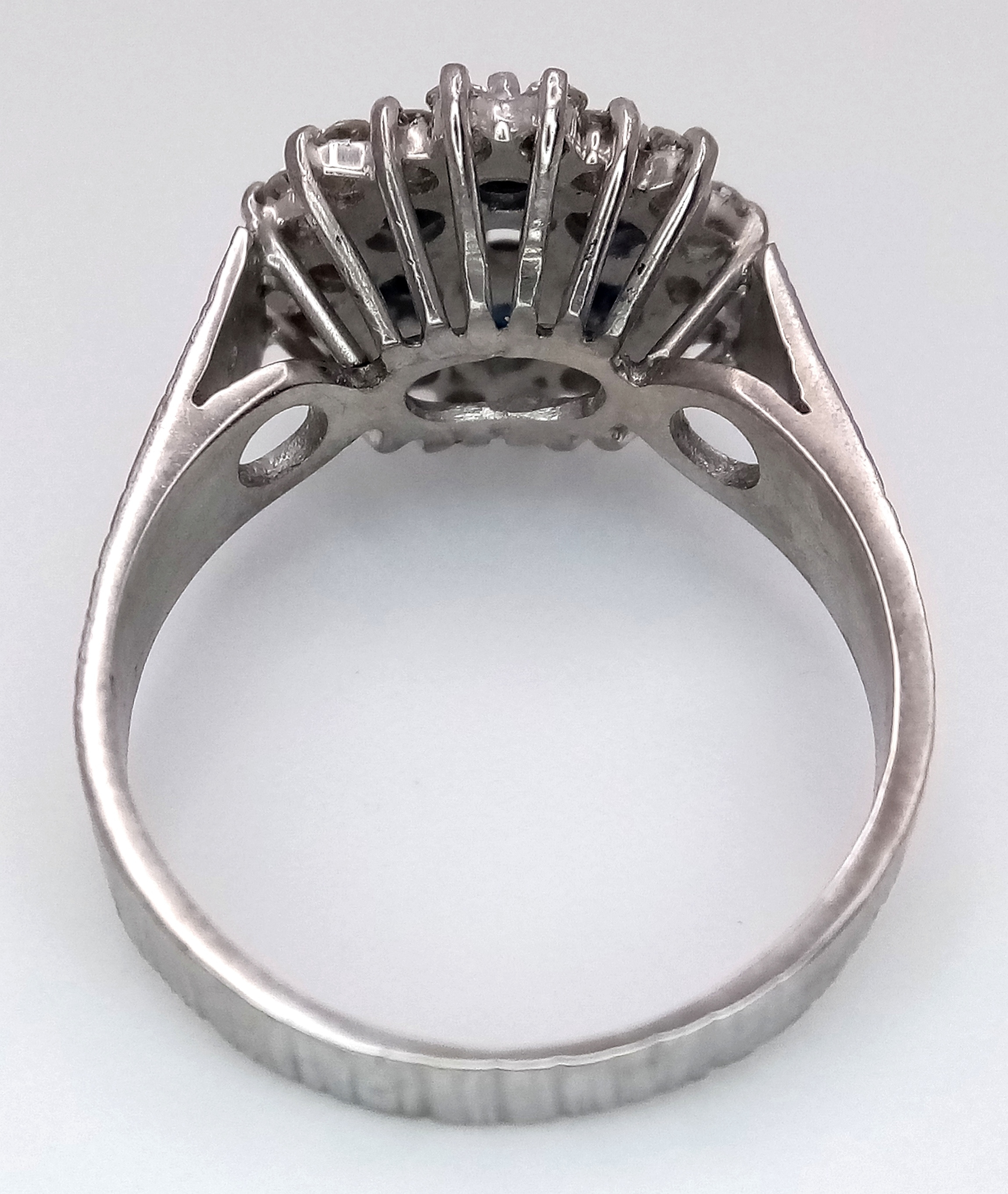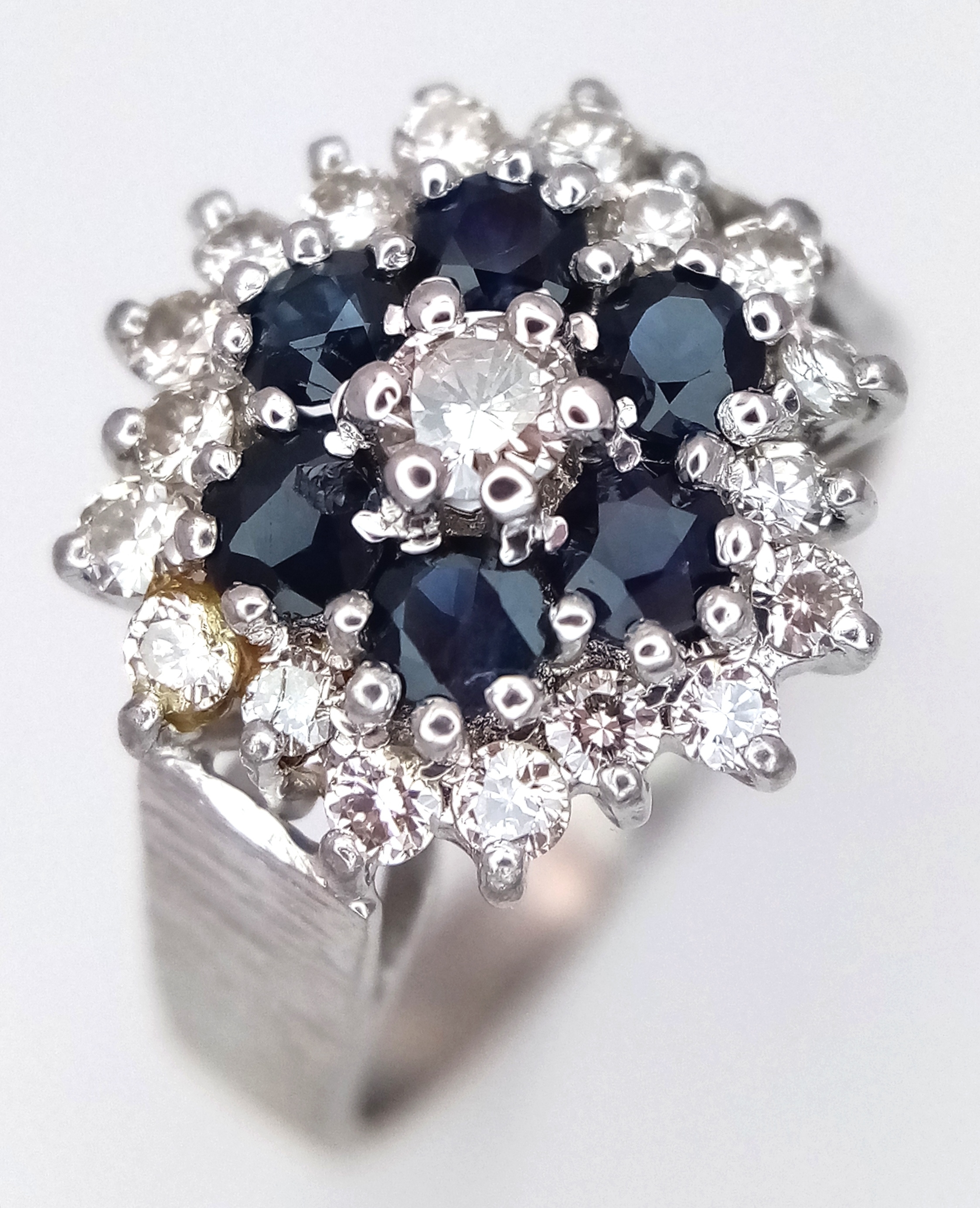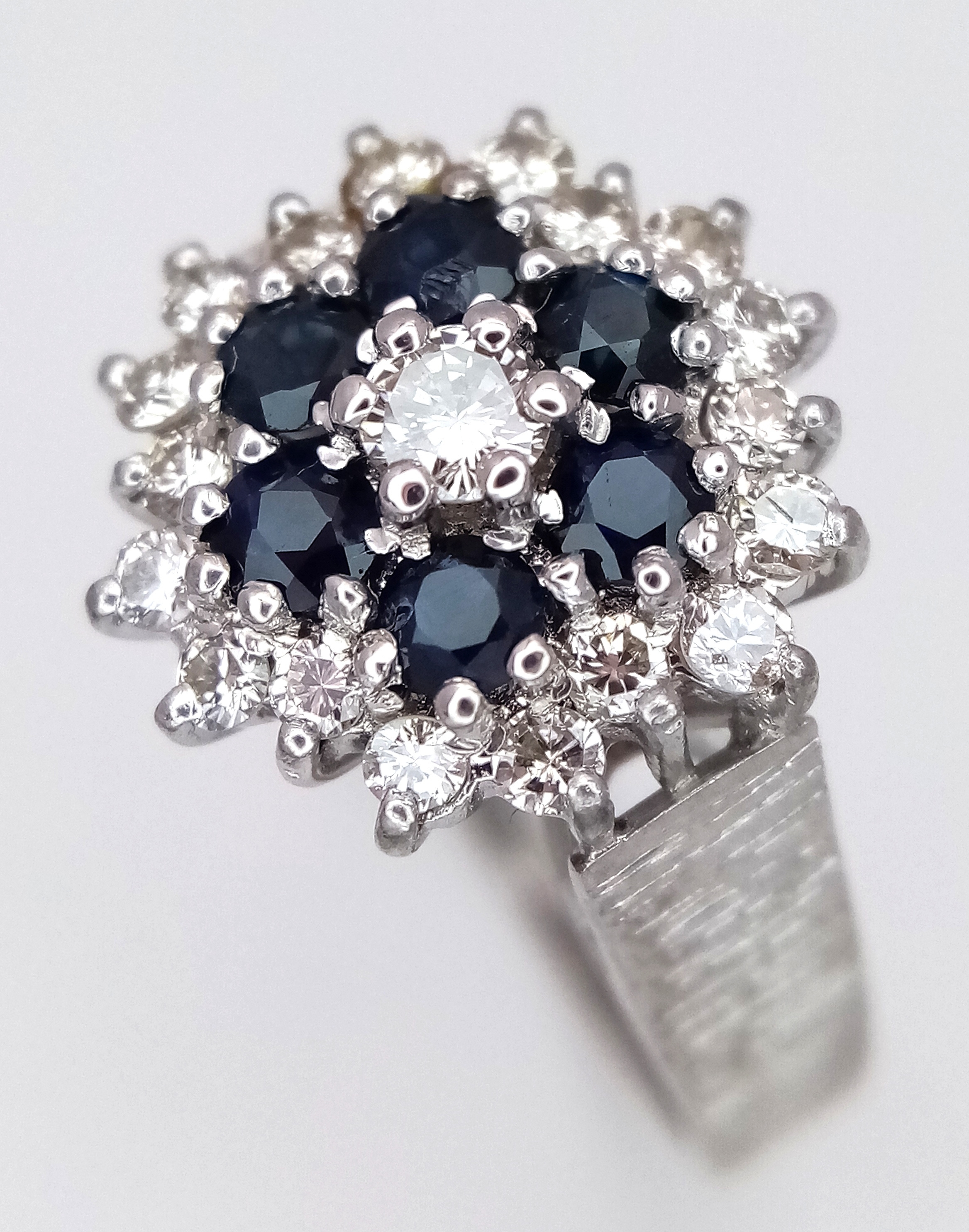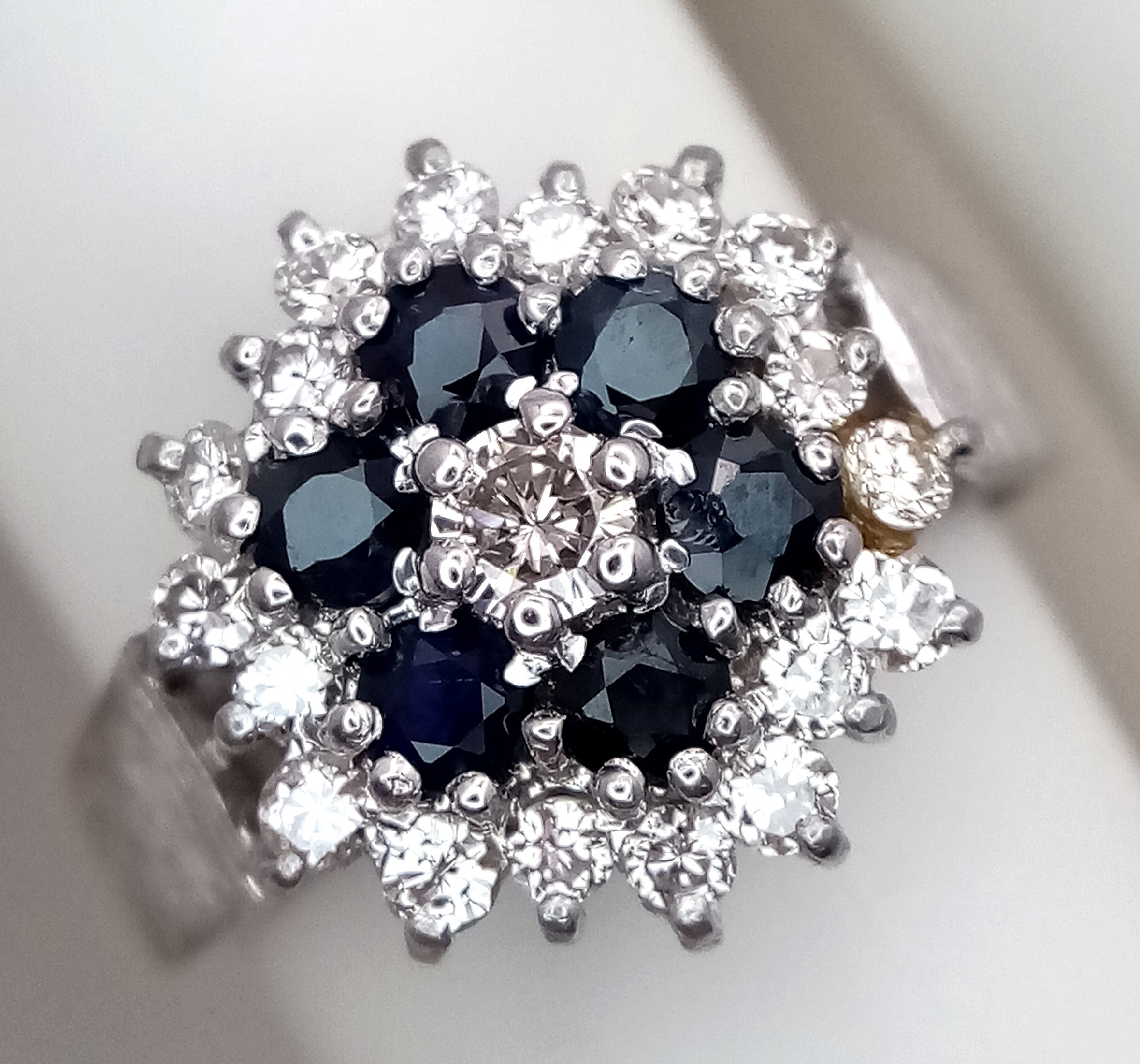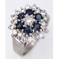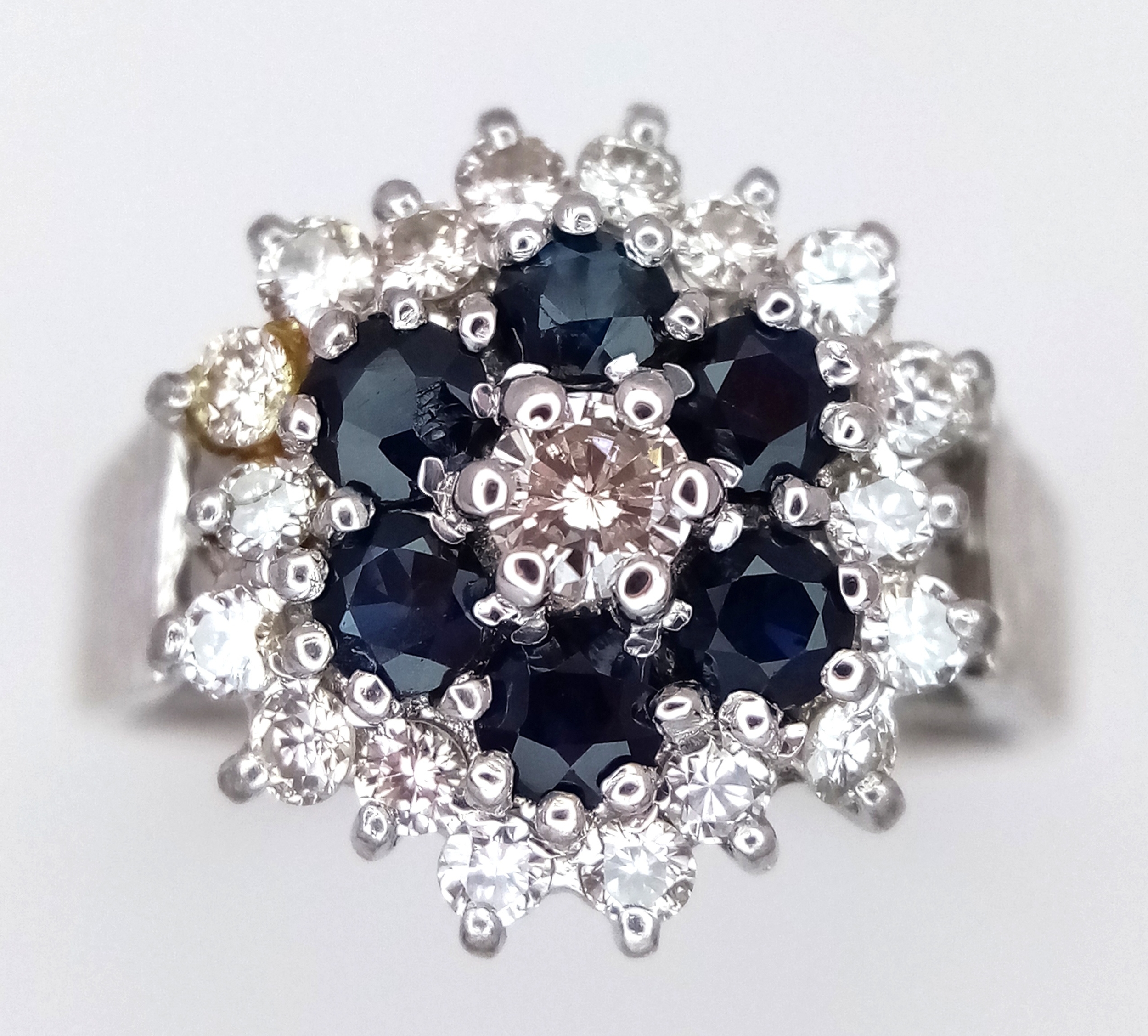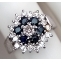 AN 18K WHITE GOLD VINTAGE DIAMOND AND SAPPHIRE RING. 5G. SIZE N. SPSA-3024.
