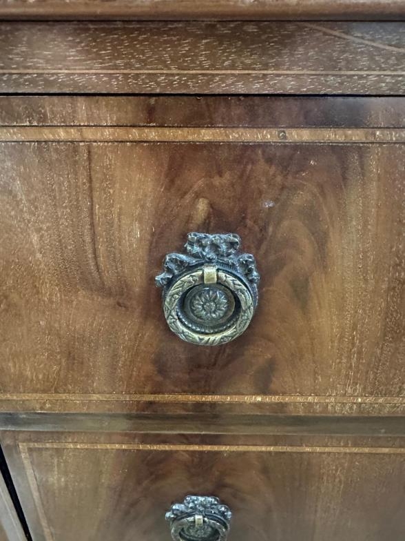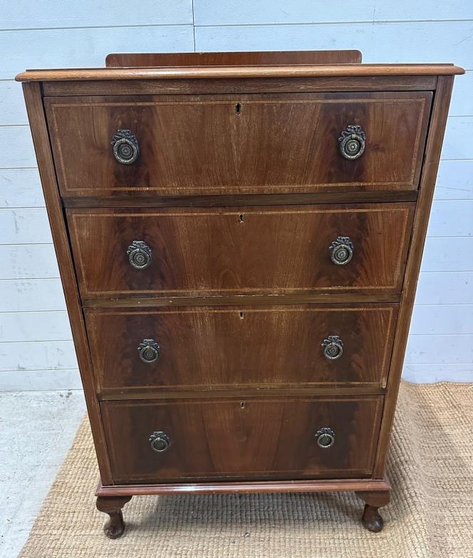 An Edwardian four drawer mahogany chest with string inlay on cabriole legs (H118cm W73cm D57cm)