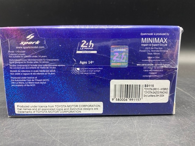 Spark (Minimax) 1:43 scale Le Mans S9115 TOYOTA GR010 - HYBRID TOYOTA GAZOO RACING 2nd Le Mans 24H 2024(200g)