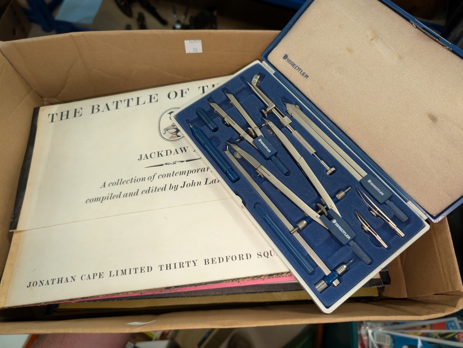 A cased set of STAEDTLER drawing instruments; a collection of 11 "Jackdaw" historical educational folders with facsimile documents.