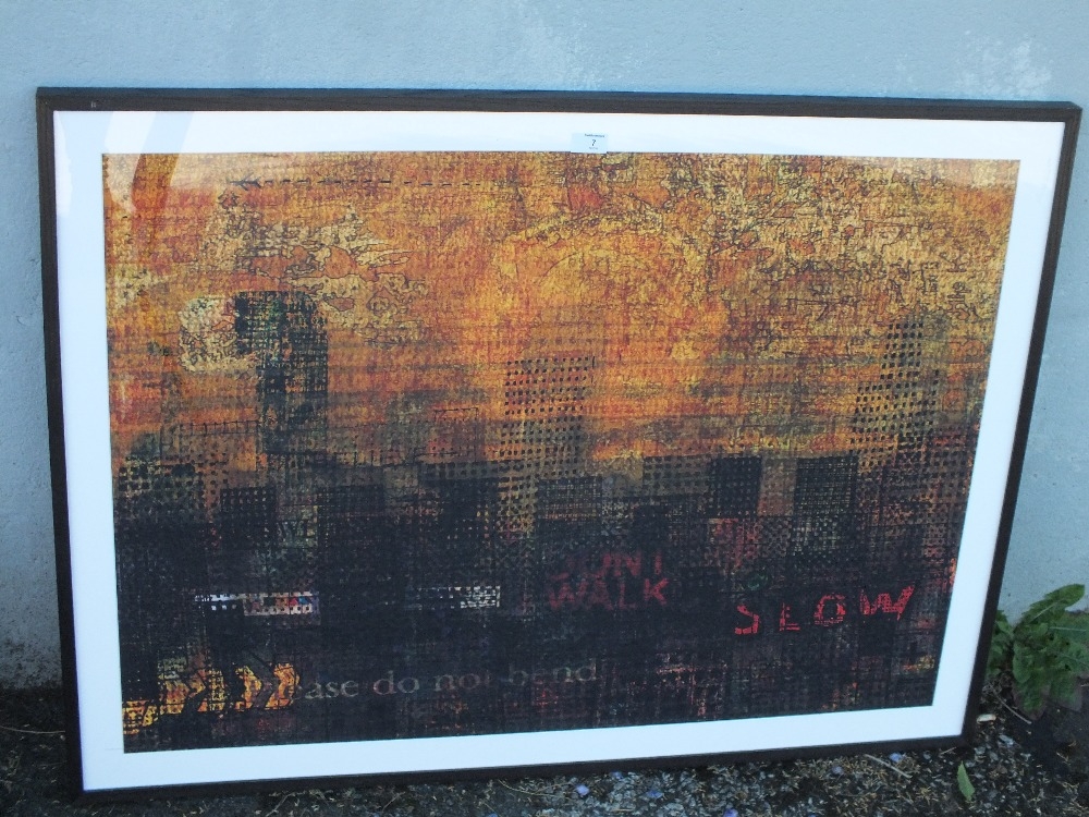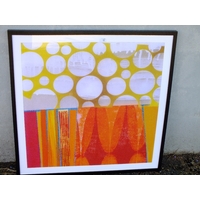 KING & McGAW FRAMED AND GLAZED MODERN PRINT, GOLD BY ANDY MERCER - OVERALL 84.5 CM X 112 CM