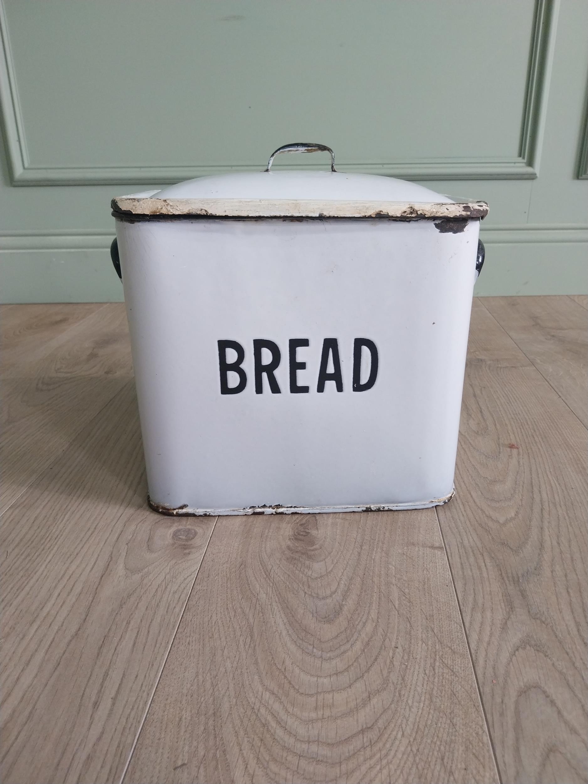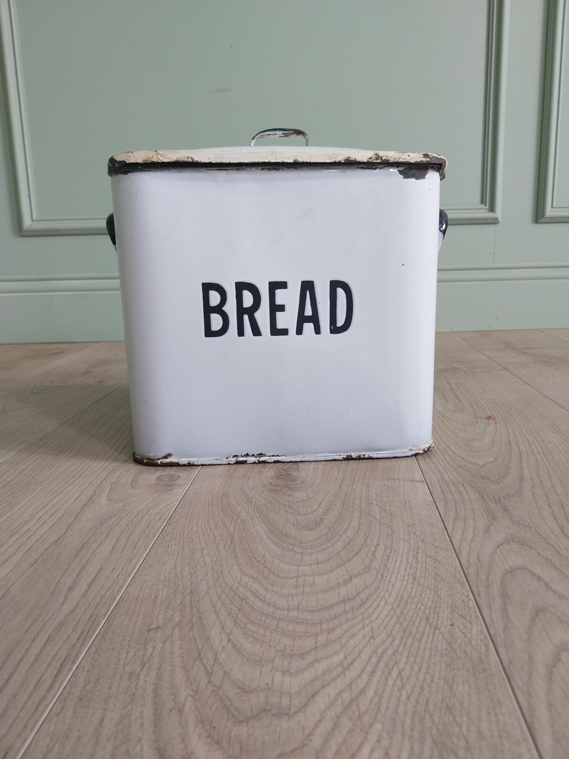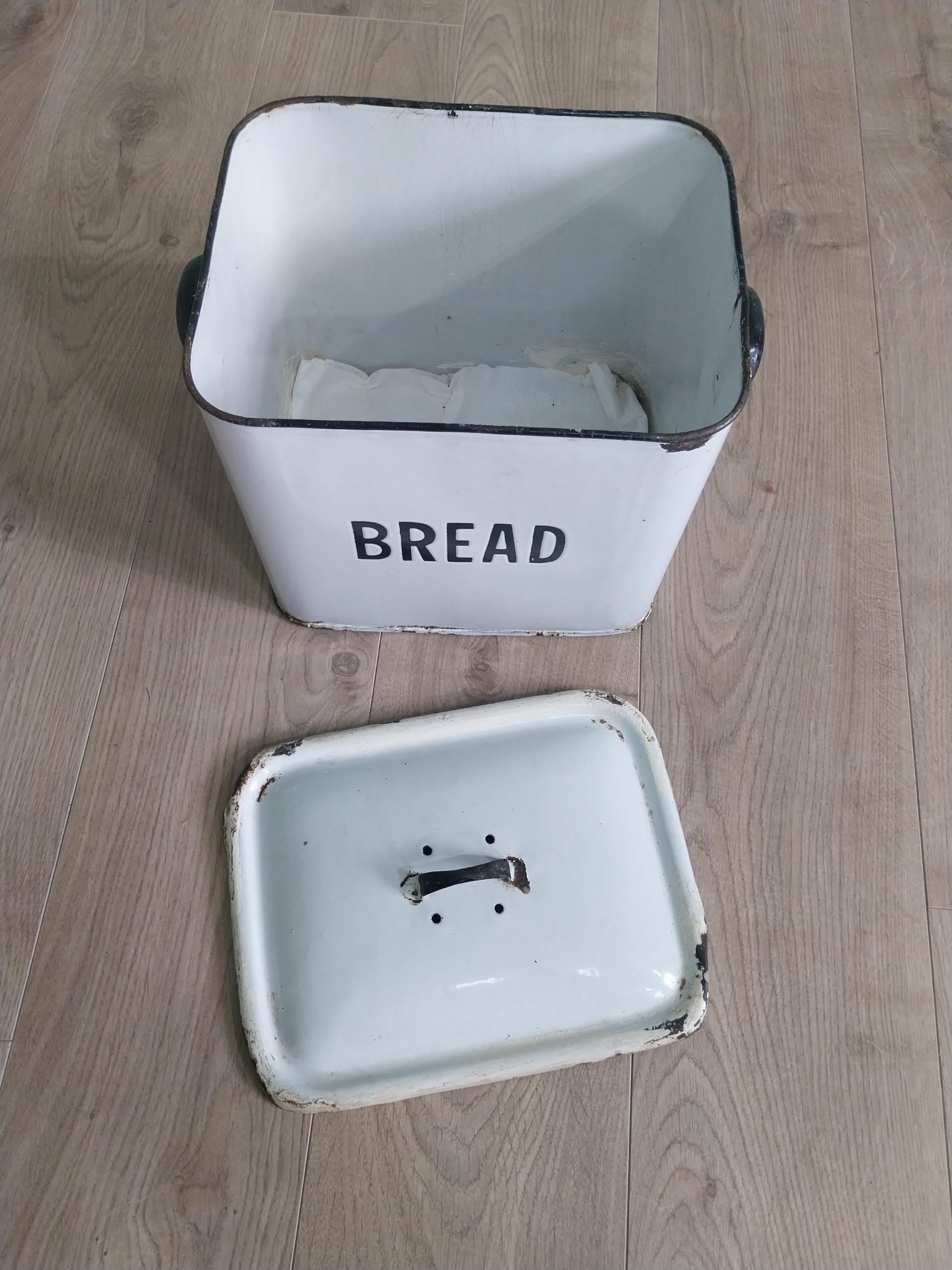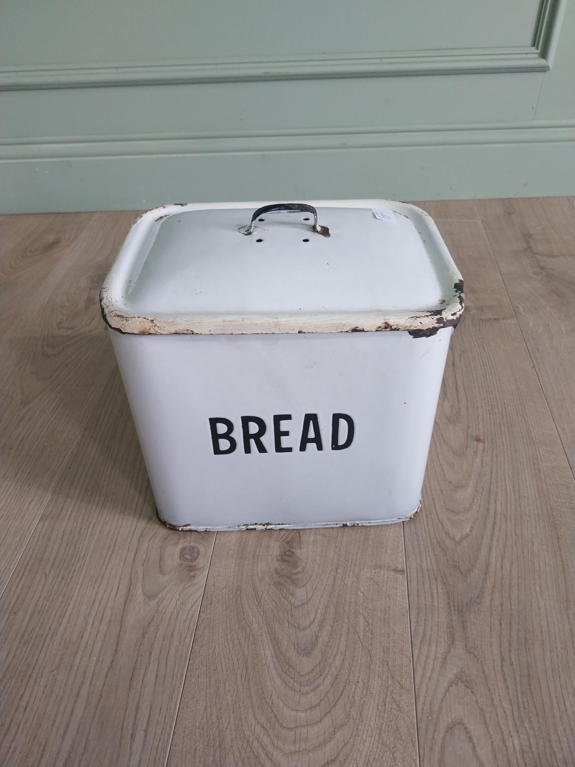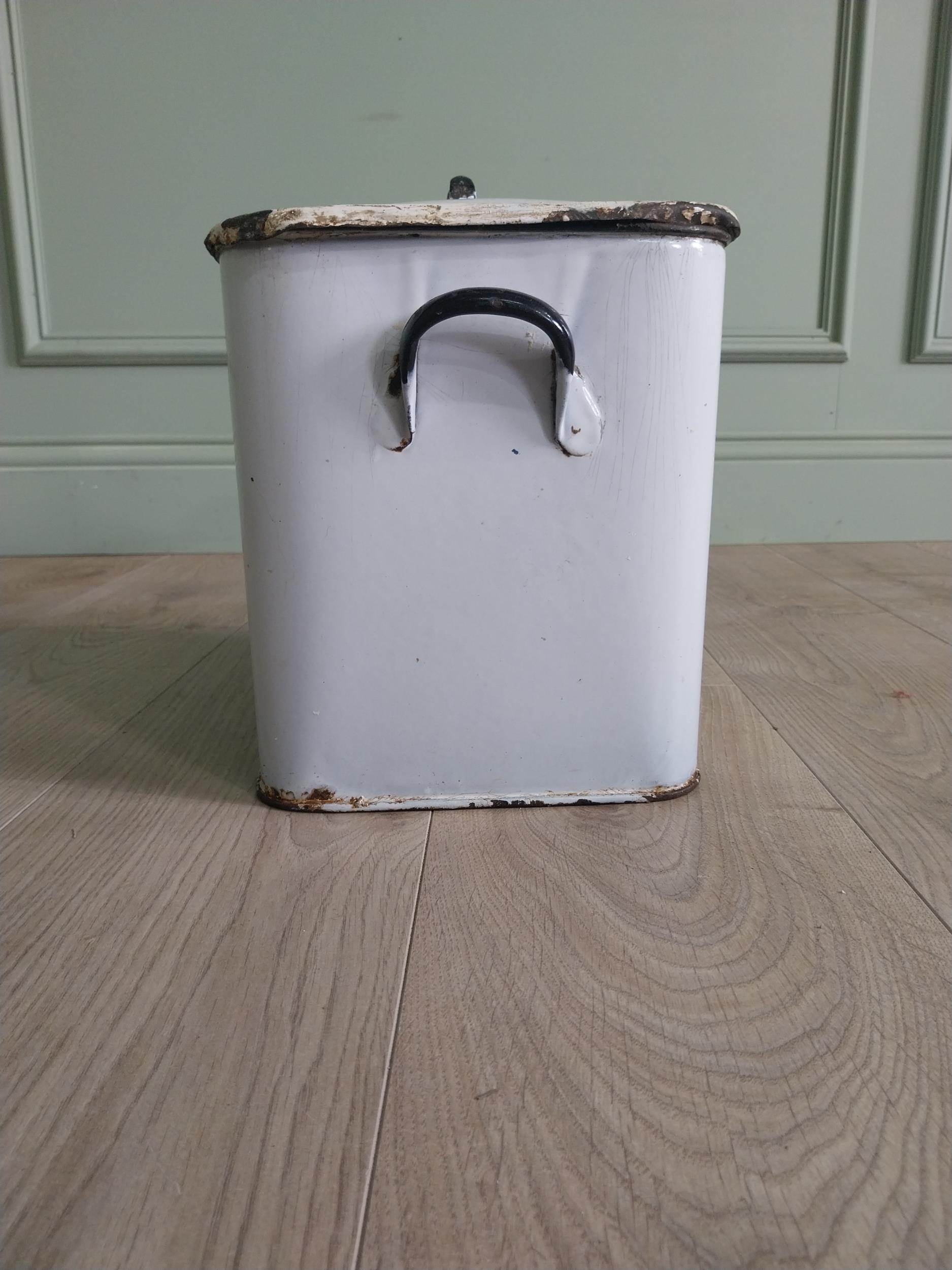 Early 20th C. enamel bread bin {30 cm H x 31 cm W x 23 cm D}.