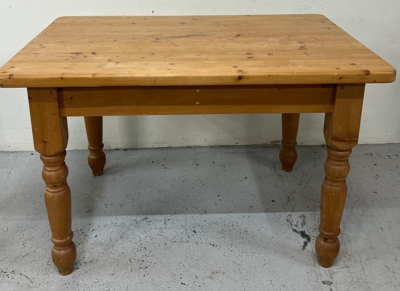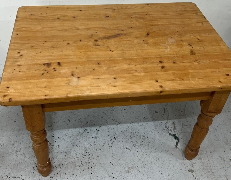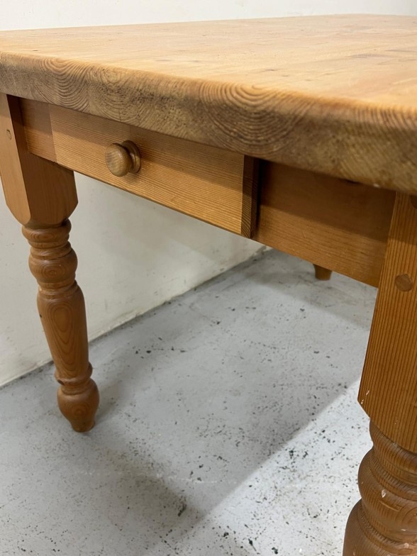 Pine farmhouse table with drawer to centre and chairs (122cm x 82cm x 78cm)