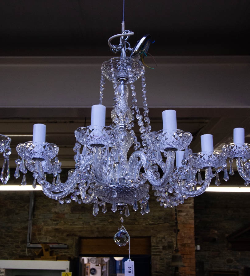 8 BRANCH CUT GLASS CHANDELIER 50W X 50H CM - POSSIBLY GALWAY