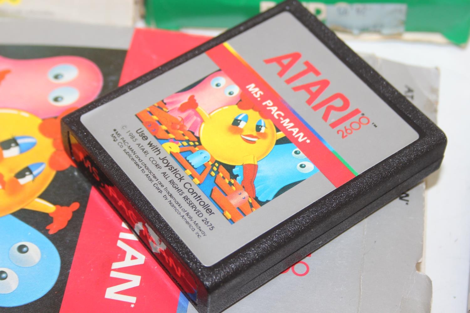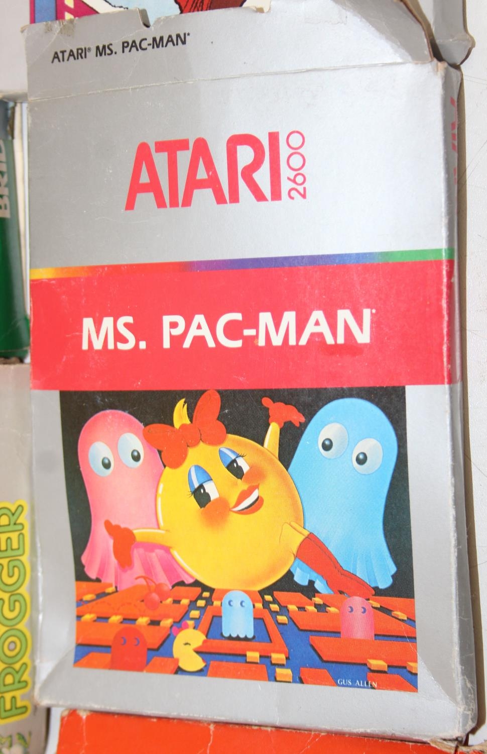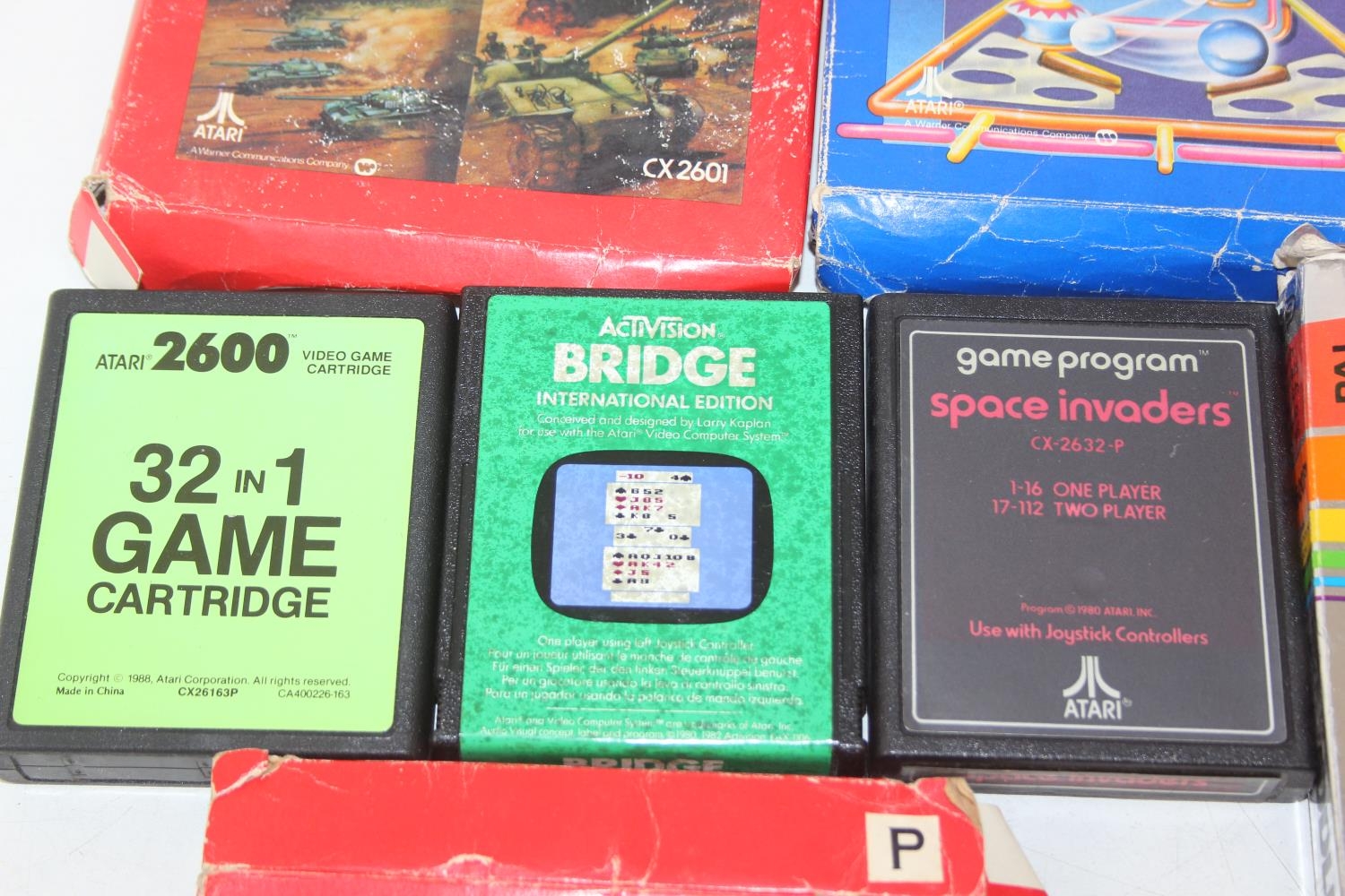 Atari 2600 video game console, boxed with original accessories with 11 boxed games to include Pac Man, Ms Pac Man, Casino 4 in 1, Frogger, Bridge, two copies of Combat 27 in 1, Riddle of the Sphinx, Crystal Castles, Video Pinball and super breakout and three unboxed to include bridge, Space Invaders and 32 in 1 games compendium