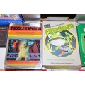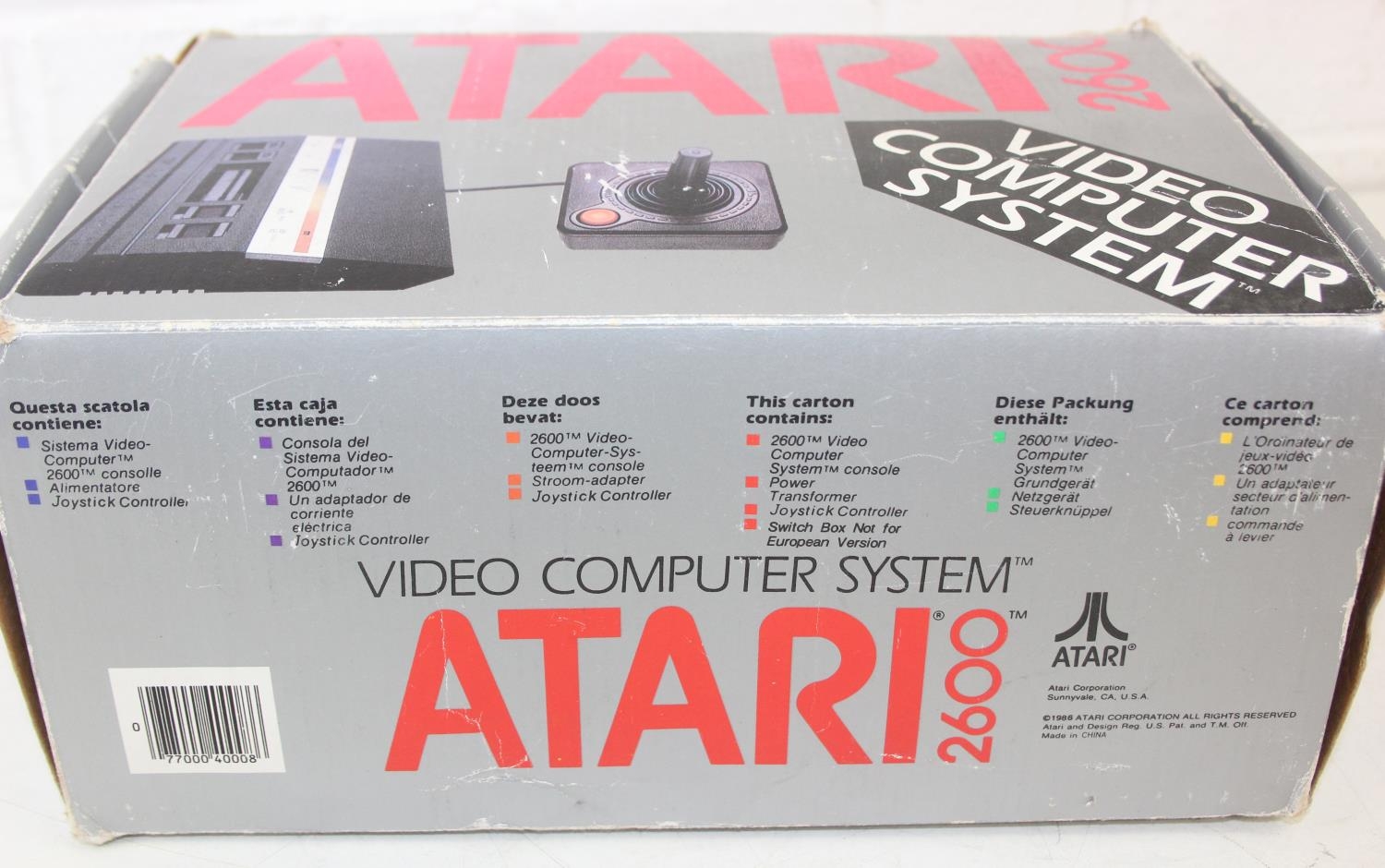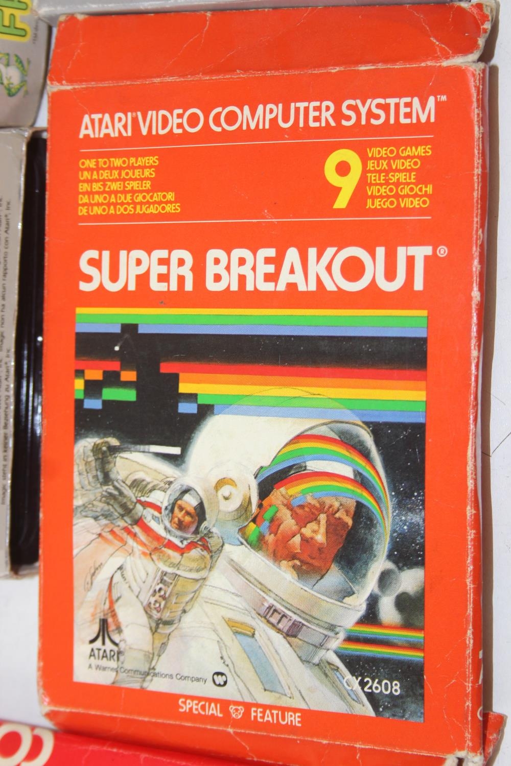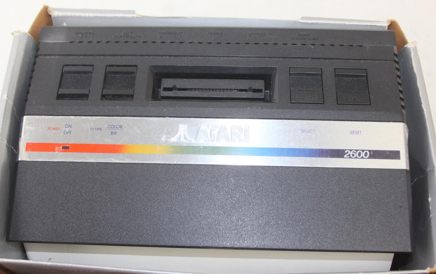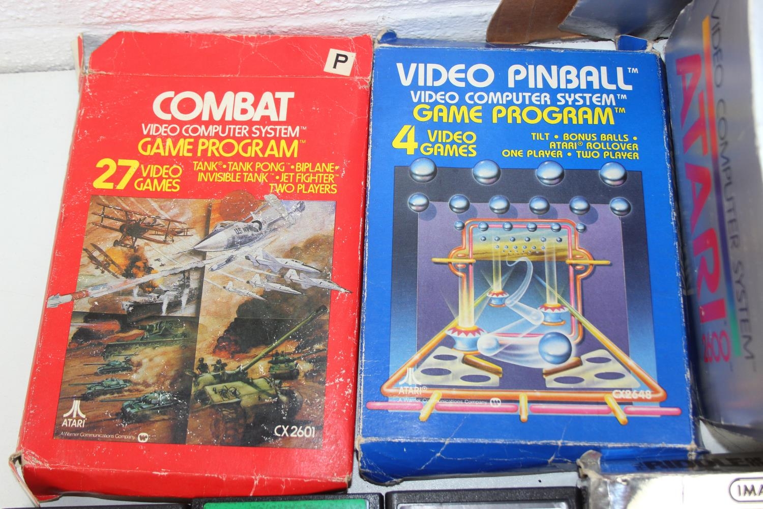 Atari 2600 video game console, boxed with original accessories with 11 boxed games to include Pac Man, Ms Pac Man, Casino 4 in 1, Frogger, Bridge, two copies of Combat 27 in 1, Riddle of the Sphinx, Crystal Castles, Video Pinball and super breakout and three unboxed to include bridge, Space Invaders and 32 in 1 games compendium