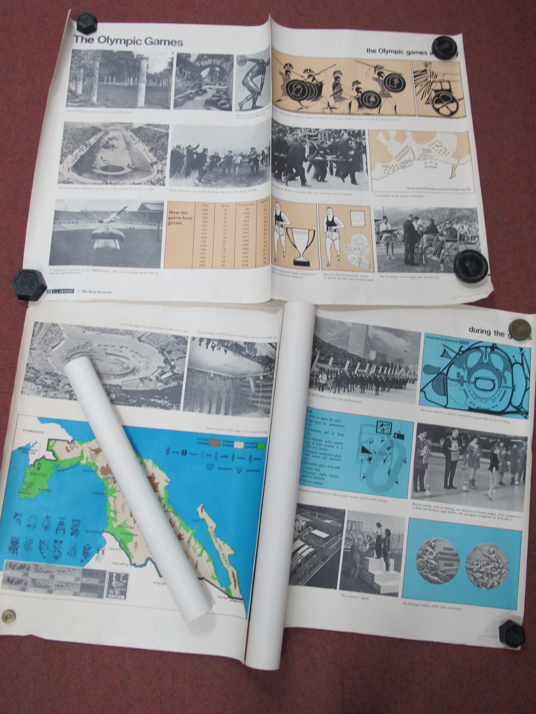 Olympic Games Posters 1968 E. J Arnold & The Daily Telegraph (x 3) plus In The News, and 1976 Montreal Olympics poster for canoeing.