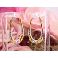 A pair of 9 carat yellow and white gold hoop earrings, of oval form with engraved white gold detailing. Total gross weight approximately 1.1 grams.