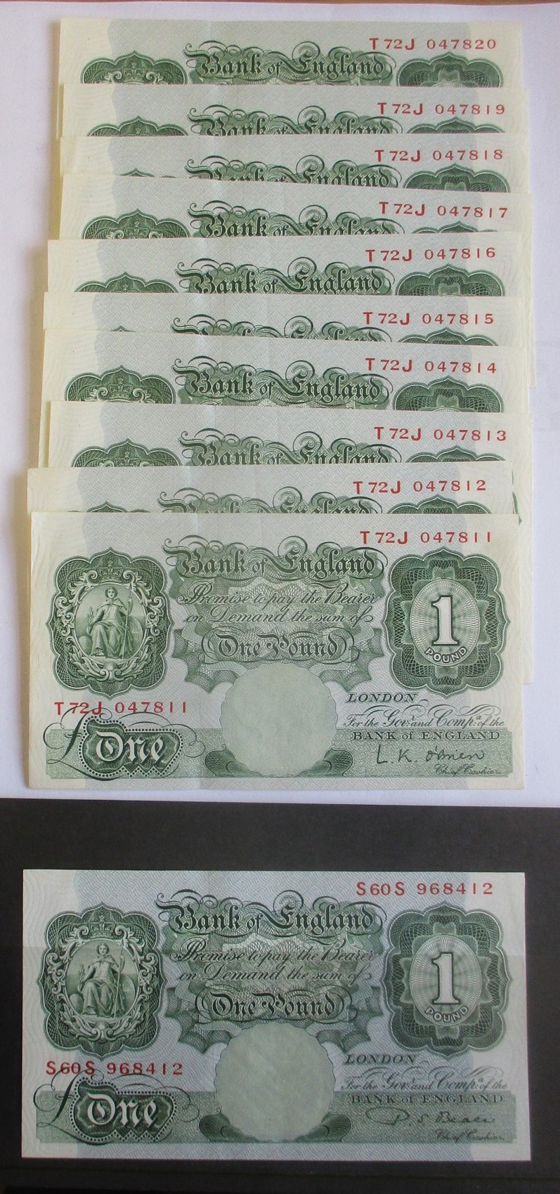 Range of £1 banknotes, generally extremely fine to near uncirculated, with Beale S60S 968412 and O'Brien T72J 047811 to ...820. Qty 11 (R)